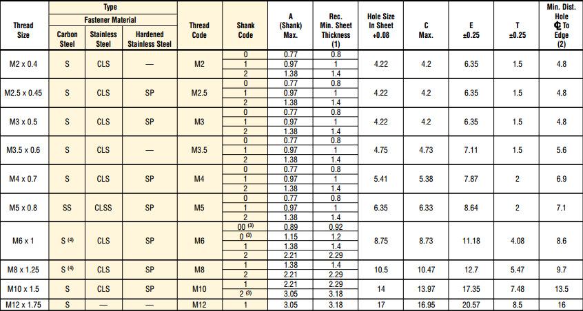 Tuercas remachables (Z, ZS, NZ, NZS),