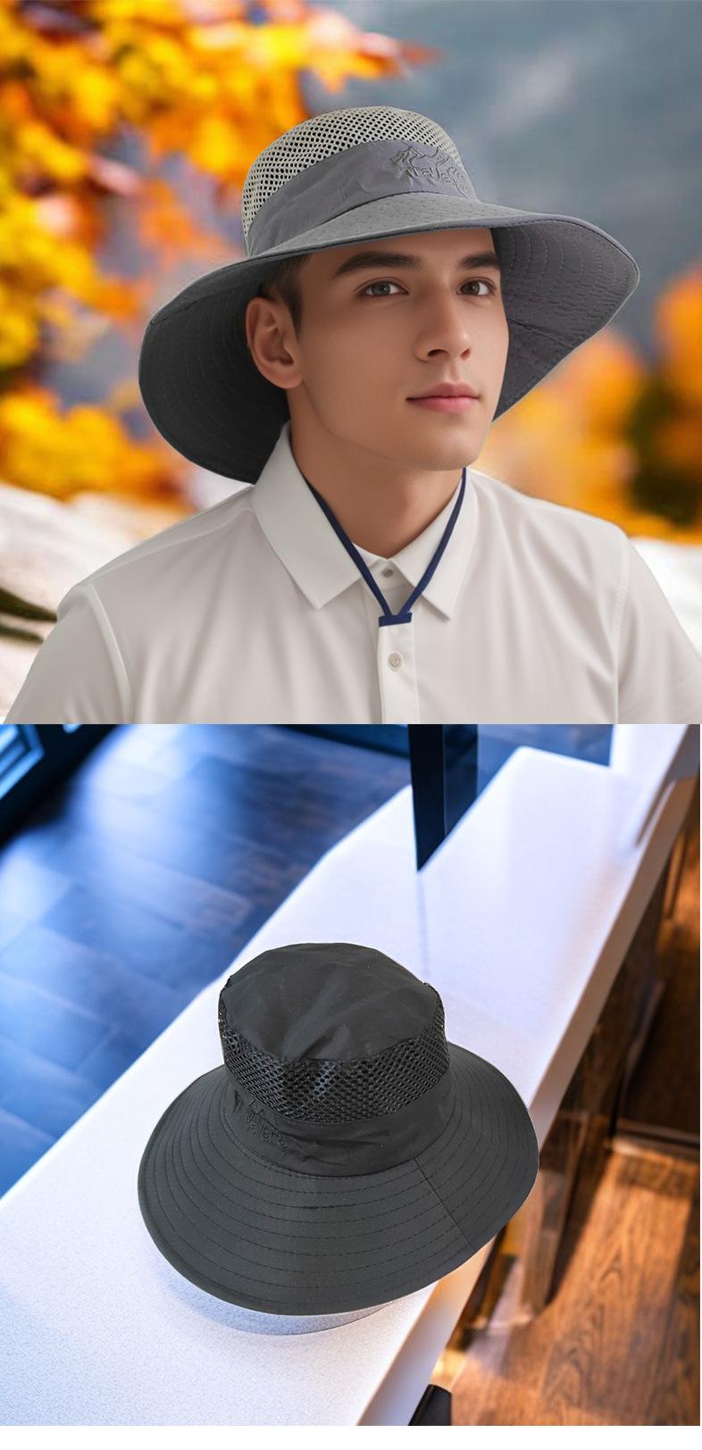 Sombrero de pescador, sombrero de sol para primavera y verano para hombre, sombrero de sol negro, sombrero de sol de ala ancha para montar a caballo para hombre