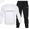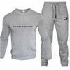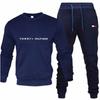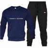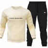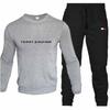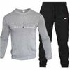 Traje de ropa nueva para hombre transfronterizo forrado de vellón cuello redondo manga larga + pantalón traje cuello redondo casual deportivo en stock