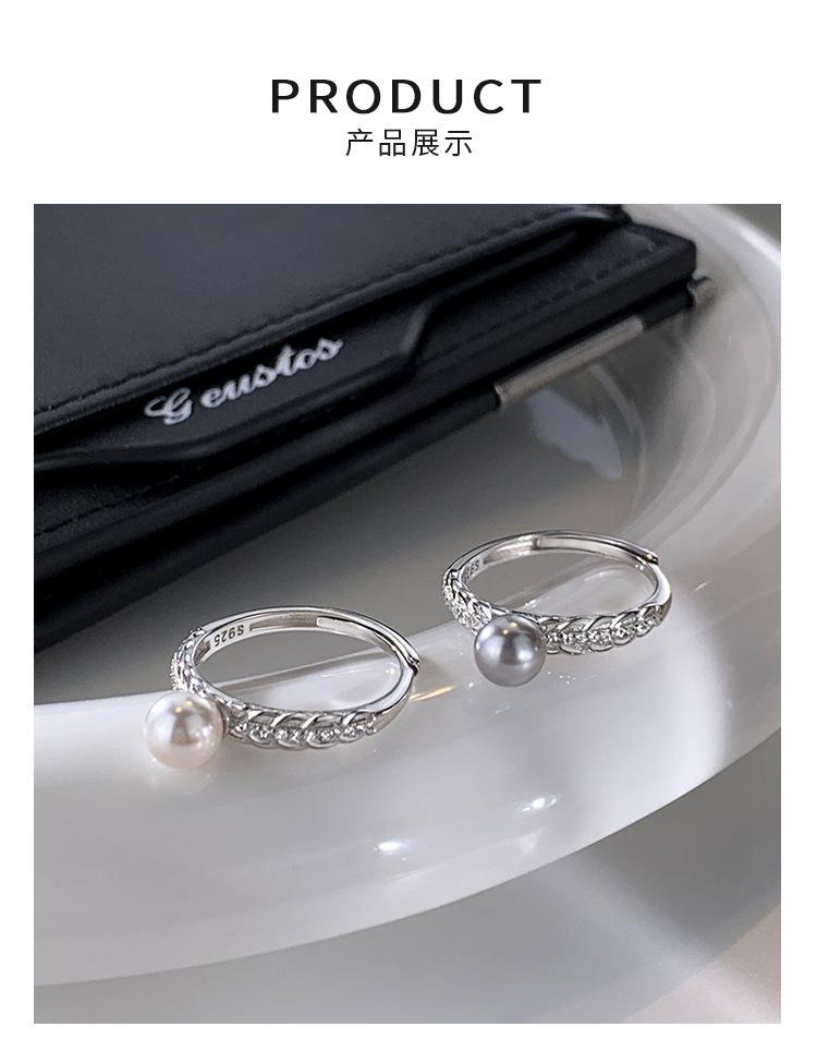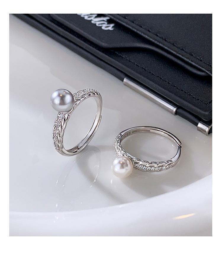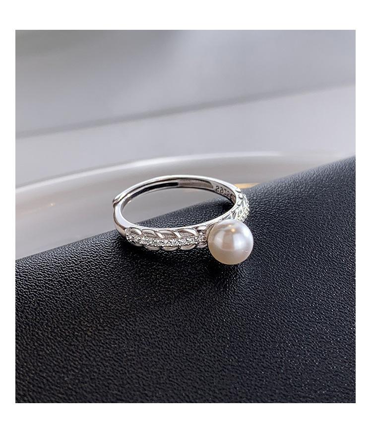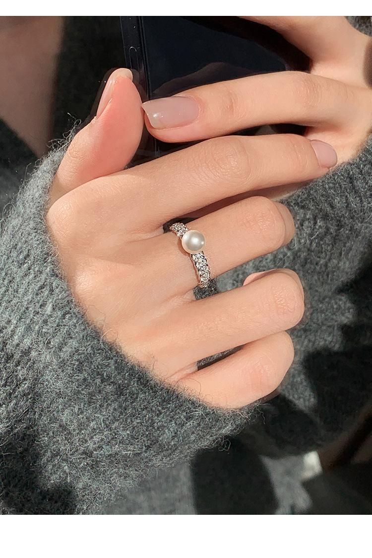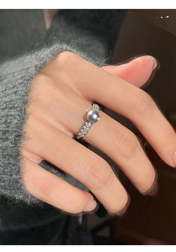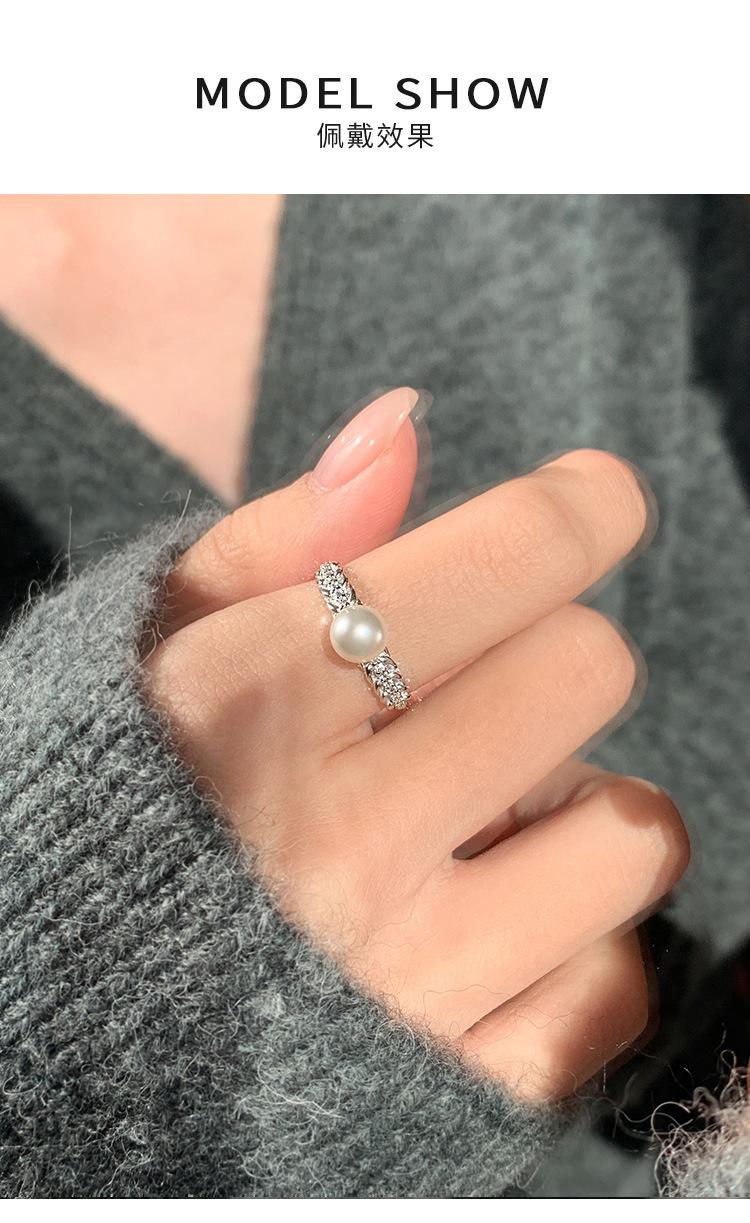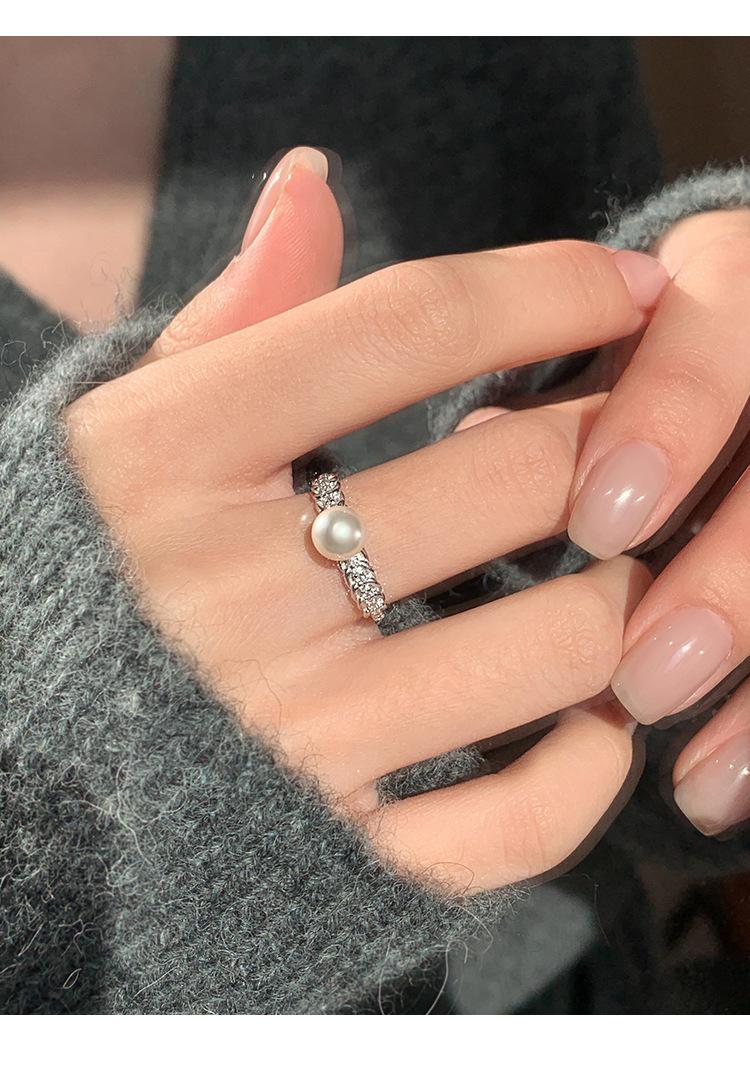 Anillo de perla para mujer, diseño de nicho, joyería ligera de lujo con diamantes, moderno, combinable, personalizado, anillo abierto para mujer.