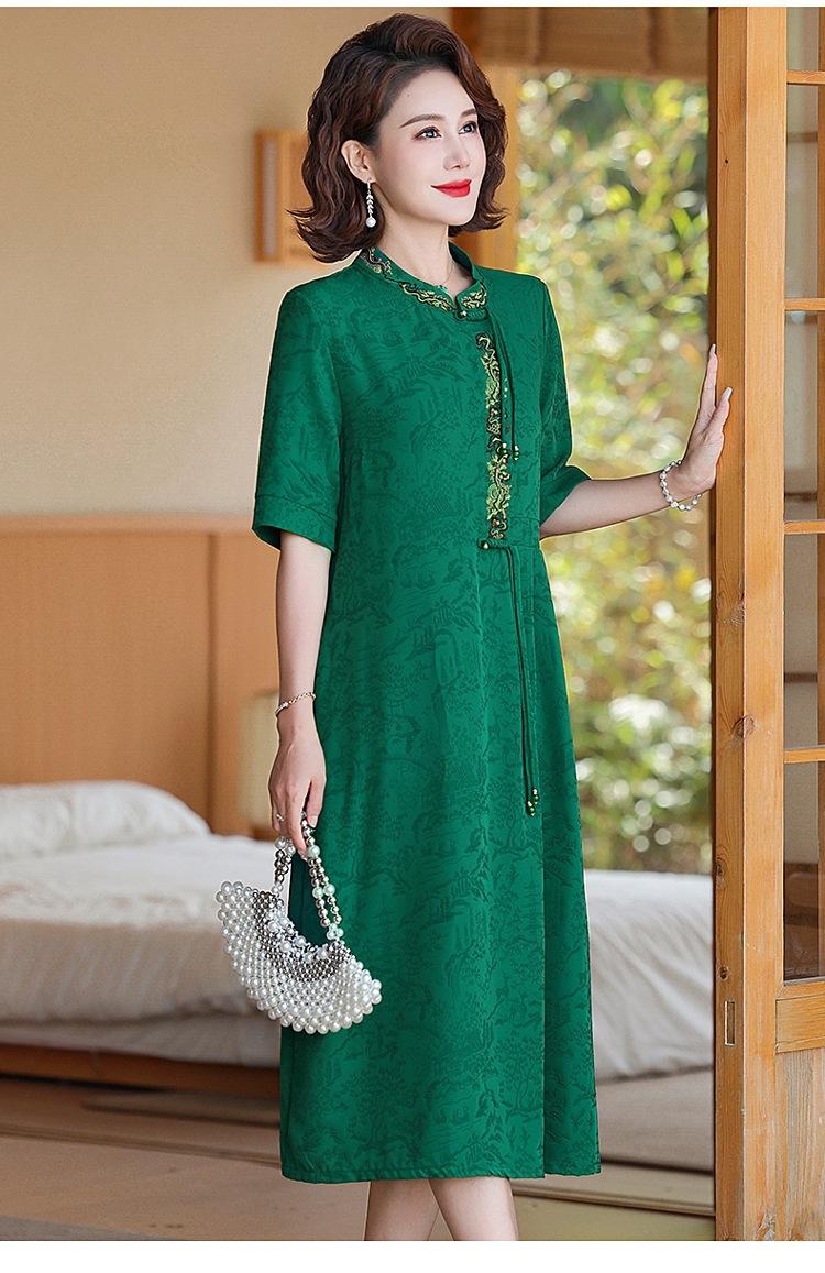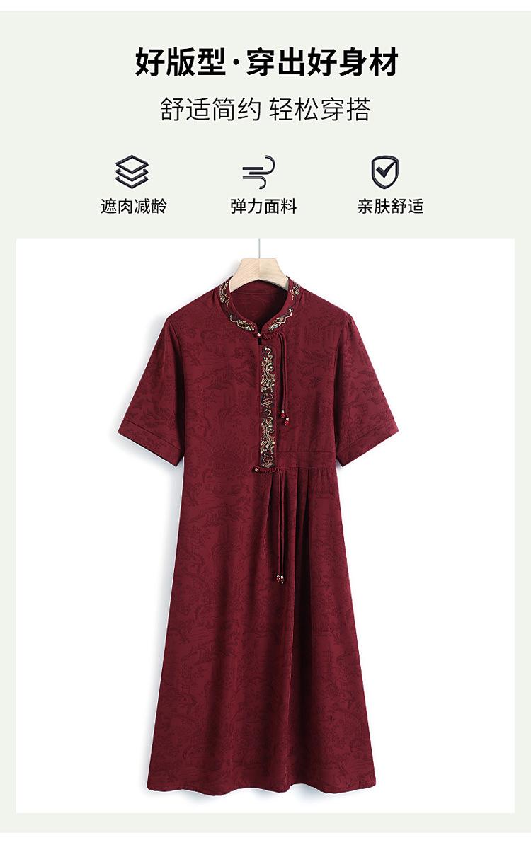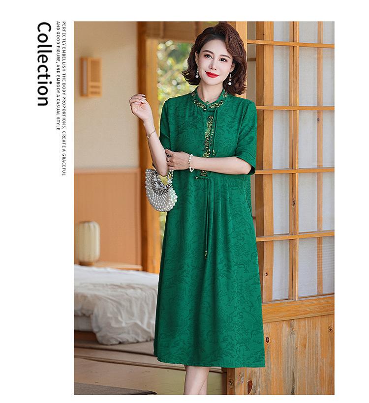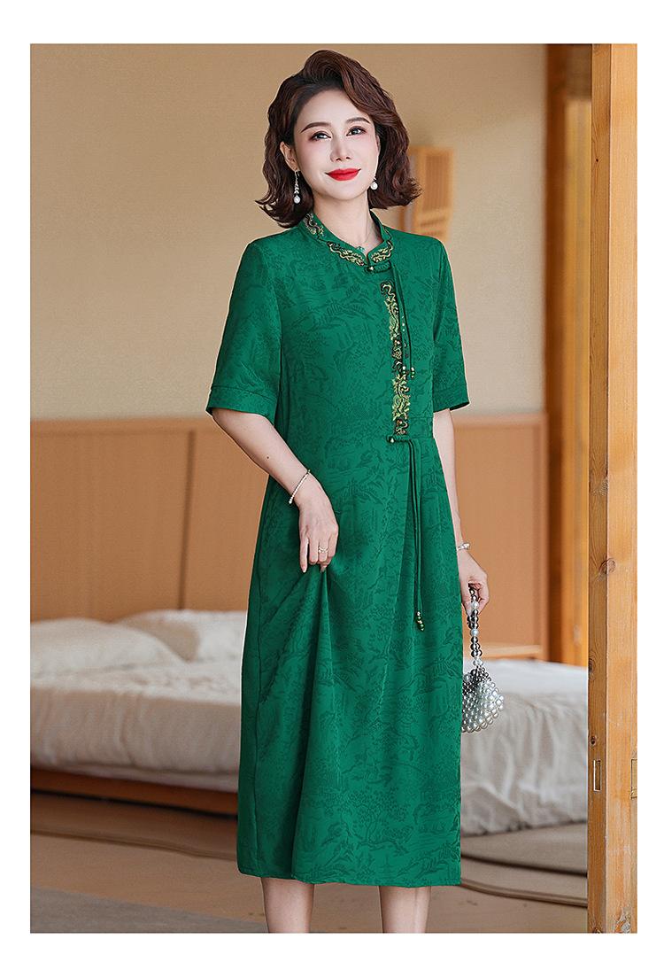 Vestido Popular Estilo Chino Mujer 2025 Nuevo Verano para Mediana Edad y Ancianas Mamá Xiangyunsha Cheongsam Falda Mejorada