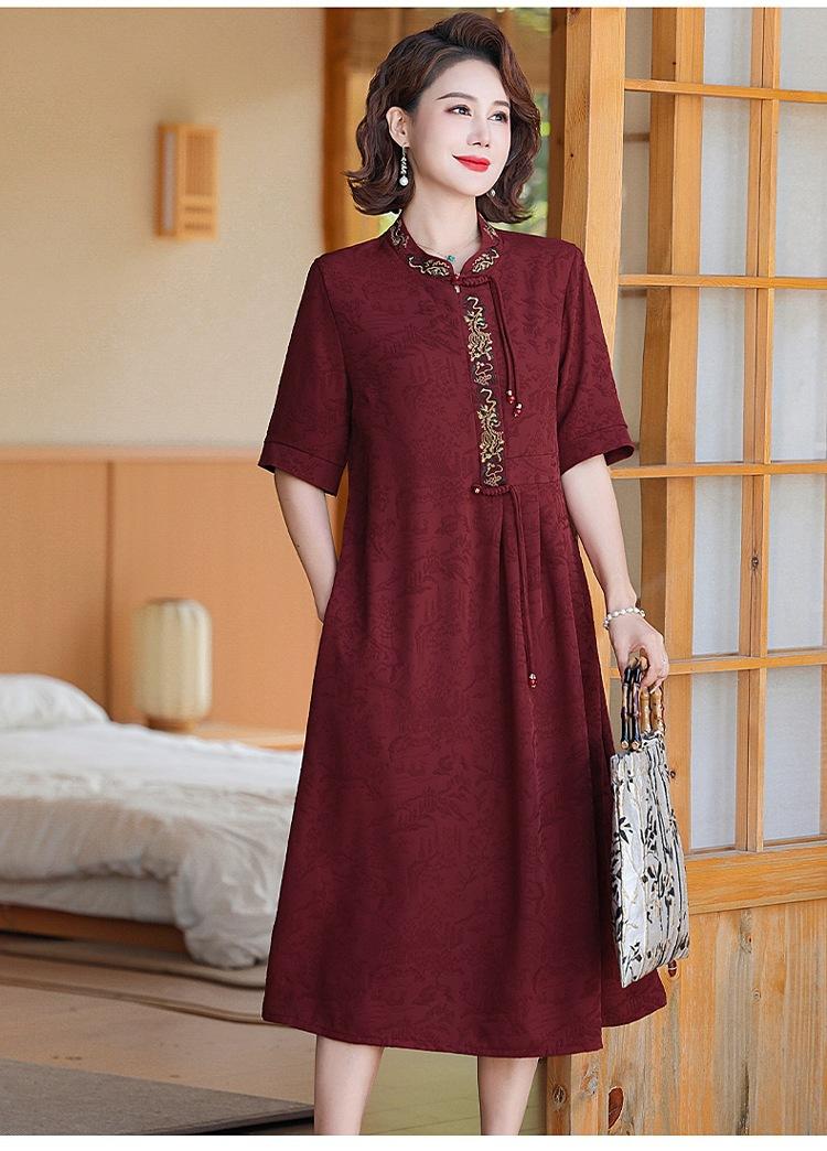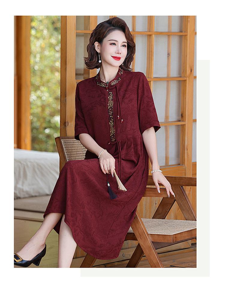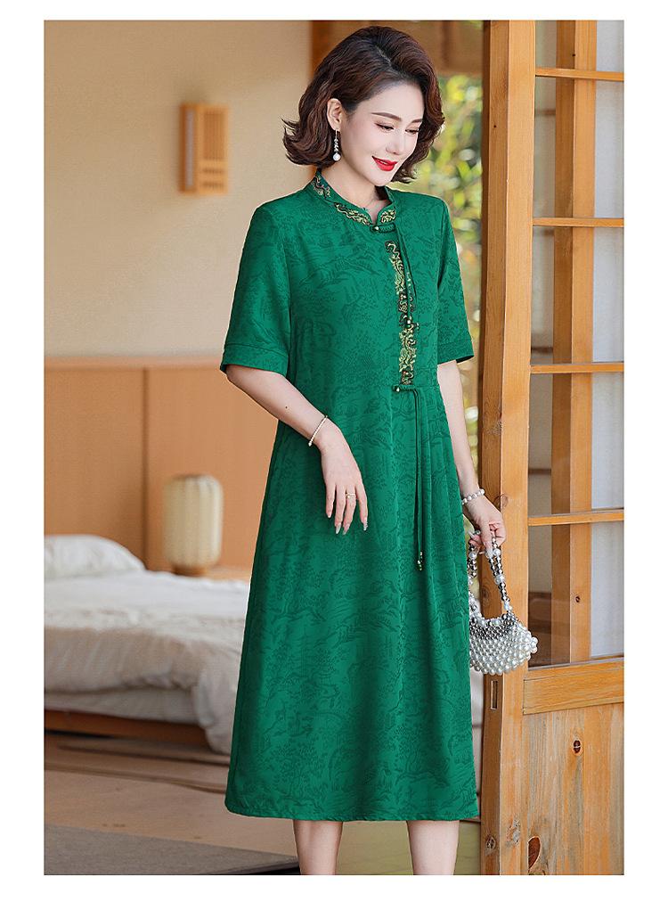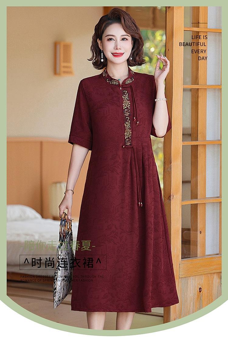 Vestido Popular Estilo Chino Mujer 2025 Nuevo Verano para Mediana Edad y Ancianas Mamá Xiangyunsha Cheongsam Falda Mejorada