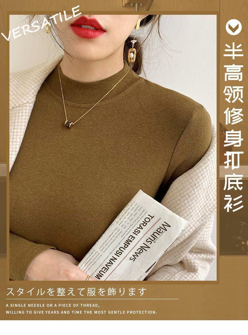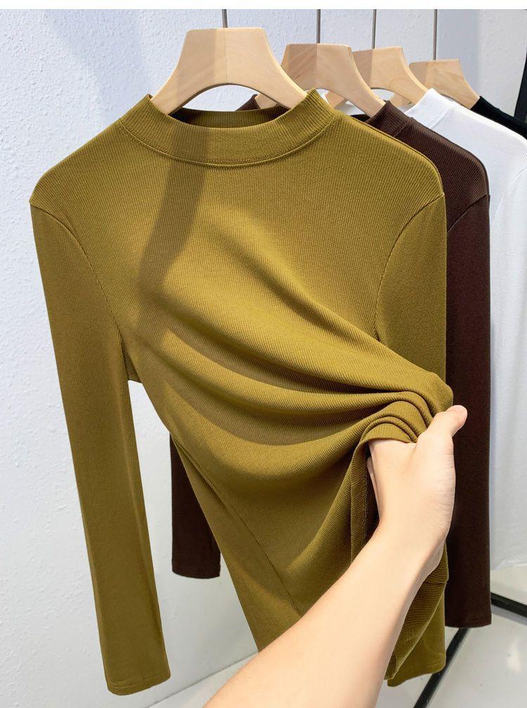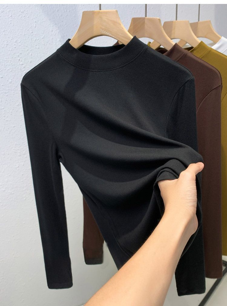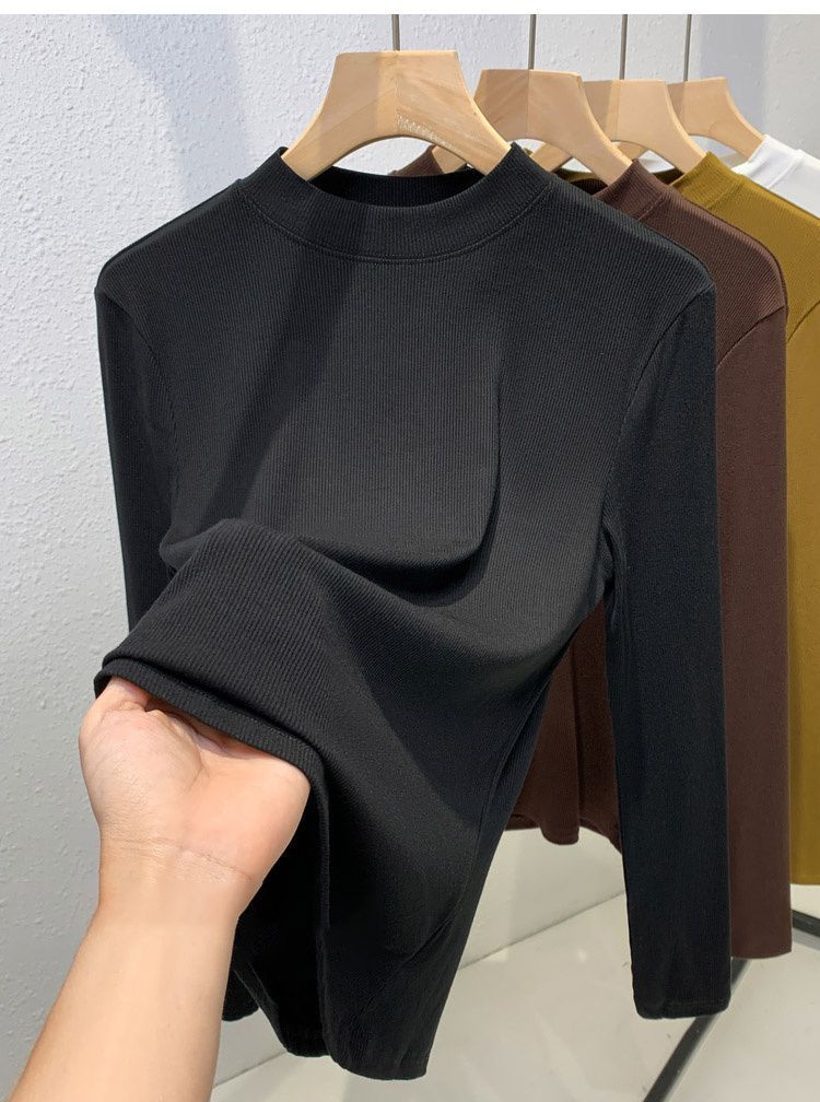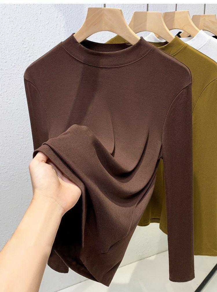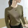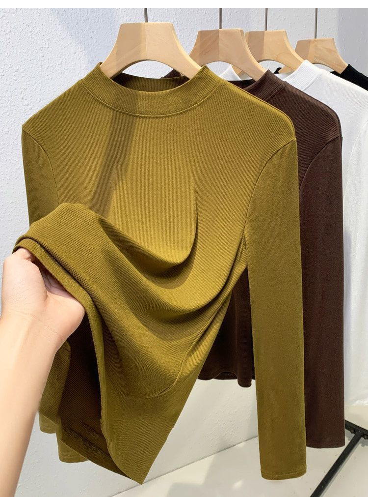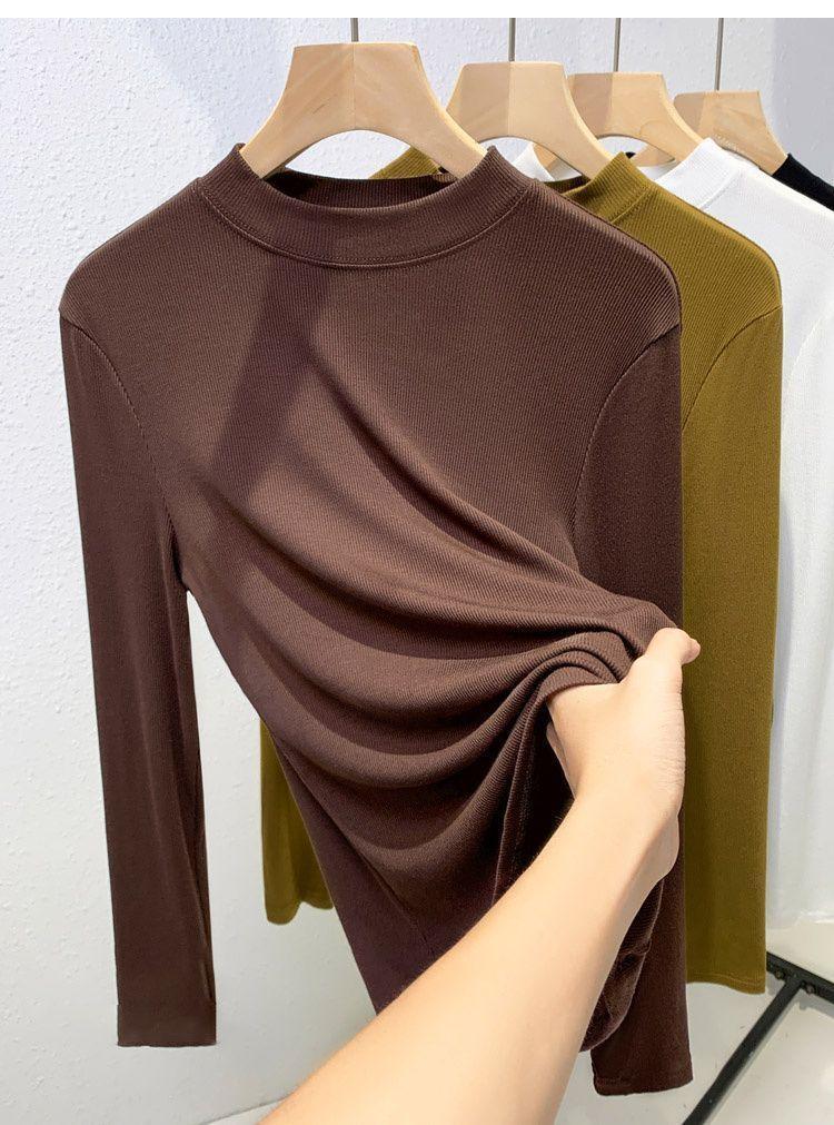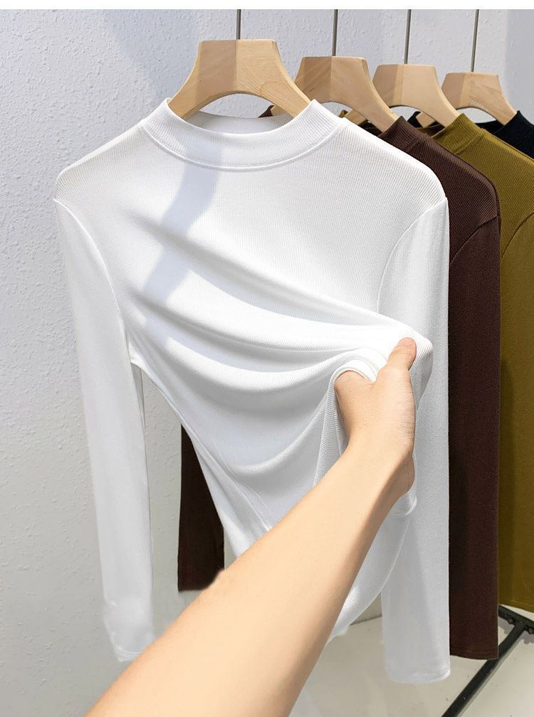 Camiseta de manga larga adelgazante de corte entallado para mujer, camisa blanca con cuello vertical de terciopelo de estilo extranjero de moda para otoño e invierno