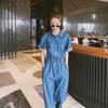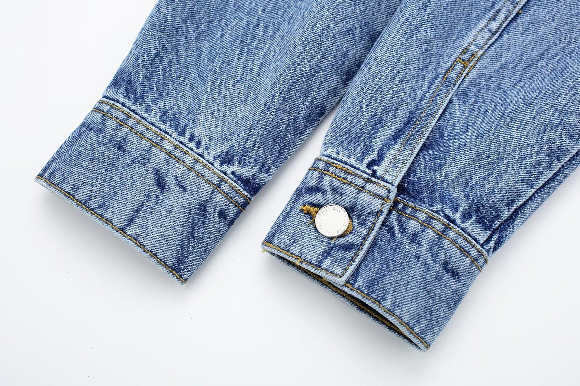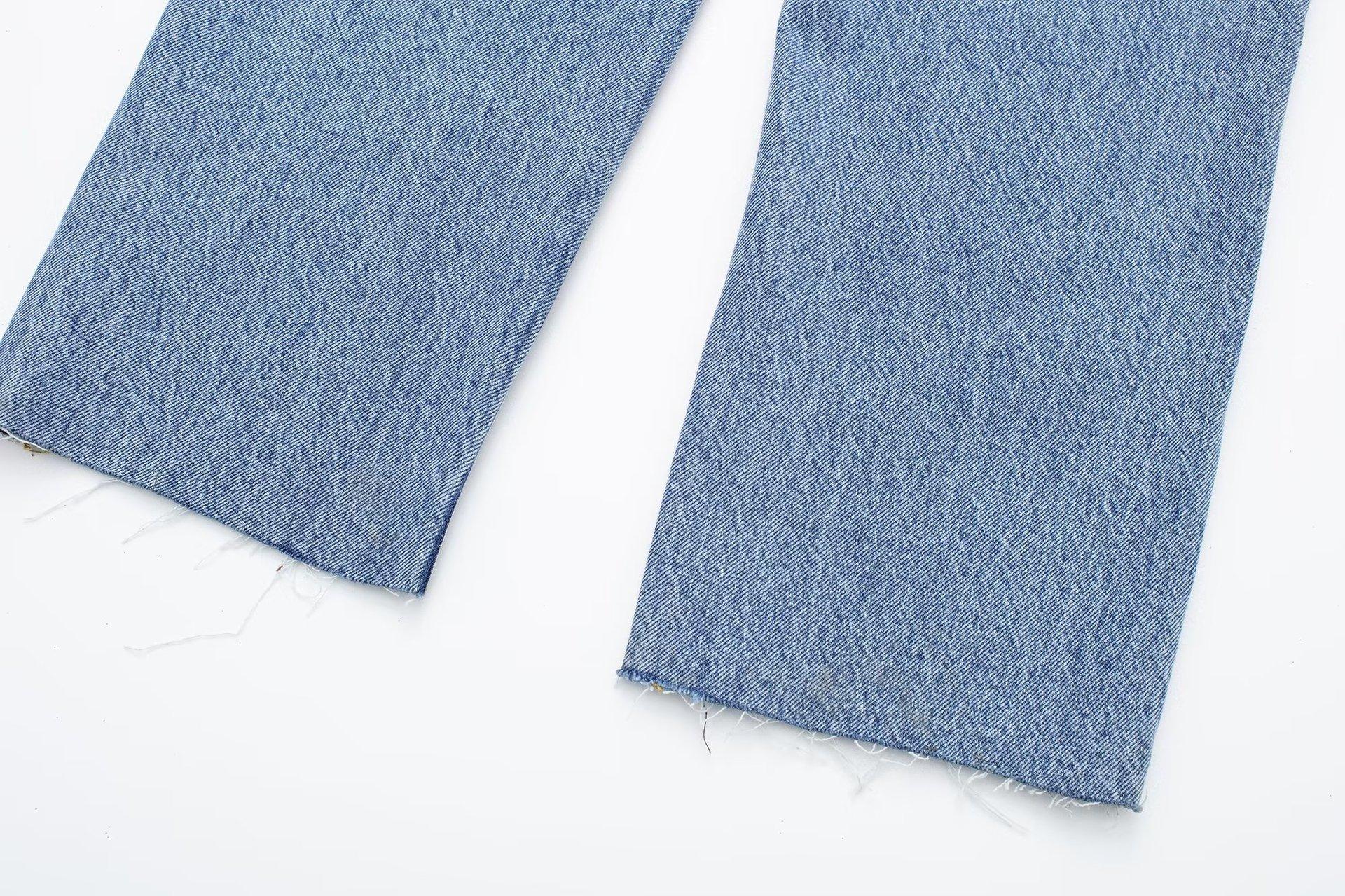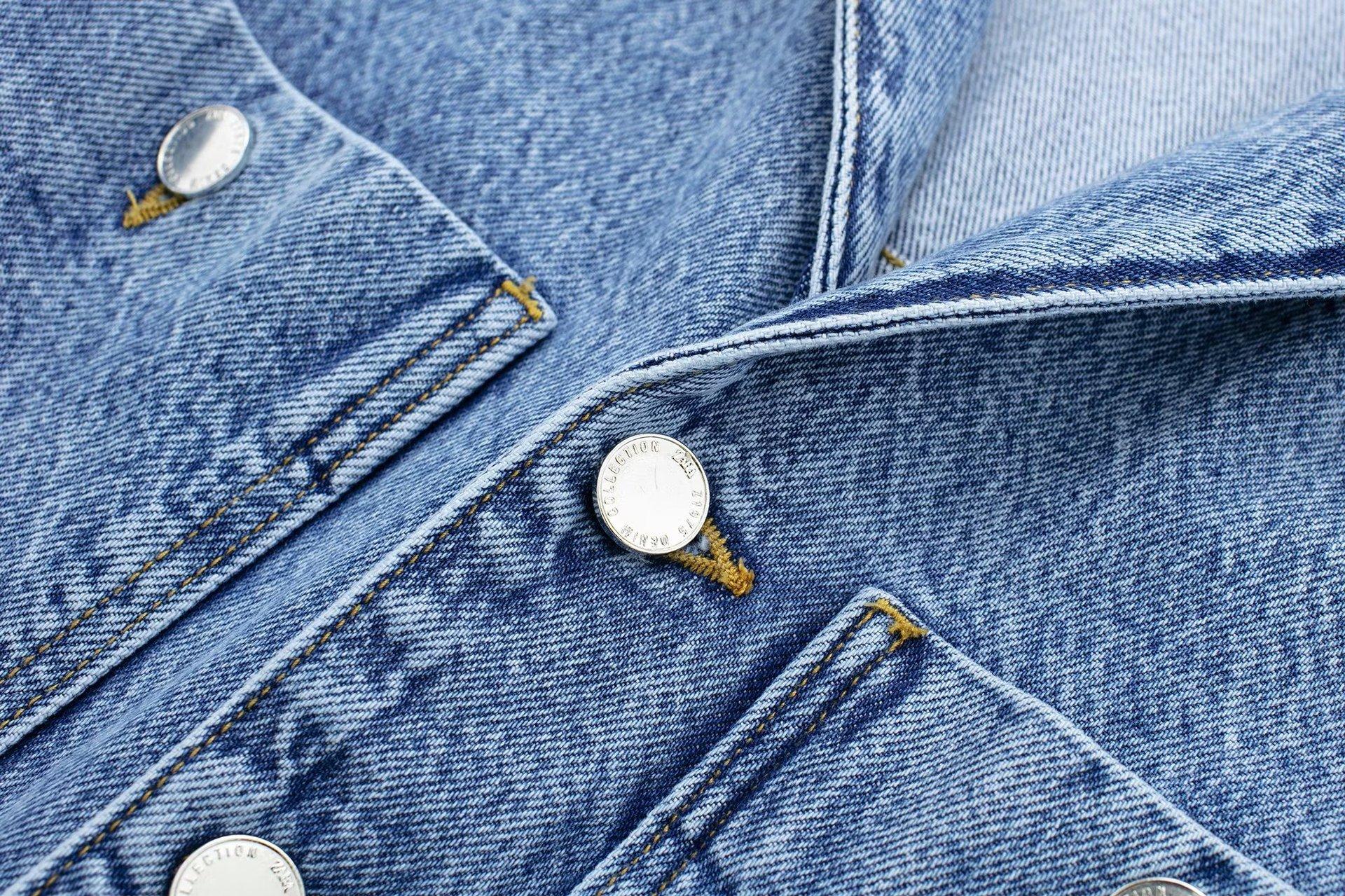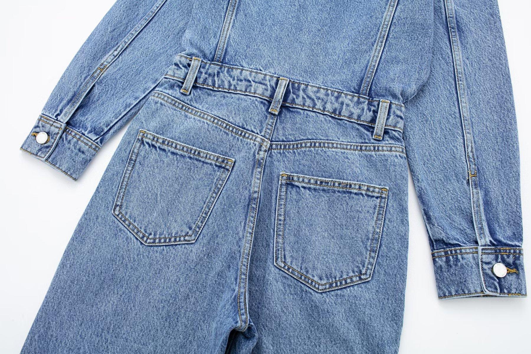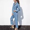 Ropa Europea y Americana de Primavera y Otoño Traje Europeo y Americano Cuello de Solapa Bolsa Decorativa Cintura Pantalones Vaqueros Rectos