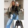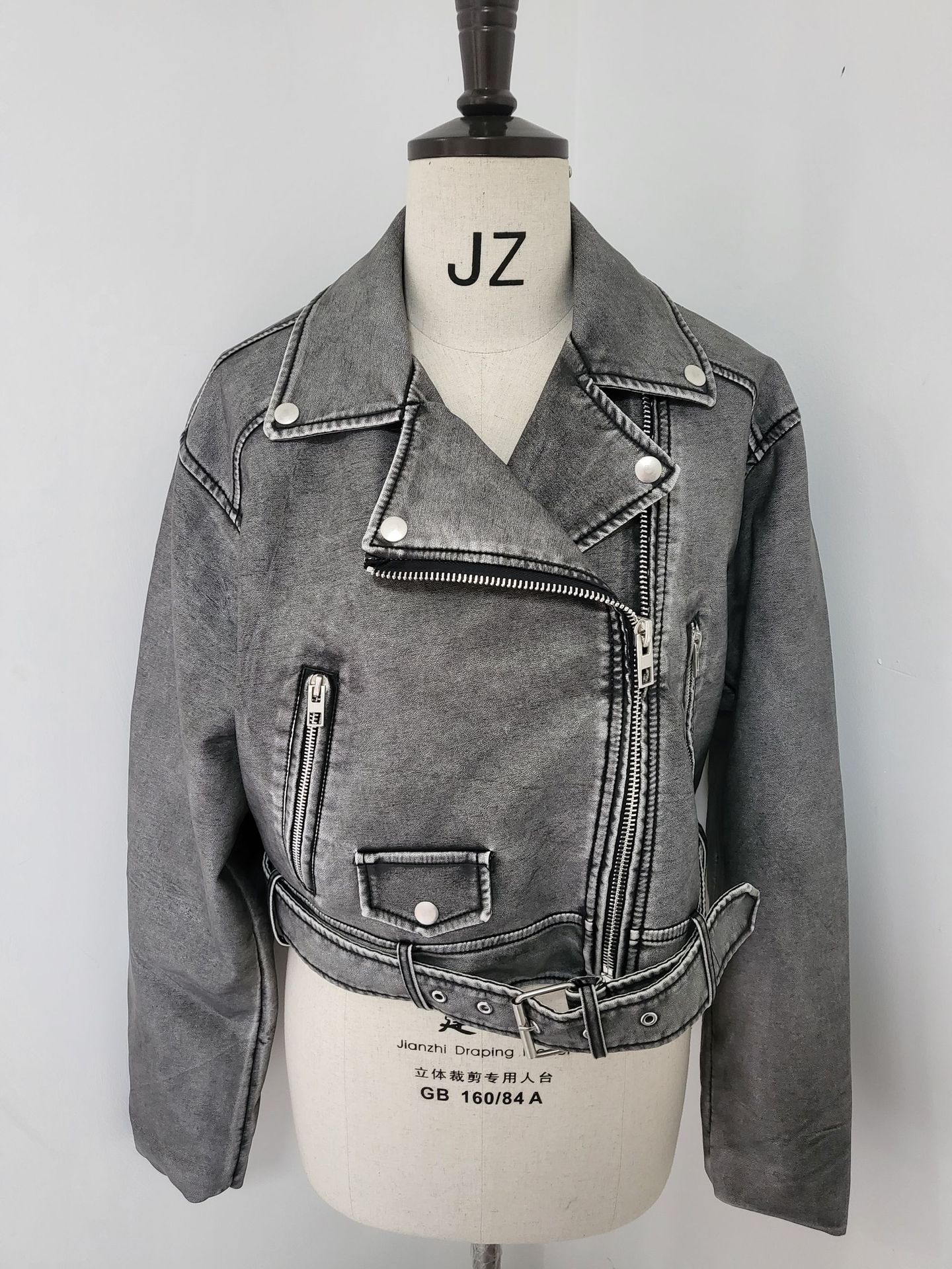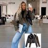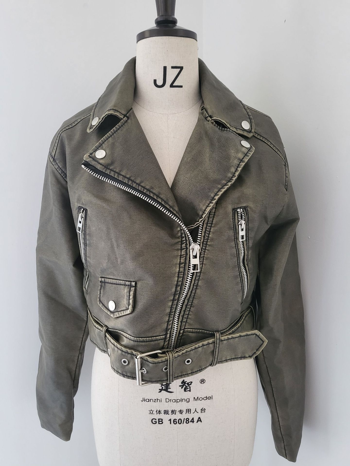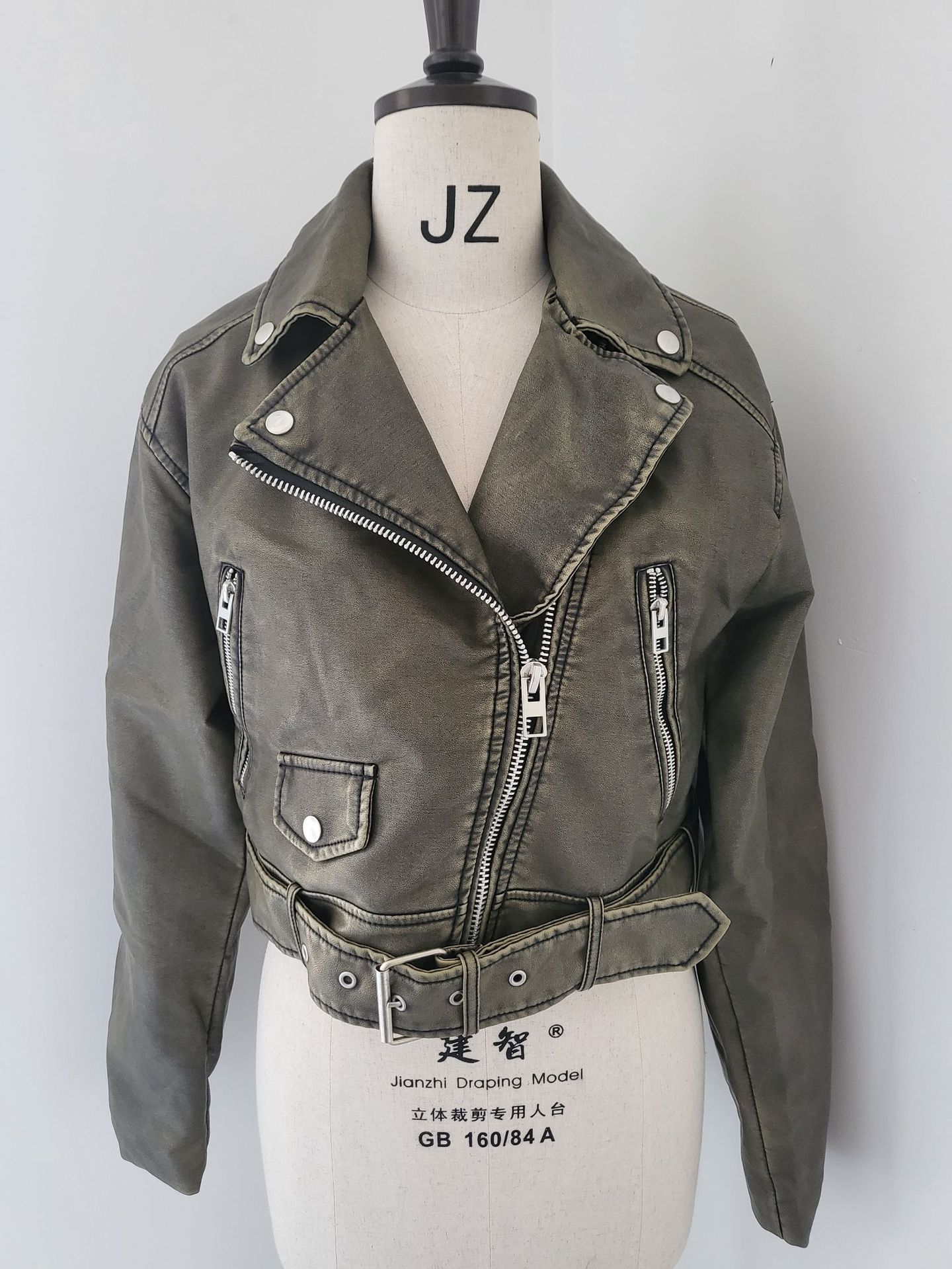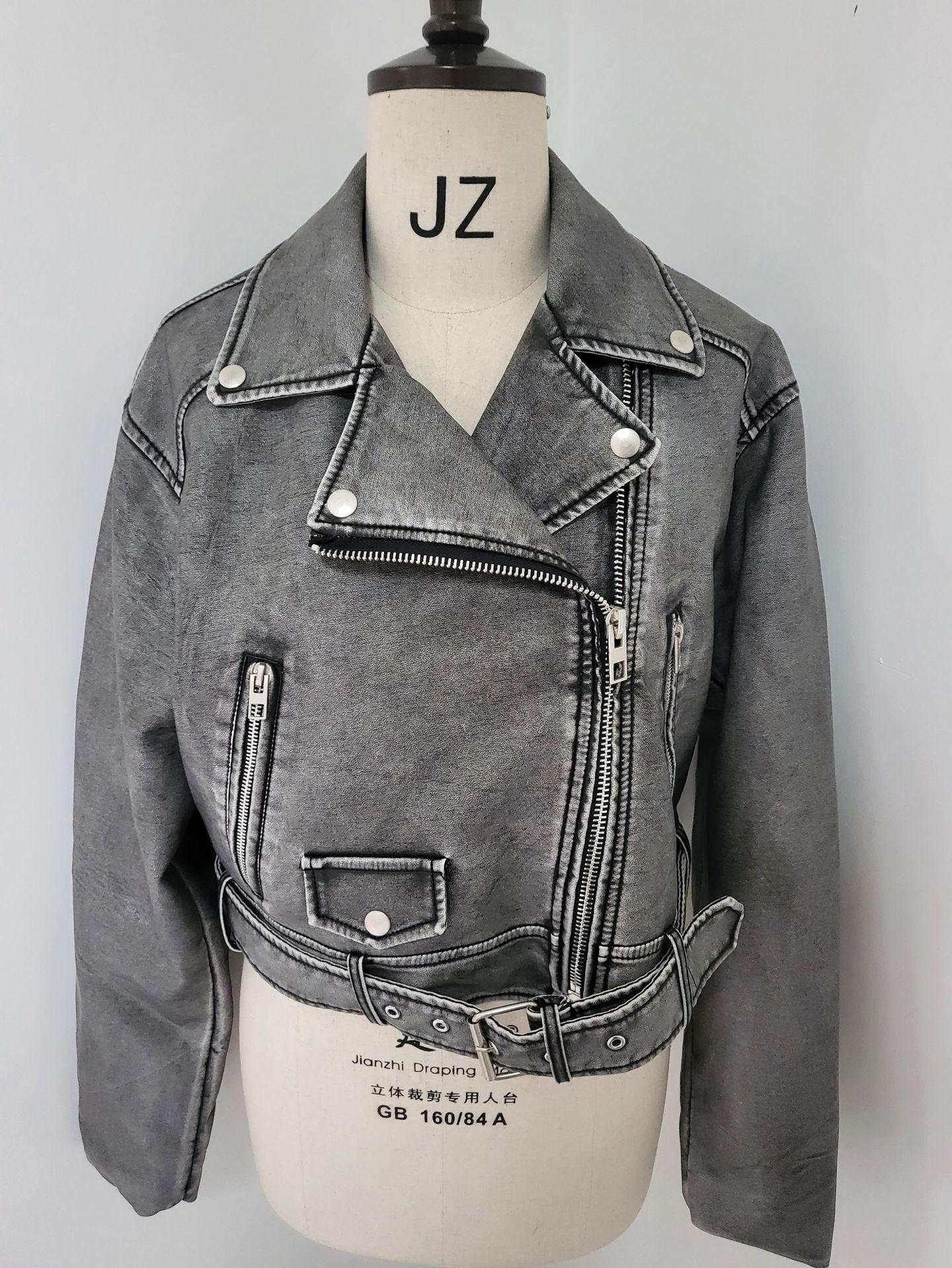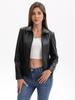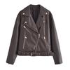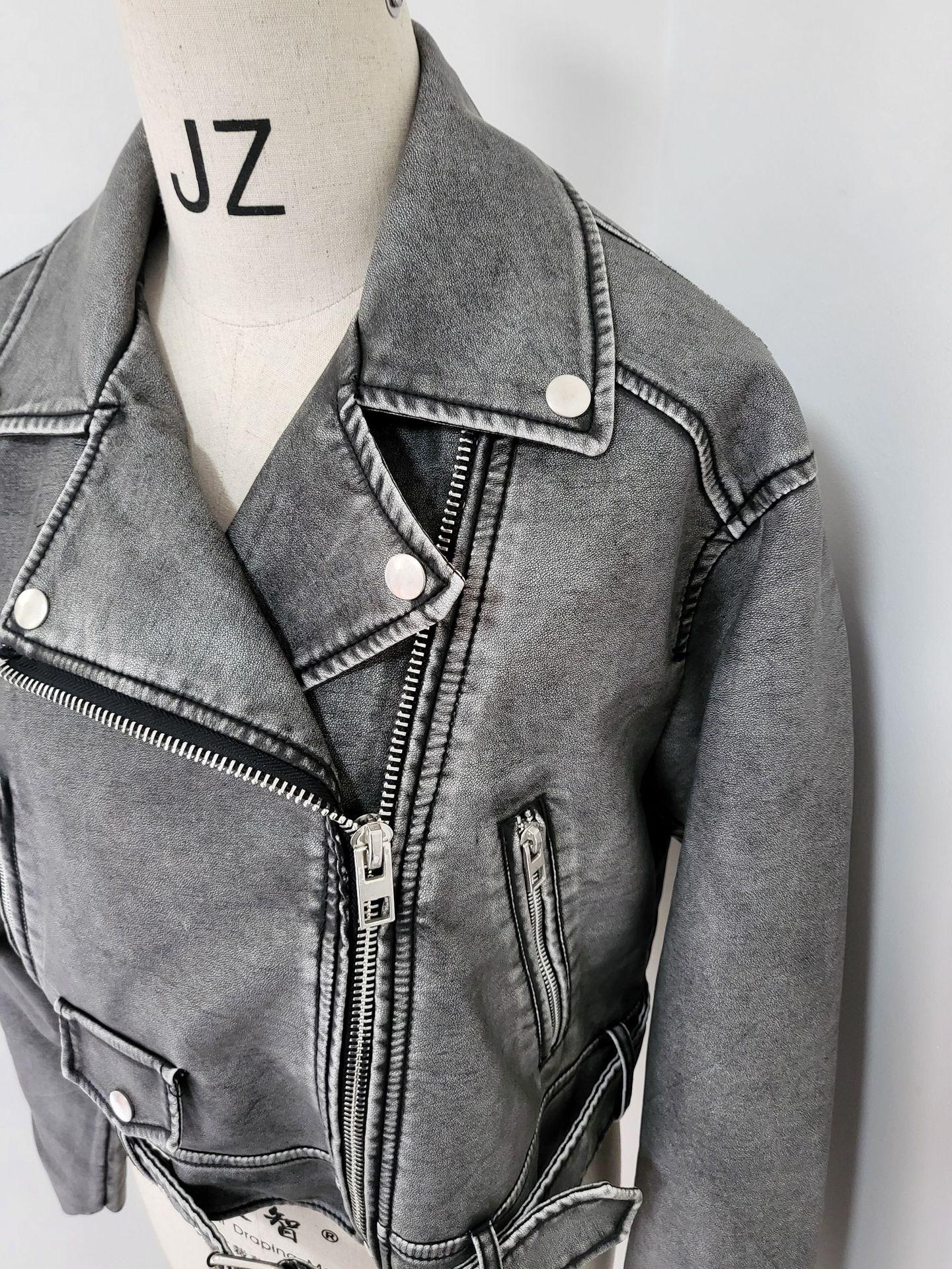 Comercio Exterior Transfronterizo Europeo y Americano Primavera y Otoño Ropa Europea y Americana Cuero Lavado Envejecido Motocicleta Casual Color Sólido Chaqueta Chaqueta de Cuero para Mujer