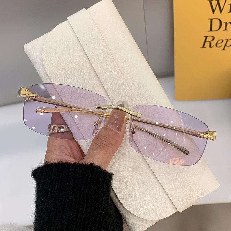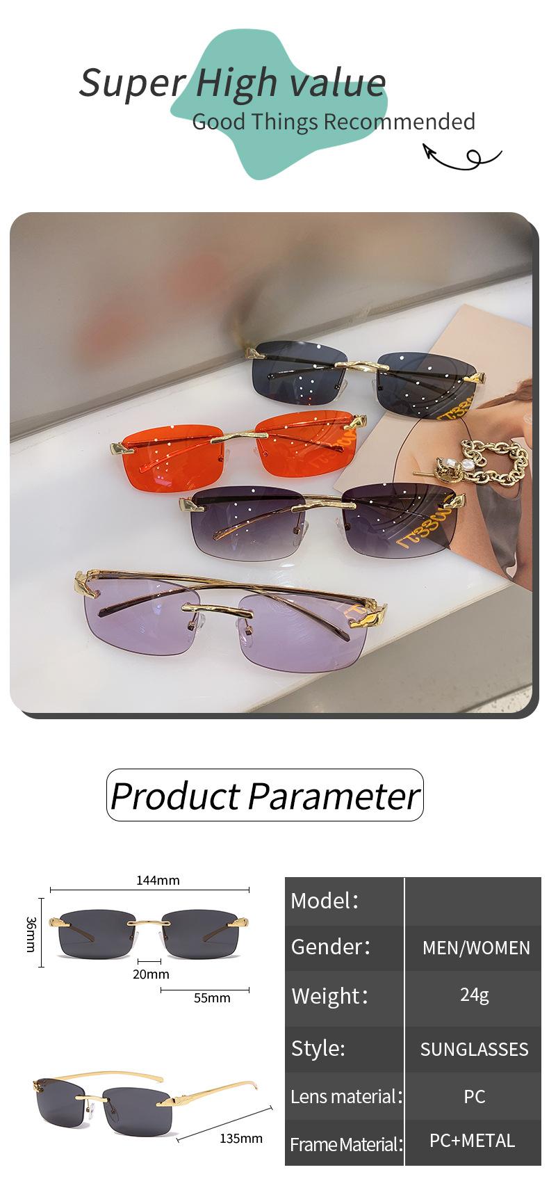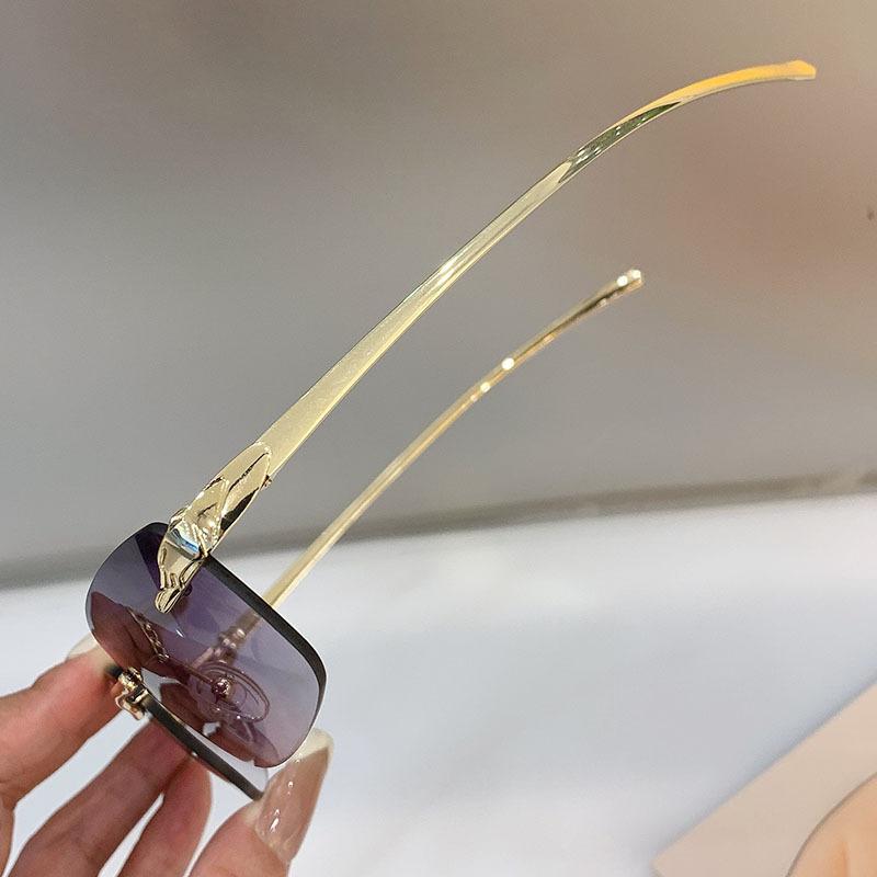 Retro Amazon transfronterizo nuevo gafas de sol cabeza de leopardo sin montura moda alto sentido gafas de sol mujer venta al por mayor