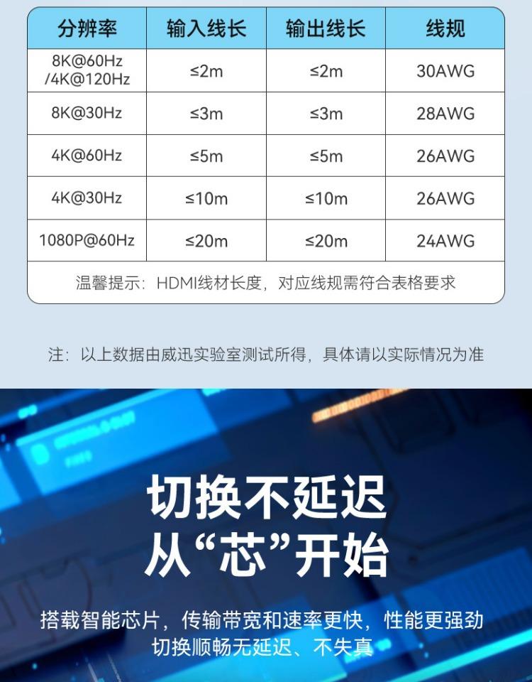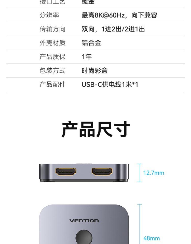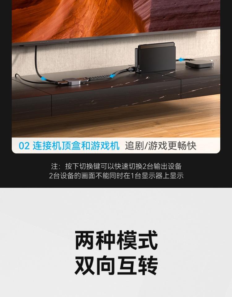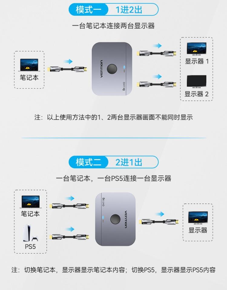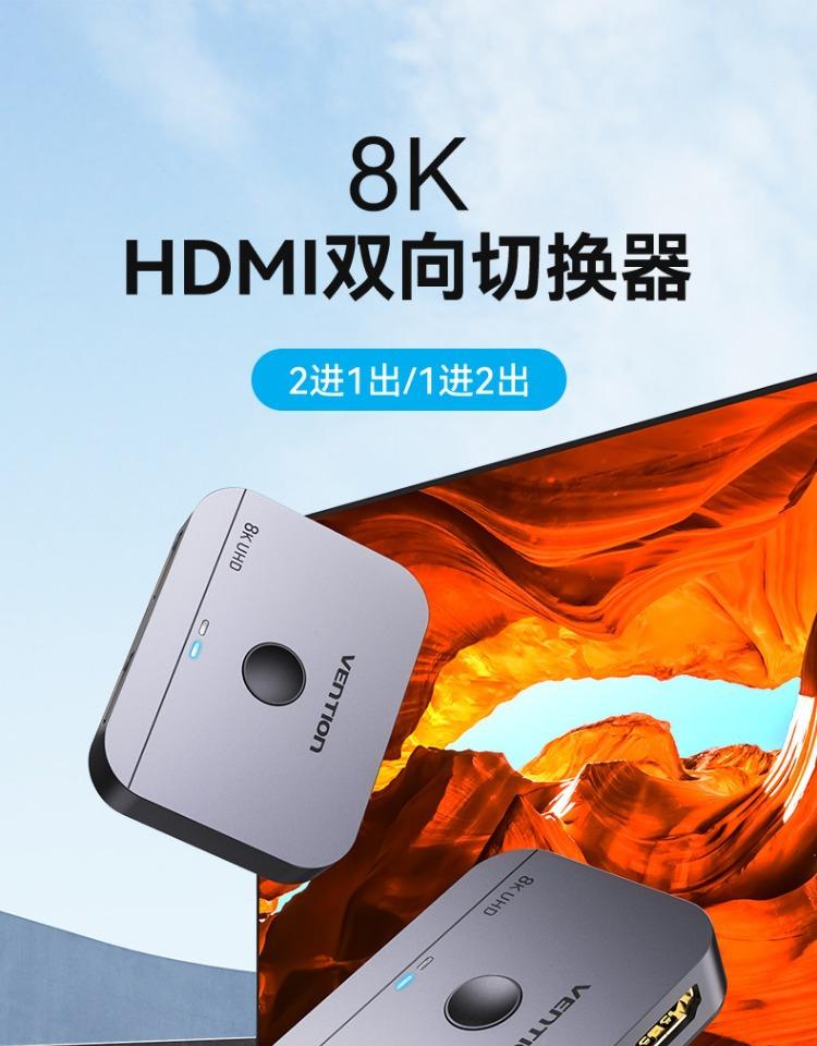 Distribuidor HDMI Weixun 8K, divisor de audio y video de computadora HD de un minuto y dos vías, conversión de uno a dos, pantalla dividida