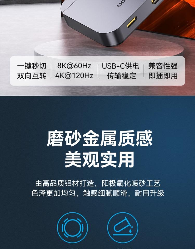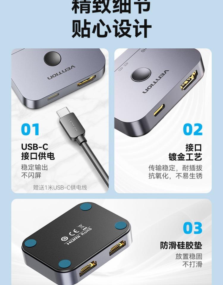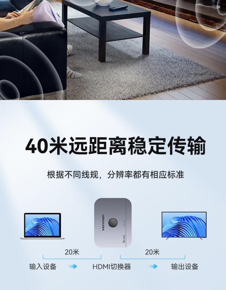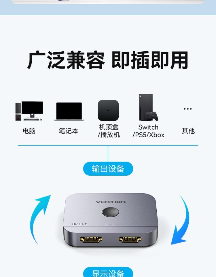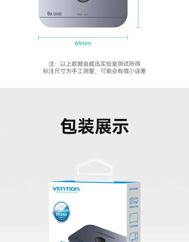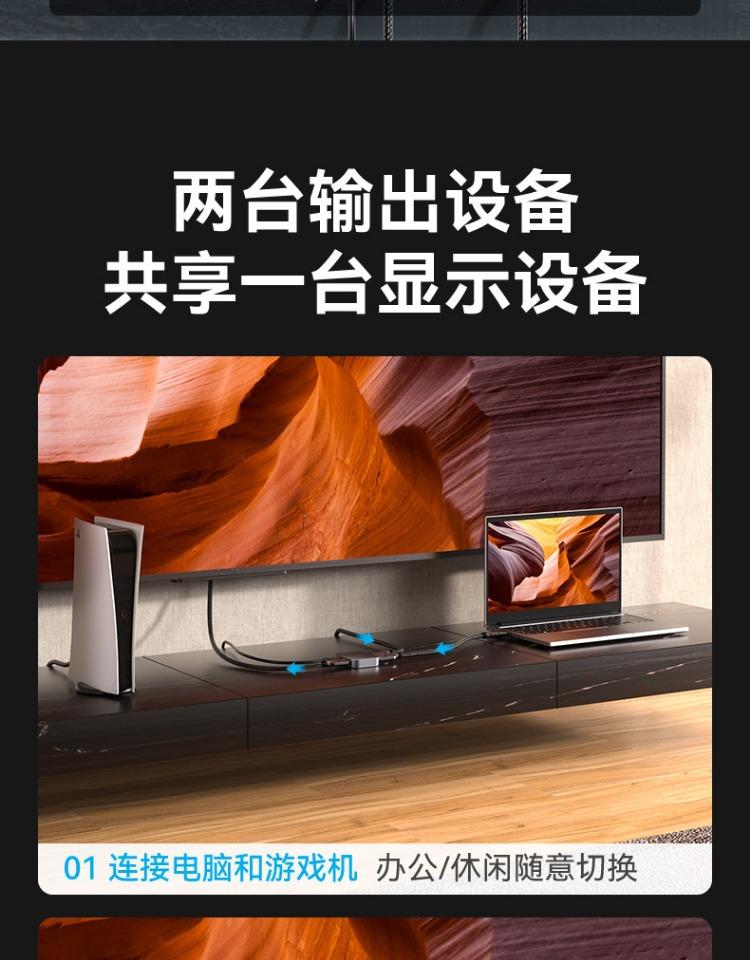 Distribuidor HDMI Weixun 8K, divisor de audio y video de computadora HD de un minuto y dos vías, conversión de uno a dos, pantalla dividida