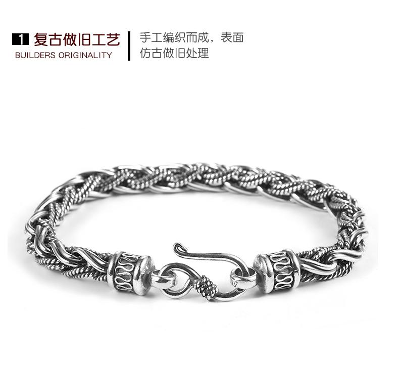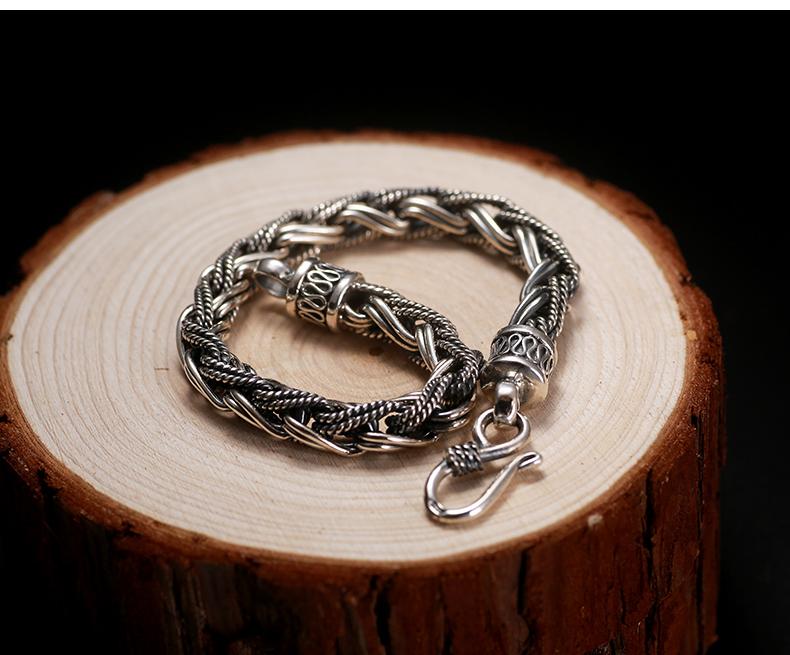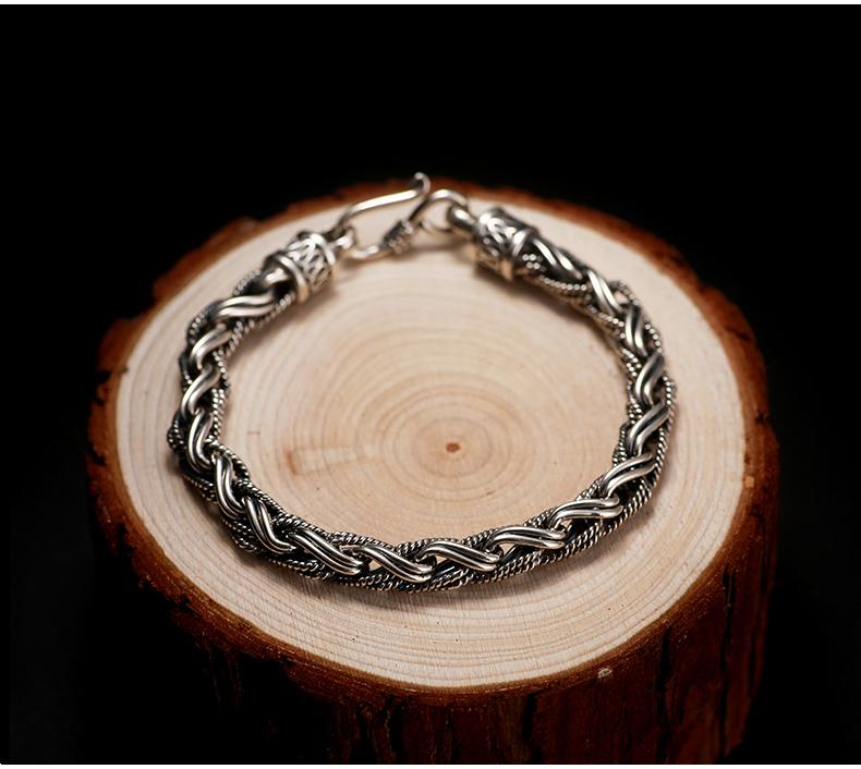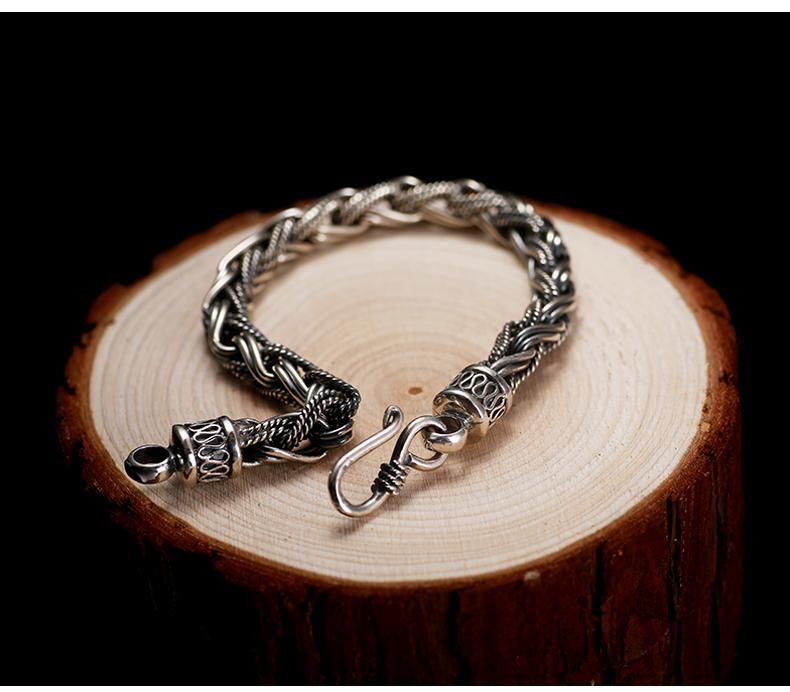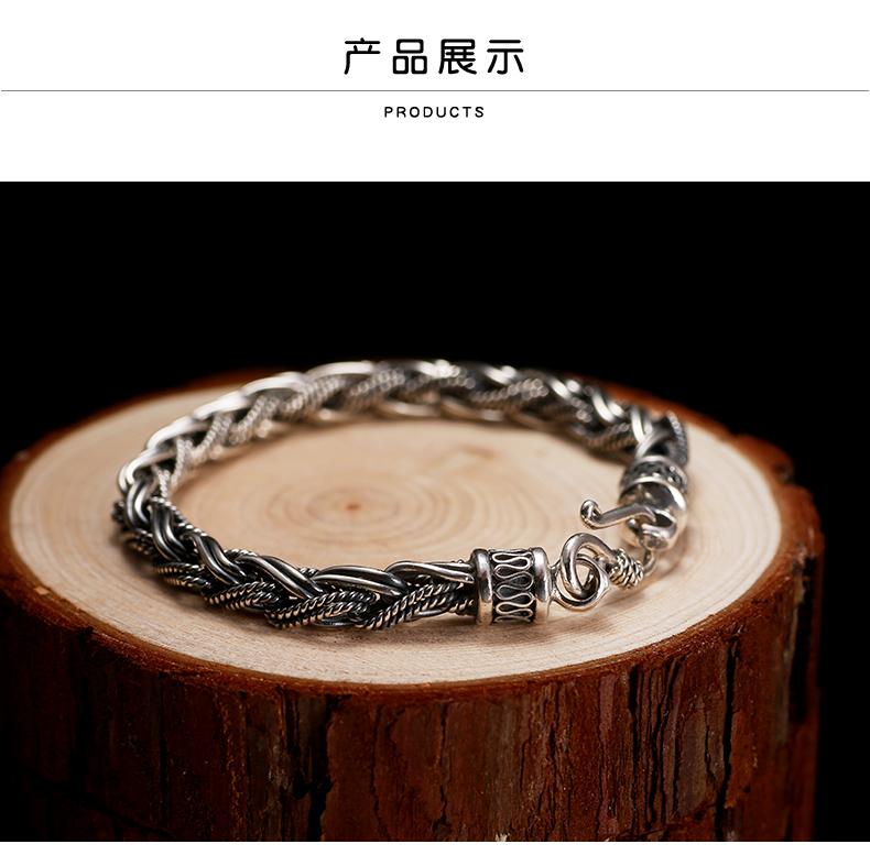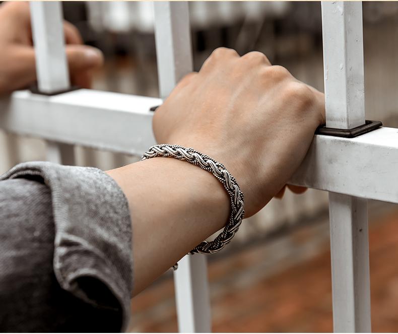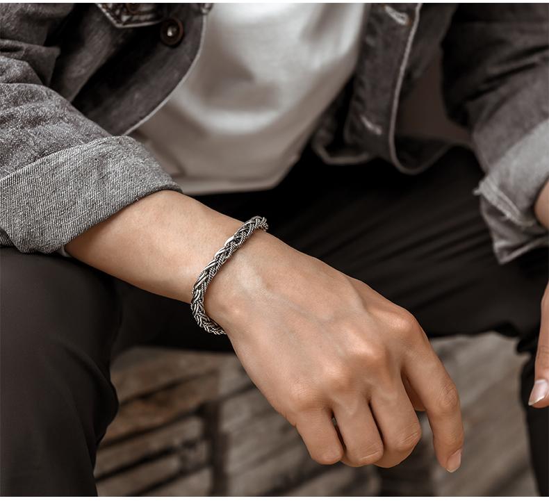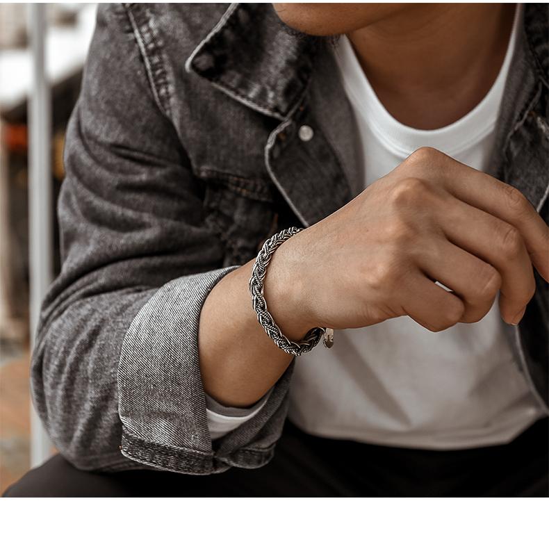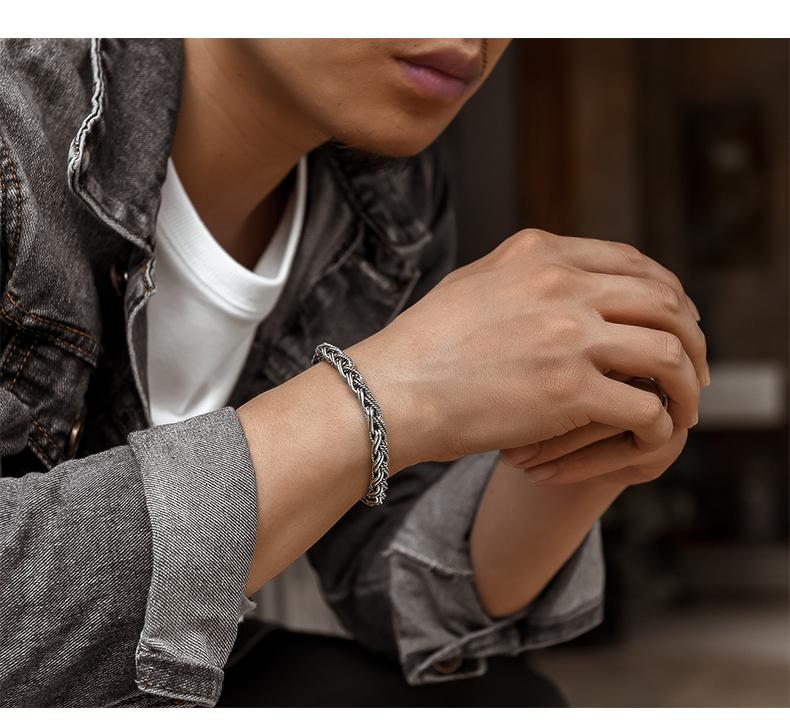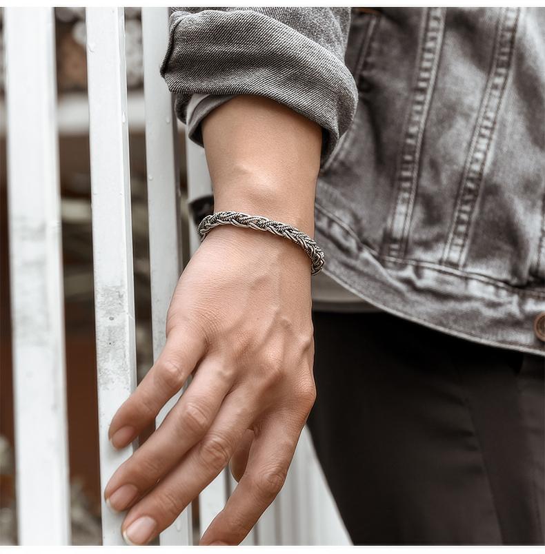 Pulsera tejida a mano de moda para hombre, moderna, vintage, plateada, creativa, punk, con personalidad, joyería nueva exquisita