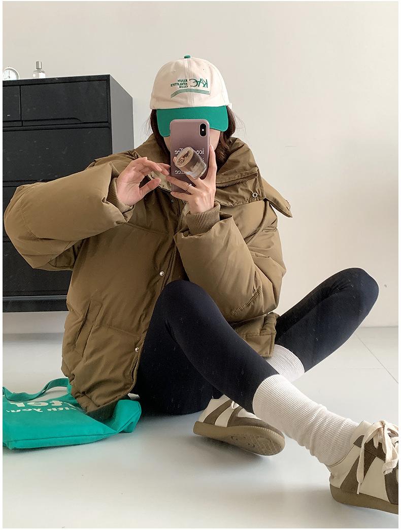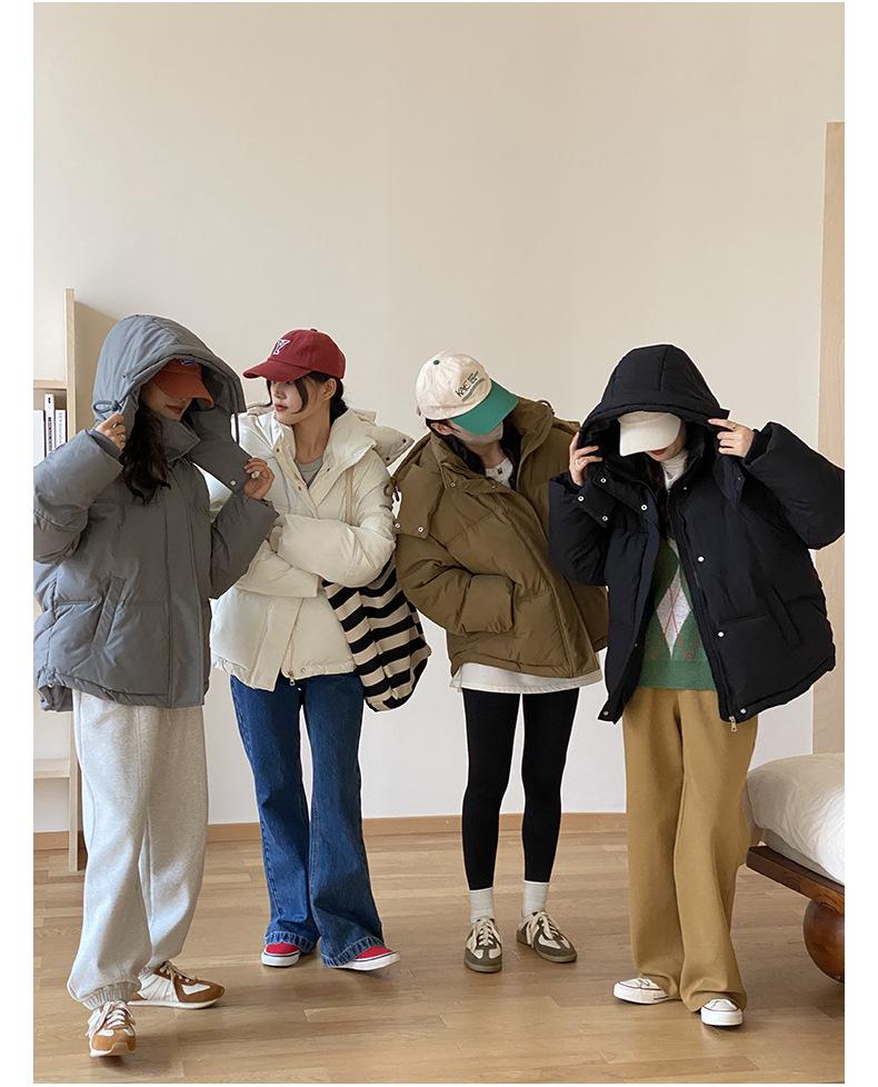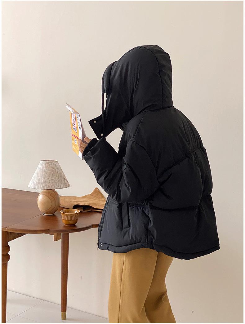 Chaquetas gruesas de invierno para mujer, chaqueta acolchada de algodón, abrigo corto cruzado de otoño e invierno con capucha y acolchado de algodón para mujer