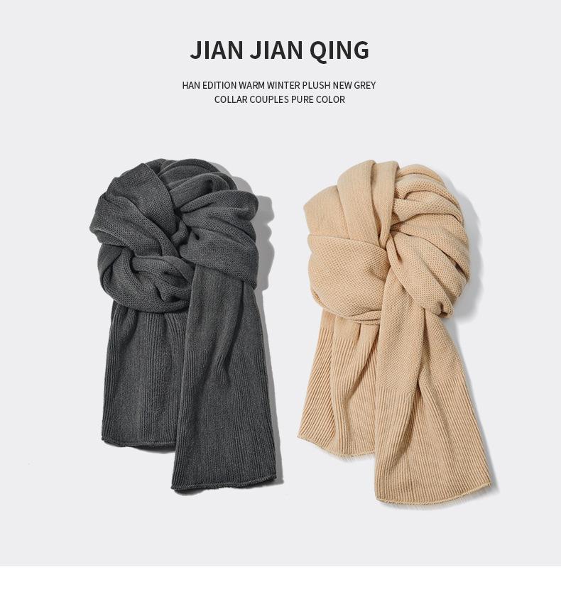 Bufanda de lana para mujer y hombre, estilo coreano, para invierno, combina con todo, cálida, para otoño e invierno, para estudiantes japoneses, gris, de punto, para parejas, color liso.