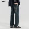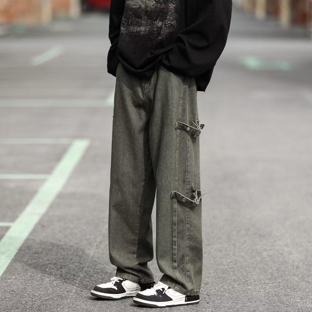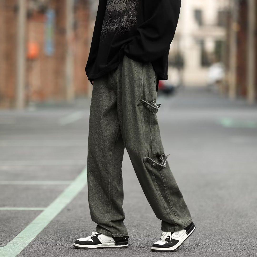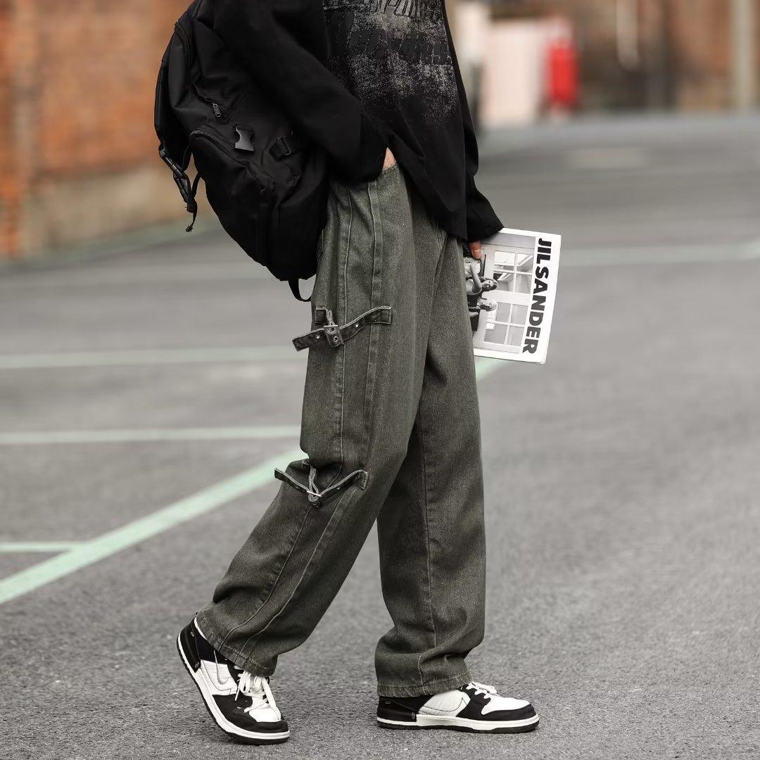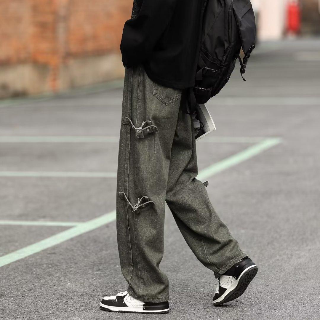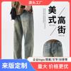 Pantalones vaqueros retro americanos sueltos y rectos para hombre, nueva marca de moda de otoño, pantalones largos casuales desgastados de talla grande