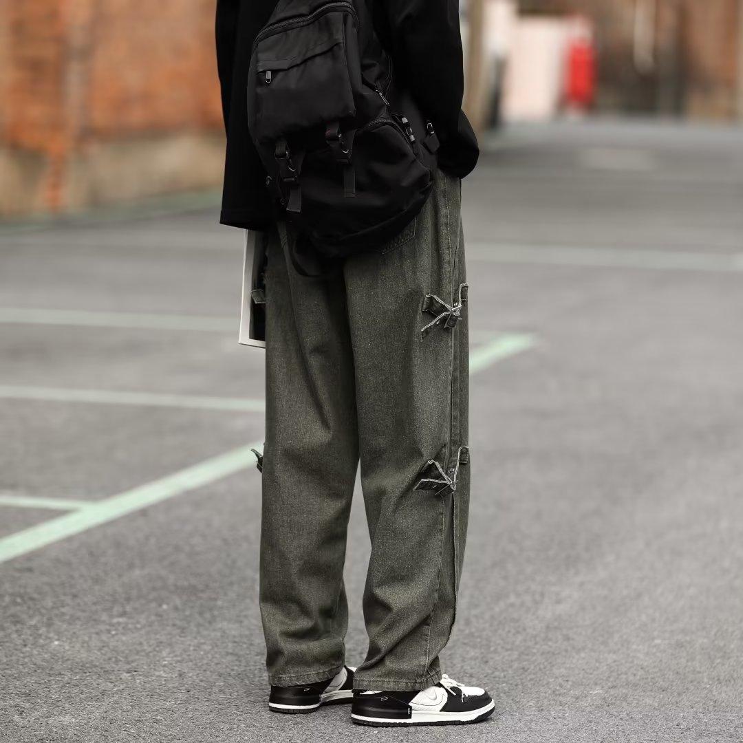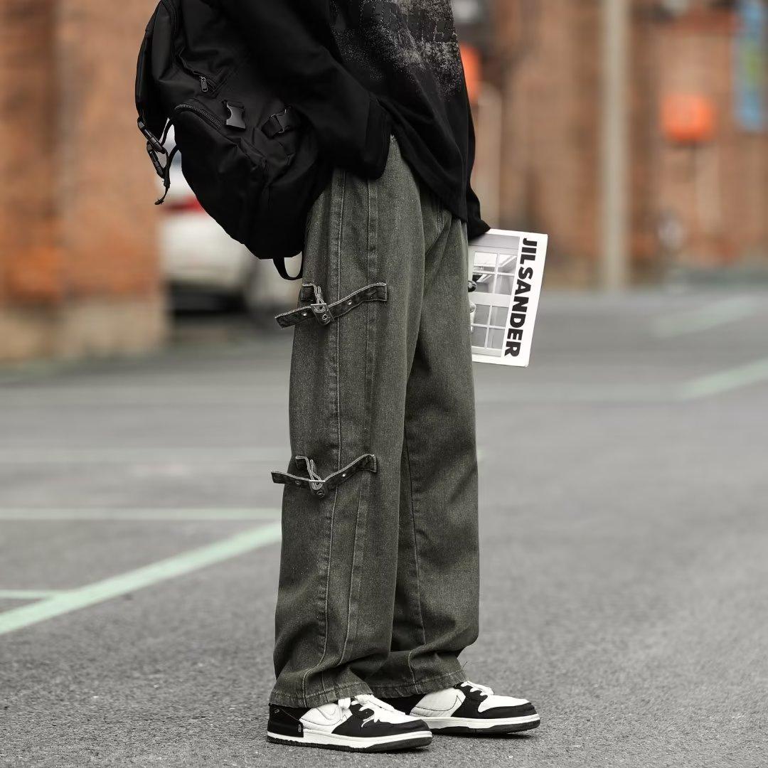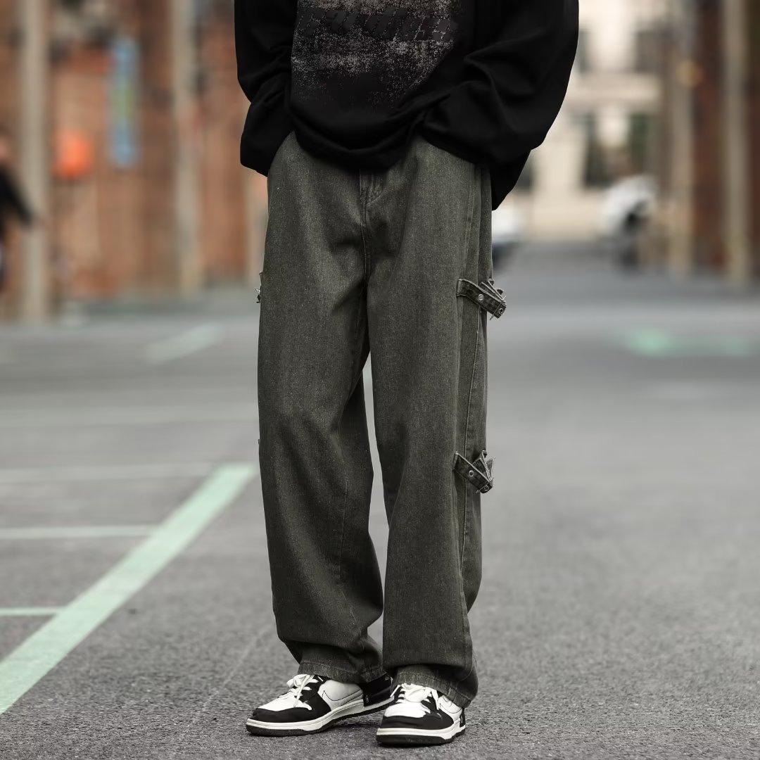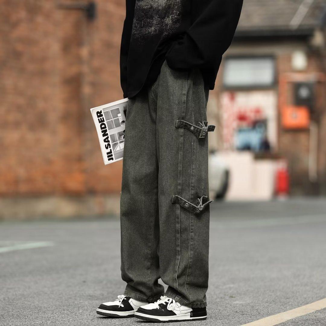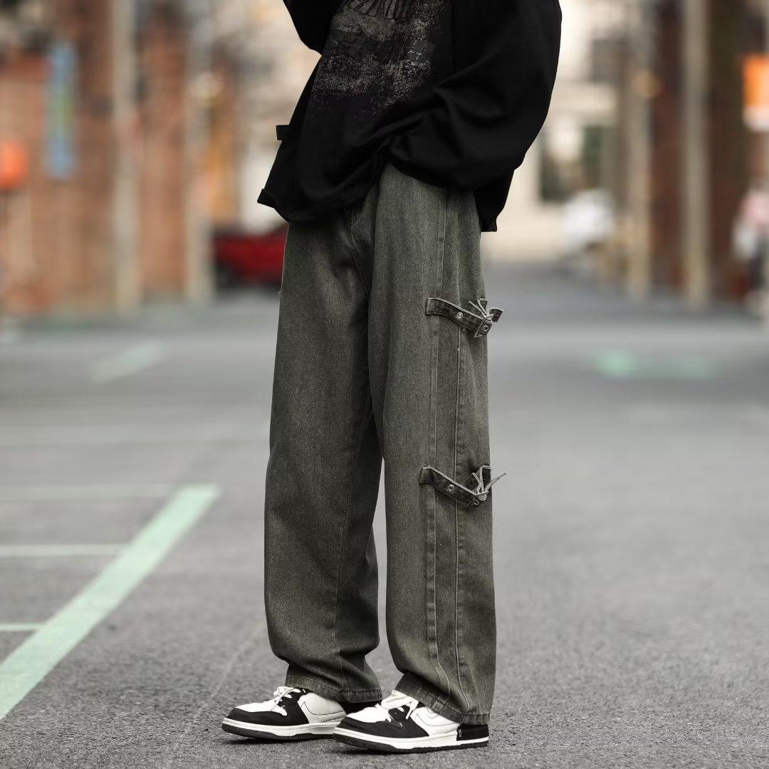 Pantalones vaqueros retro americanos sueltos y rectos para hombre, nueva marca de moda de otoño, pantalones largos casuales desgastados de talla grande