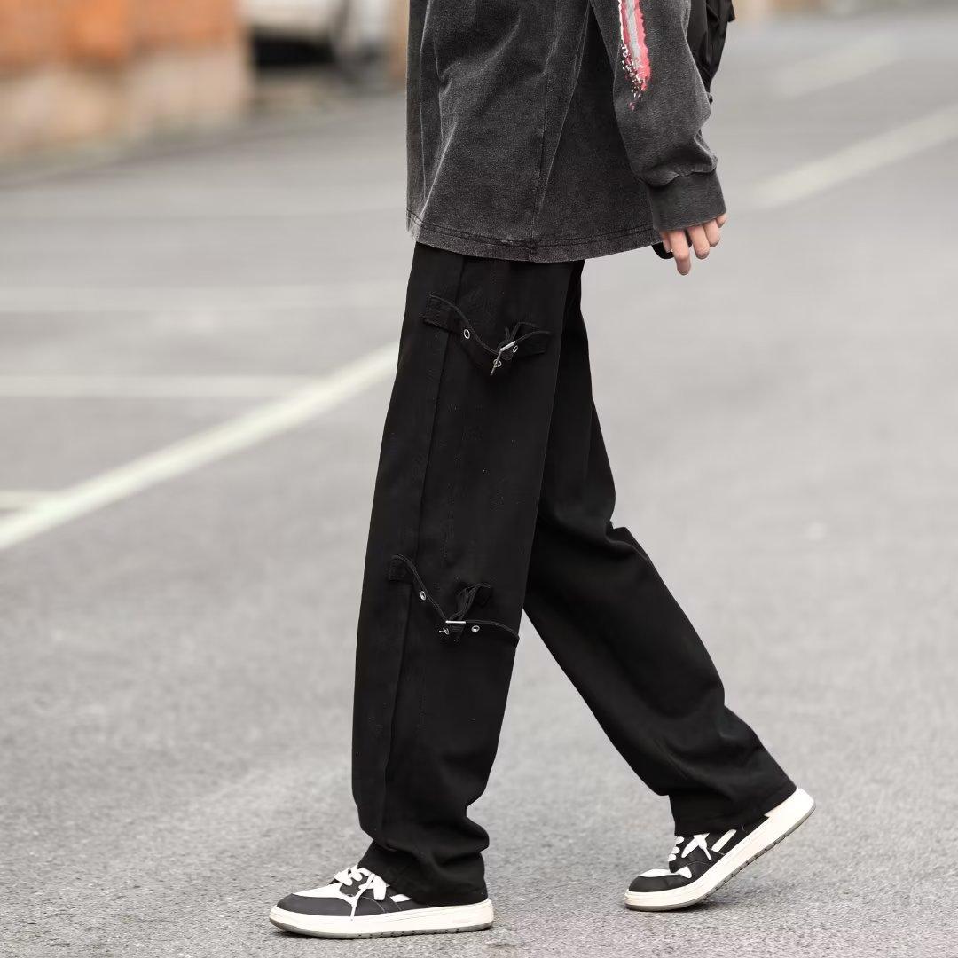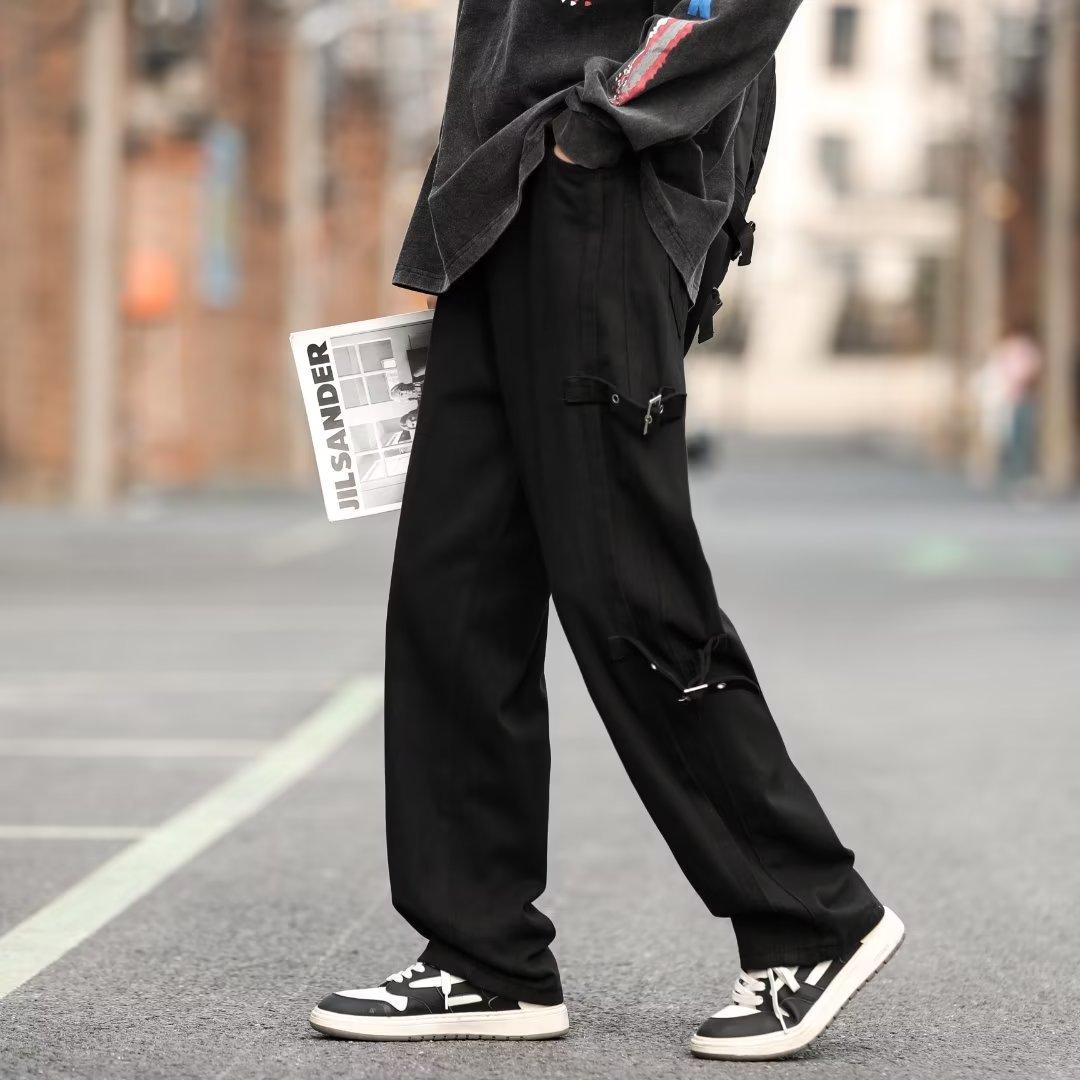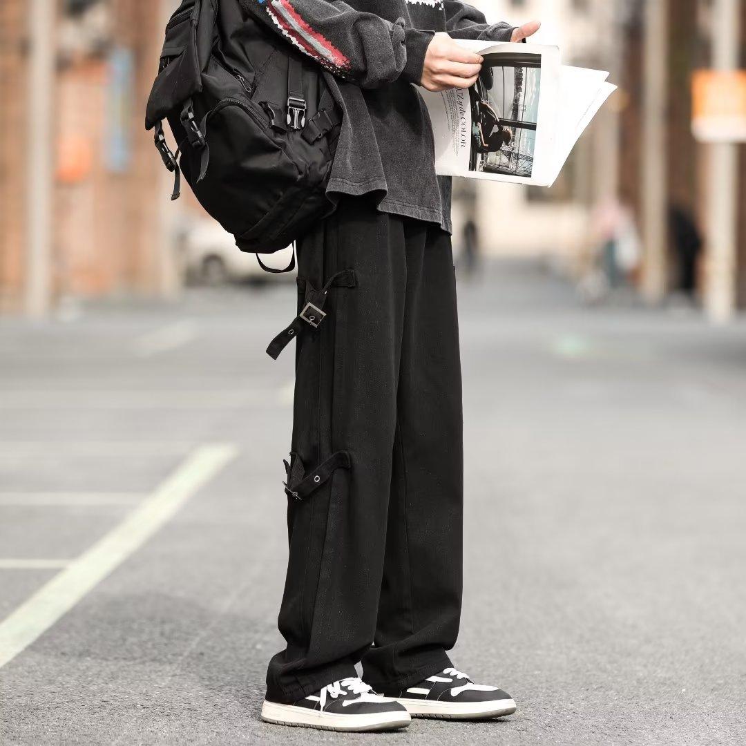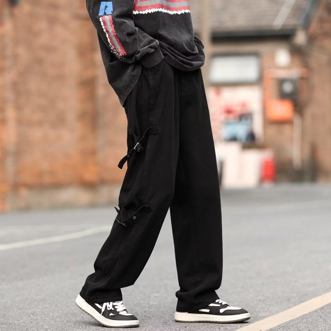 Pantalones vaqueros retro americanos sueltos y rectos para hombre, nueva marca de moda de otoño, pantalones largos casuales desgastados de talla grande
