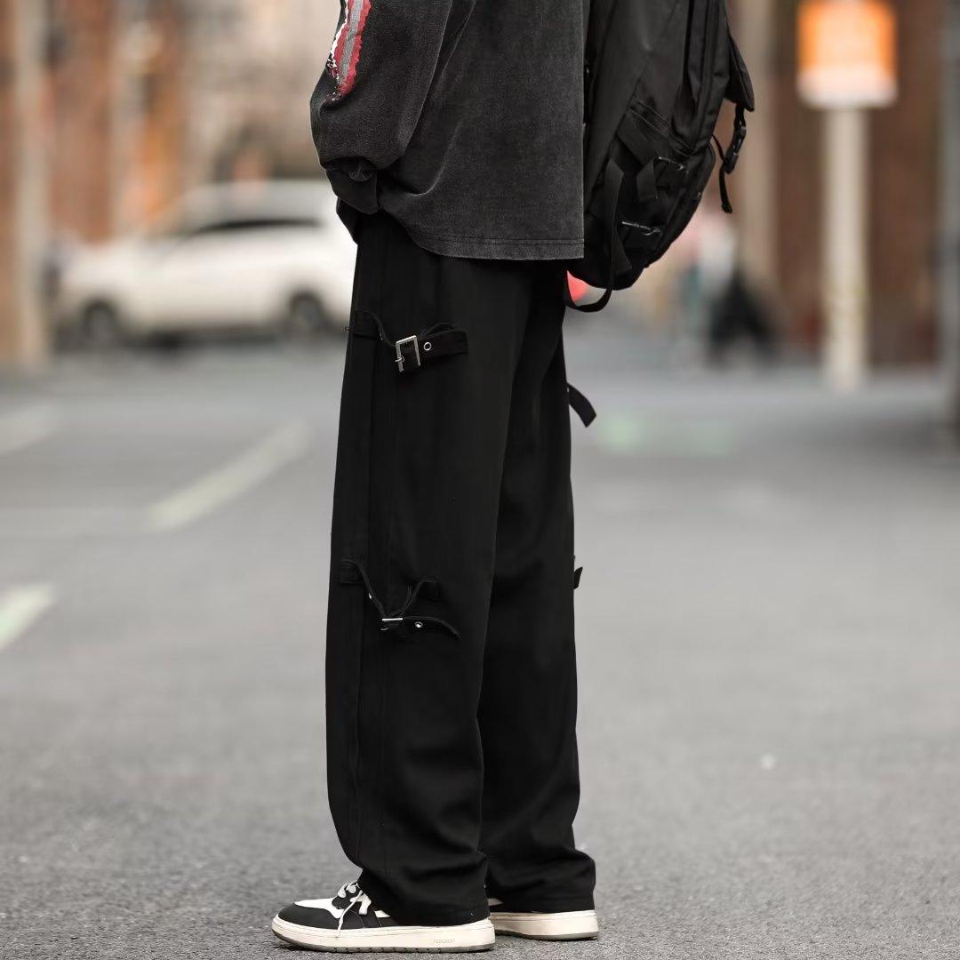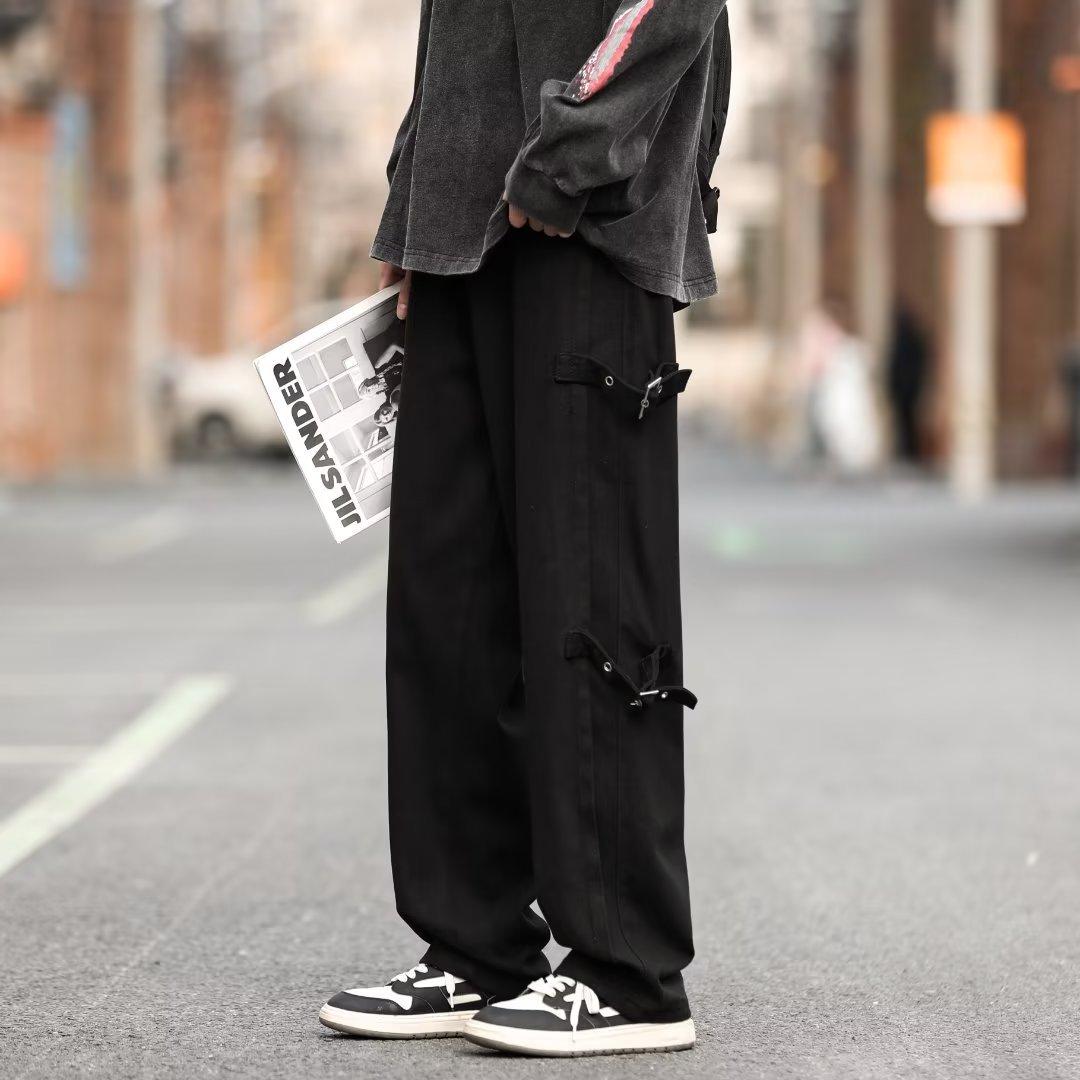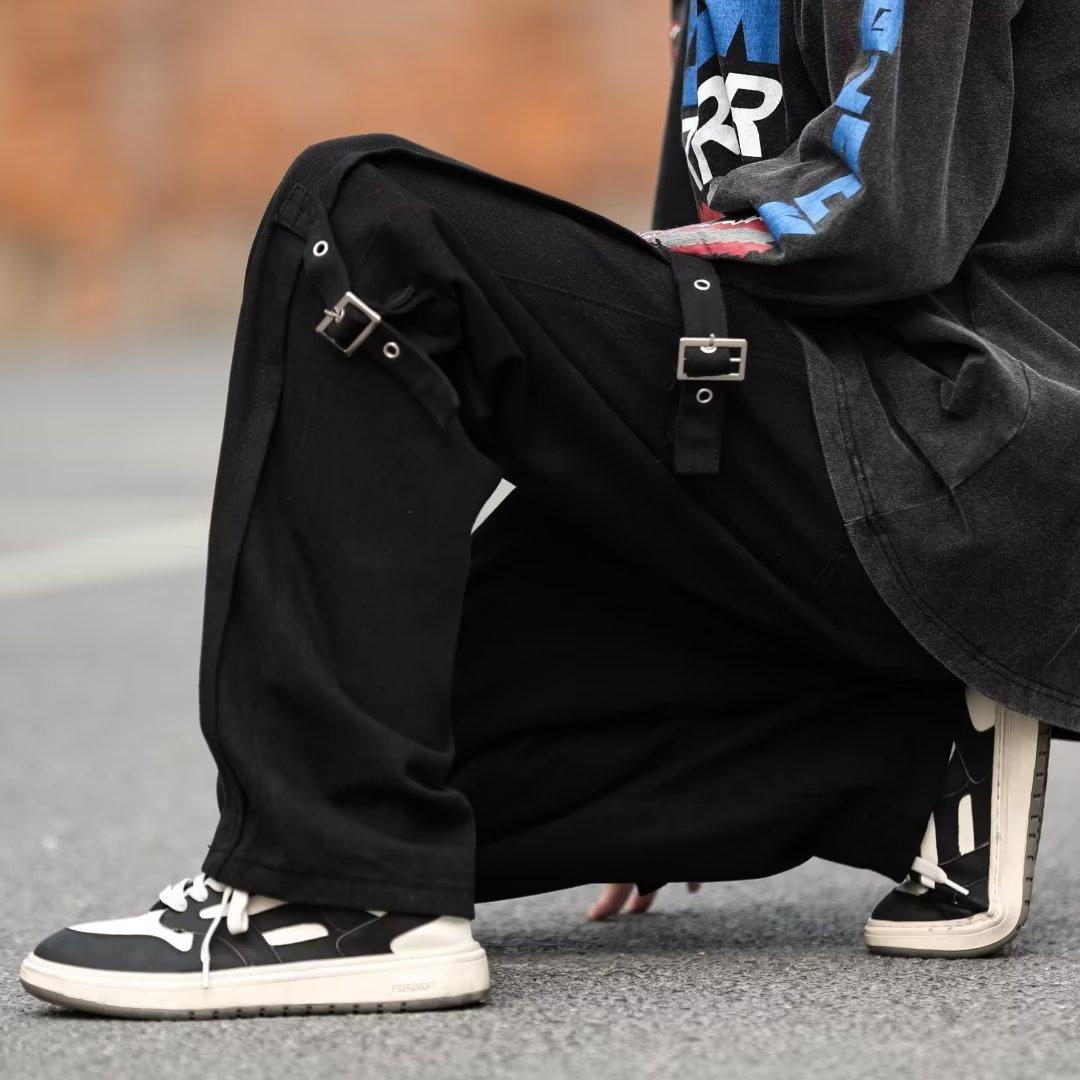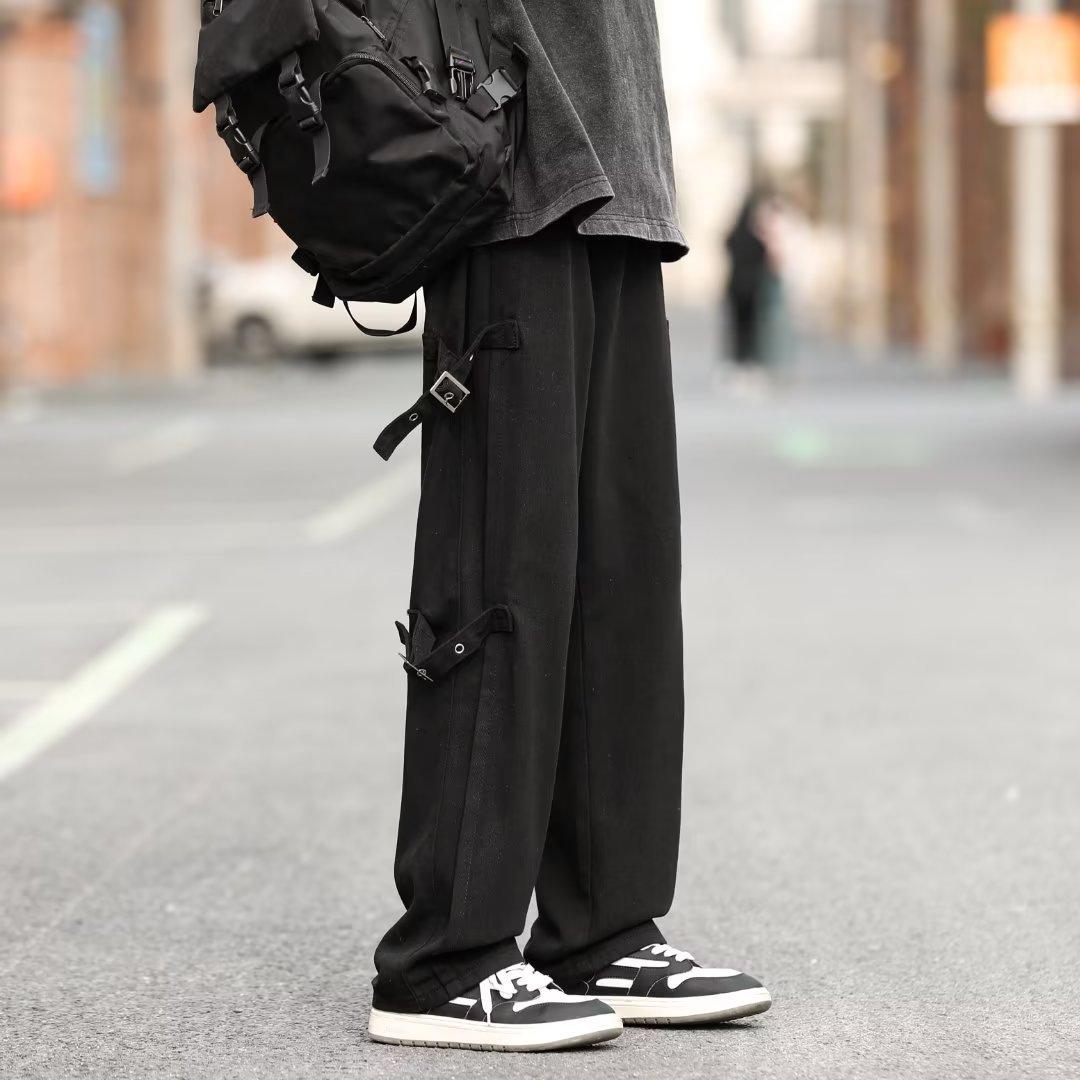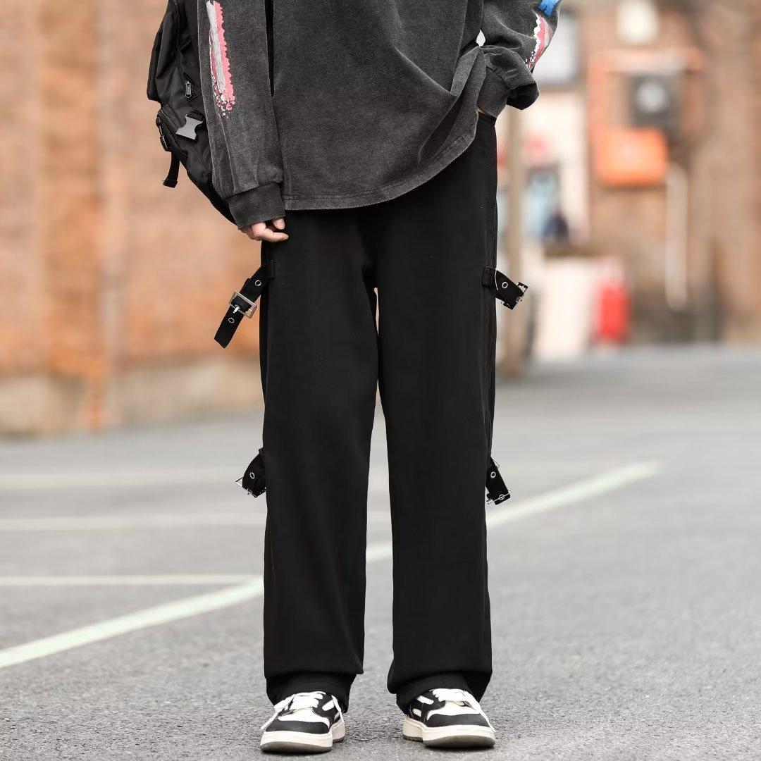 Pantalones vaqueros retro americanos sueltos y rectos para hombre, nueva marca de moda de otoño, pantalones largos casuales desgastados de talla grande