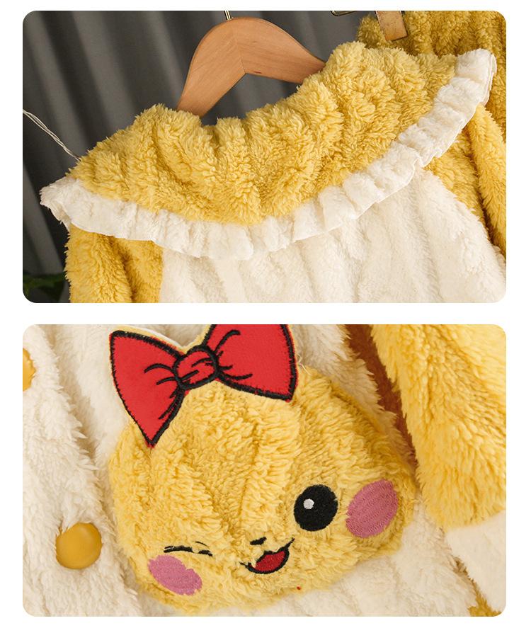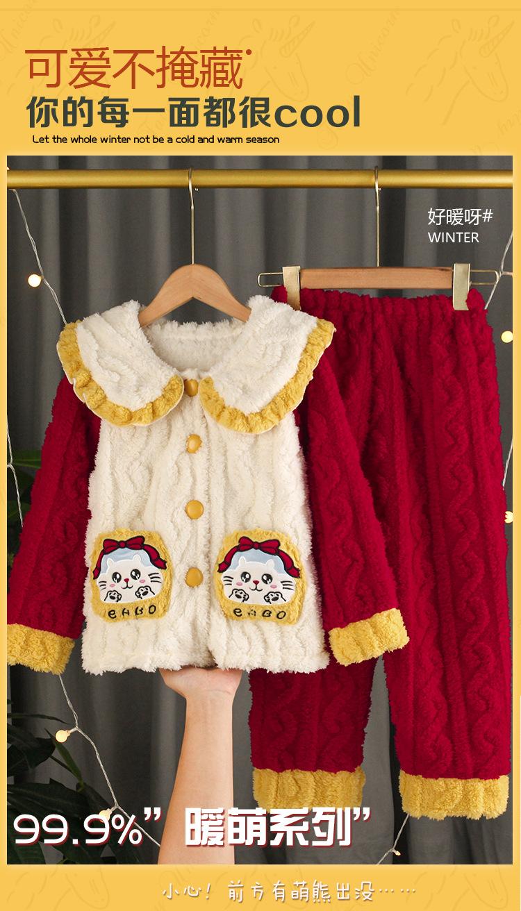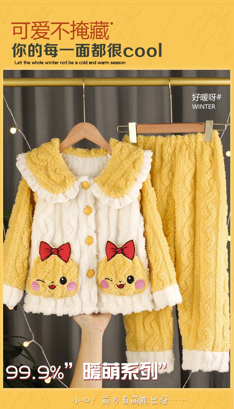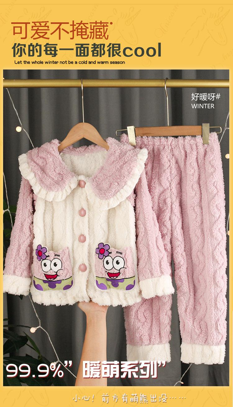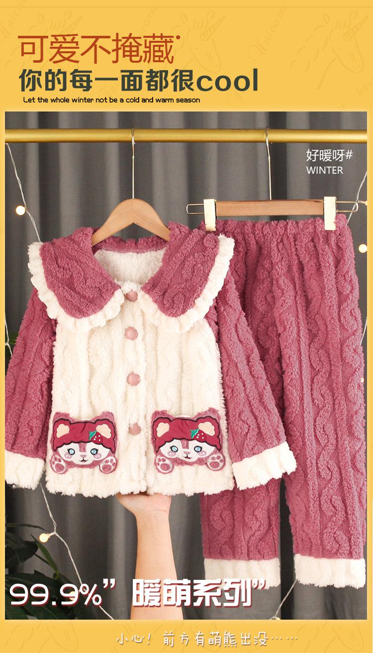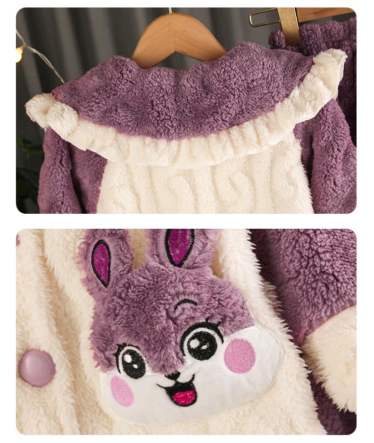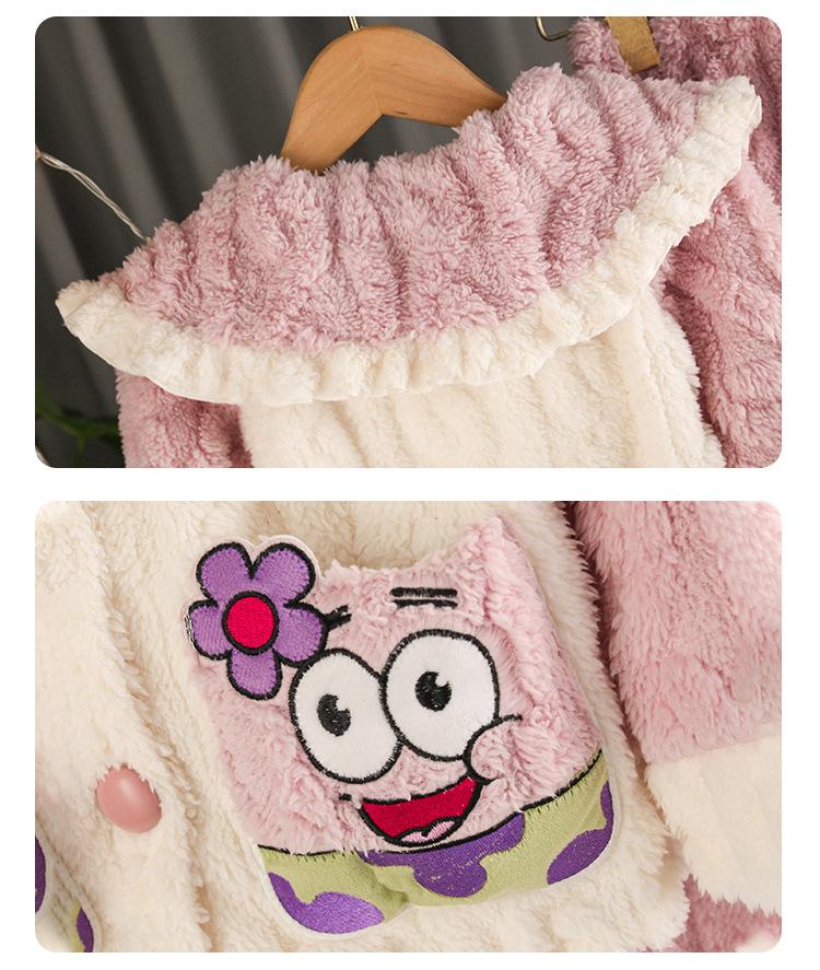 Pijamas gruesos para niños con forro polar 2024 para niñas otoño e invierno de forro polar de coral tipo cárdigan de dibujos animados dulces para niños medianos y grandes para estar en casa