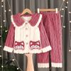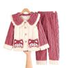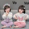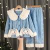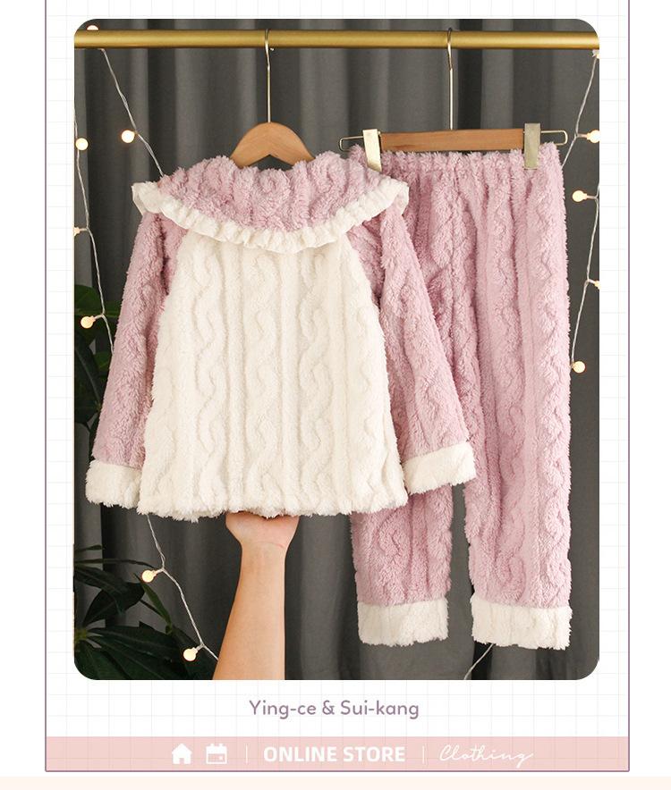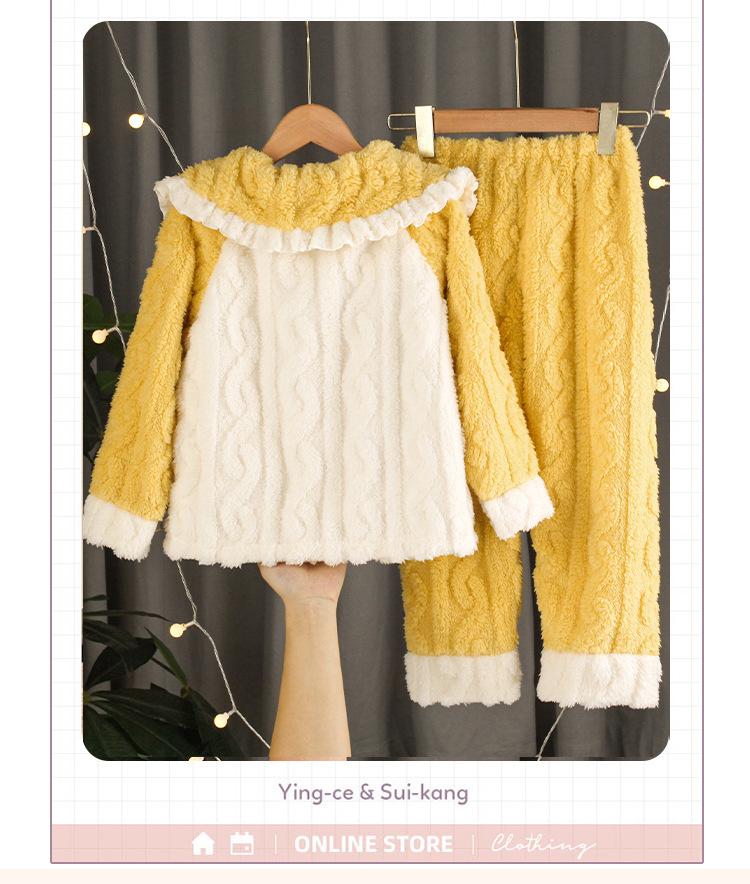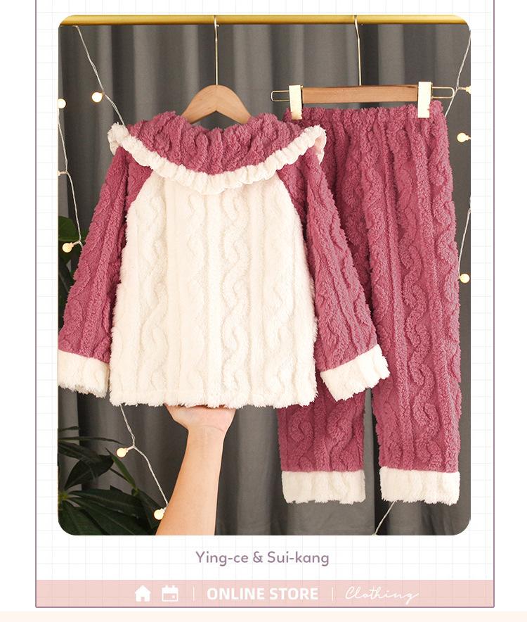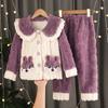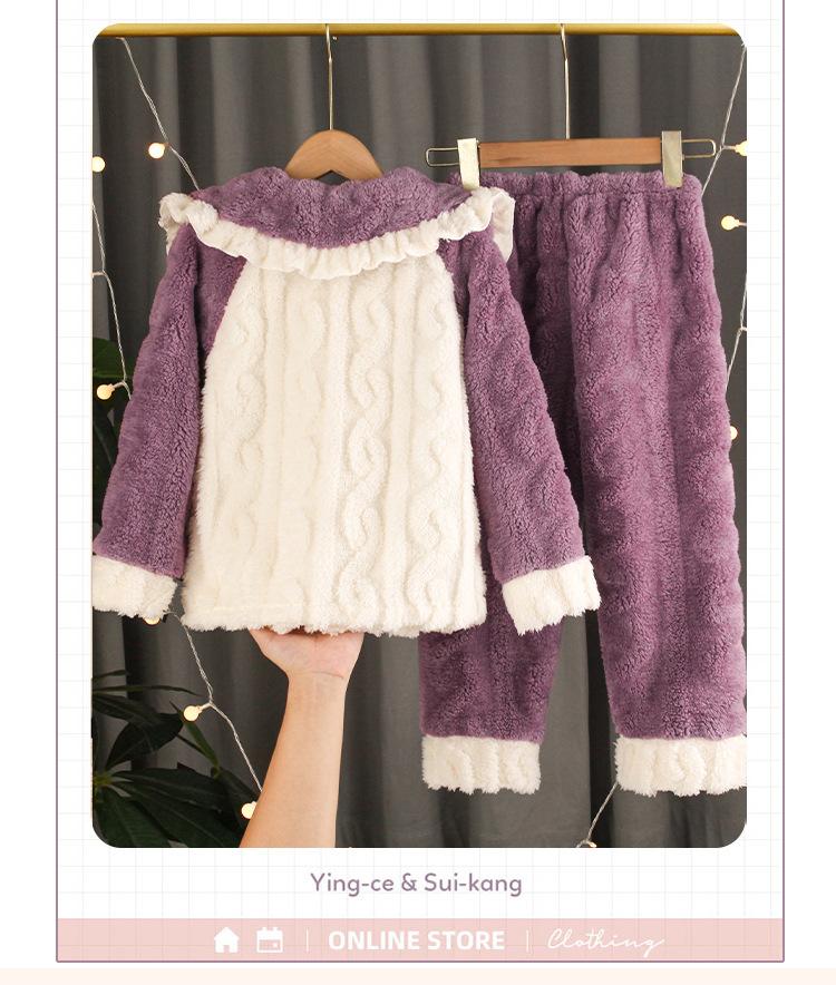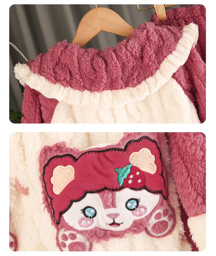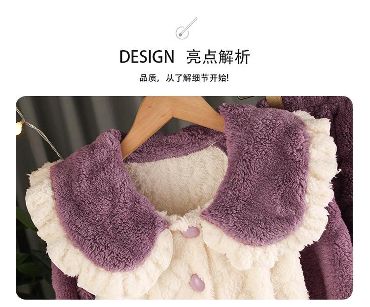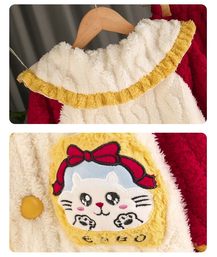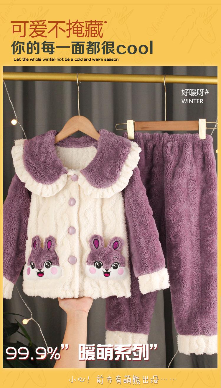 Pijamas gruesos para niños con forro polar 2024 para niñas otoño e invierno de forro polar de coral tipo cárdigan de dibujos animados dulces para niños medianos y grandes para estar en casa