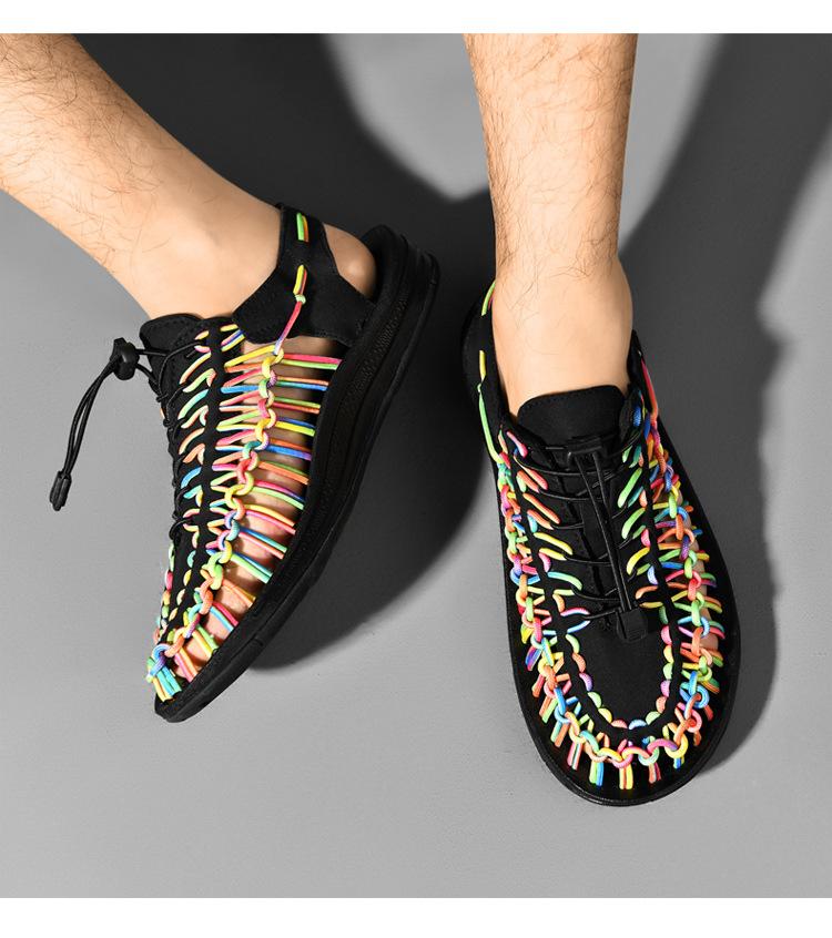 2023 Nuevos zapatos casuales para hombre, sandalias tejidas de primavera y verano, zapatos de playa de tendencia de moda, zapatos Baotou sin cordones, zapatos perezosos