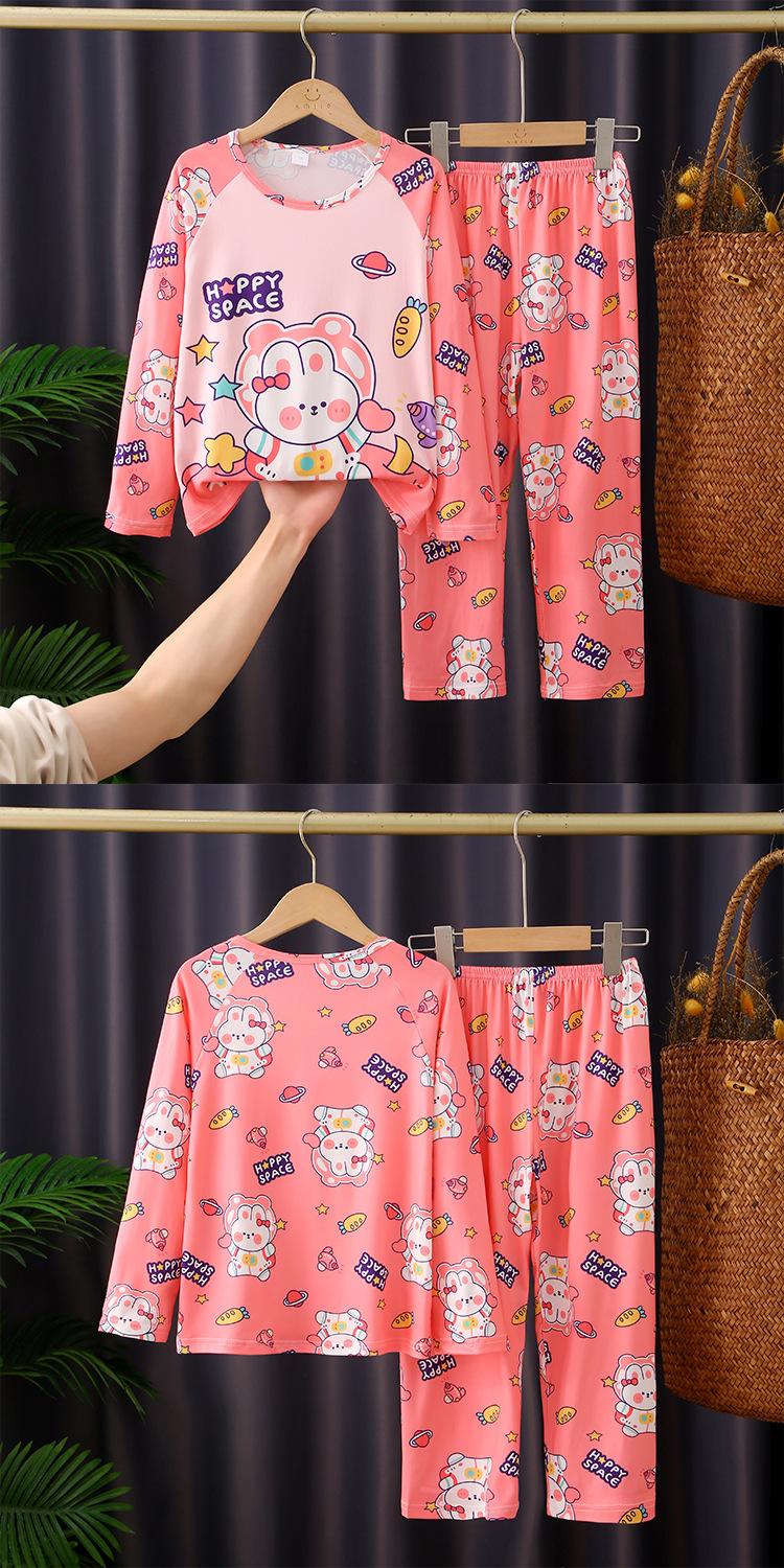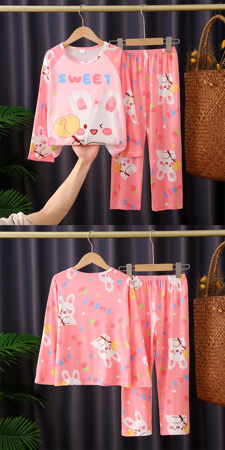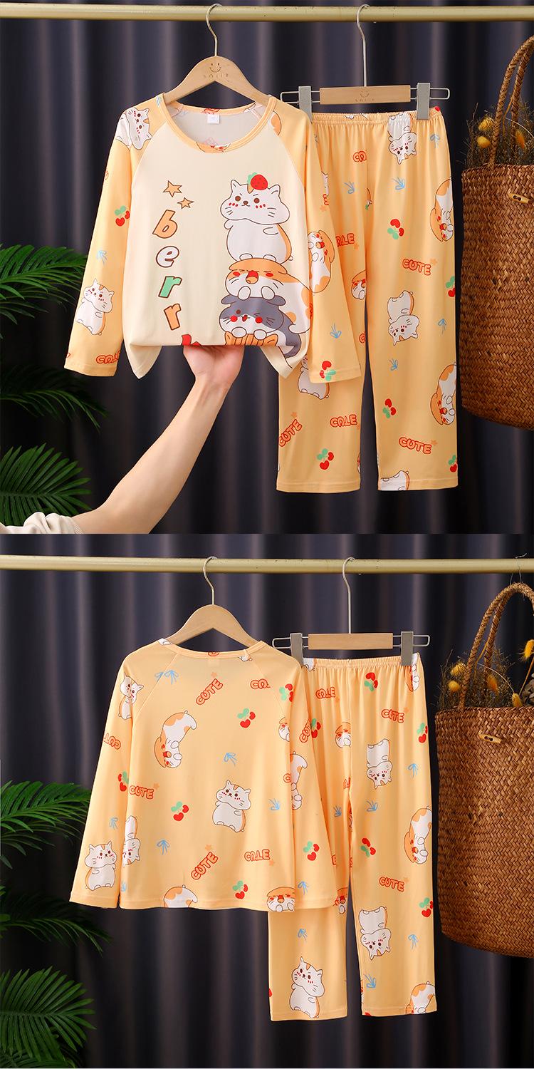 Ropa de Verano para Niños para Aire Acondicionado Pijamas Manga Larga Delgada Traje para Niños Dibujos Animados Ropa para el Hogar para Niñas Venta al por Mayor