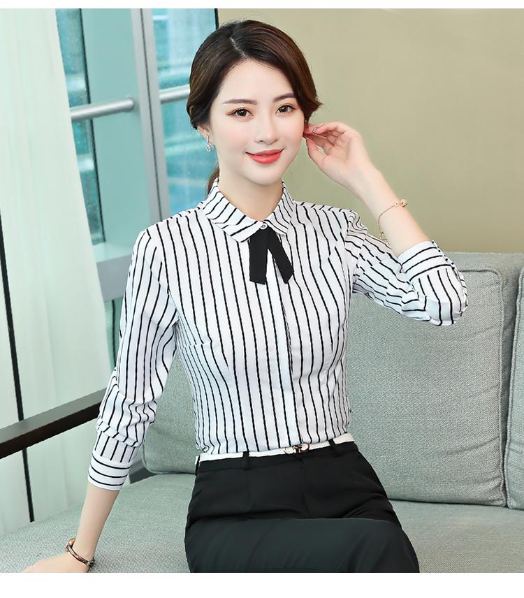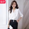 Camisa para mujer 2019 primavera manga larga blanca slim fit camisa de trabajo profesional verano cuello pico suelta talla grande manga corta estilo coreano OL