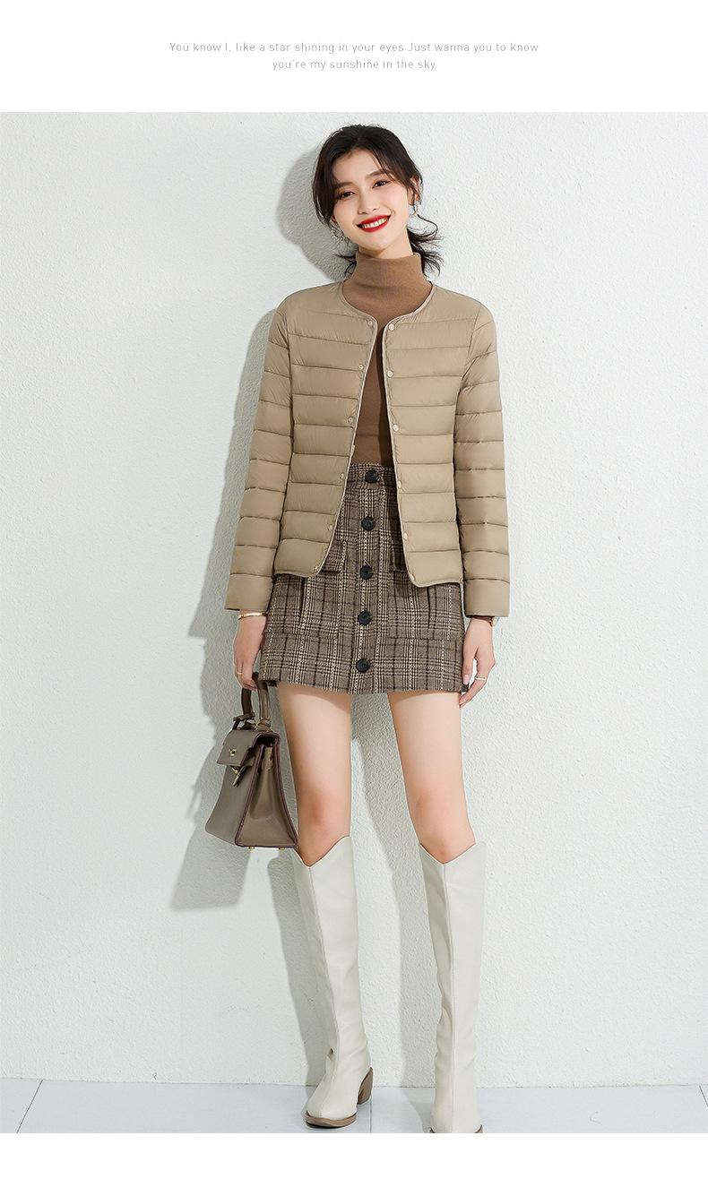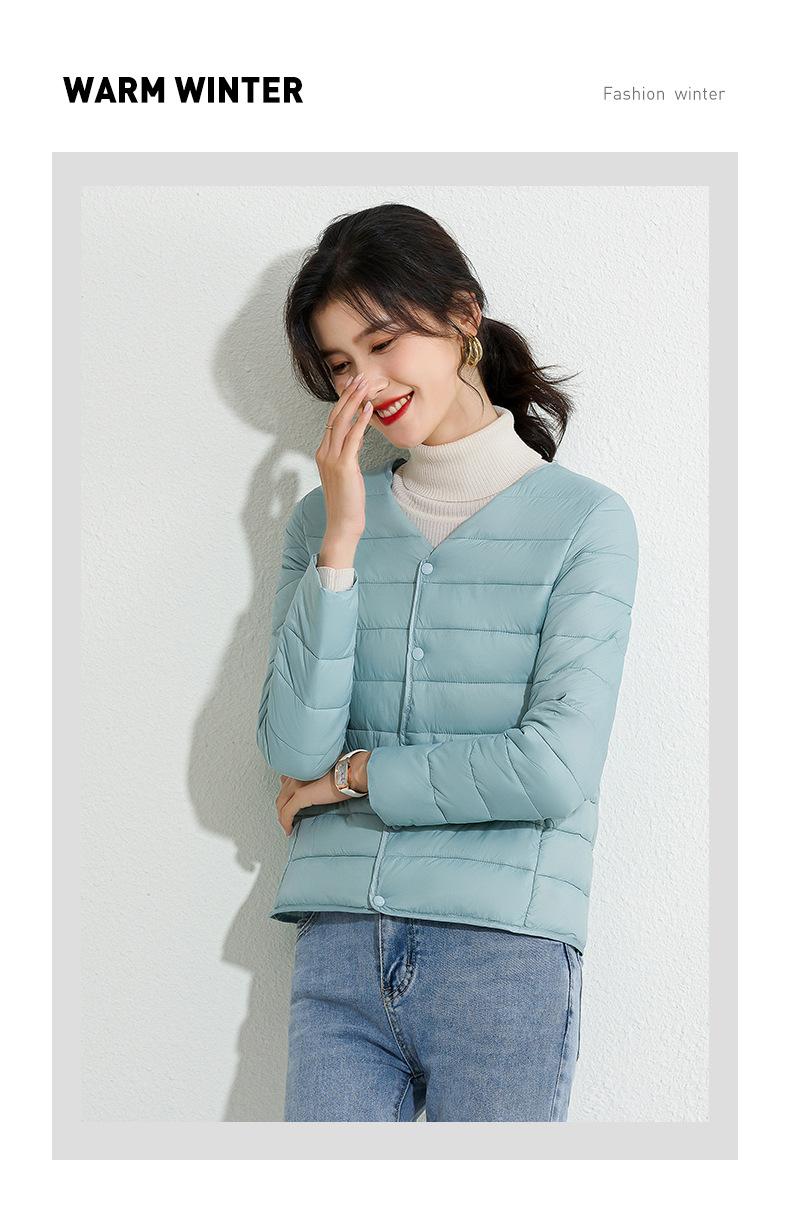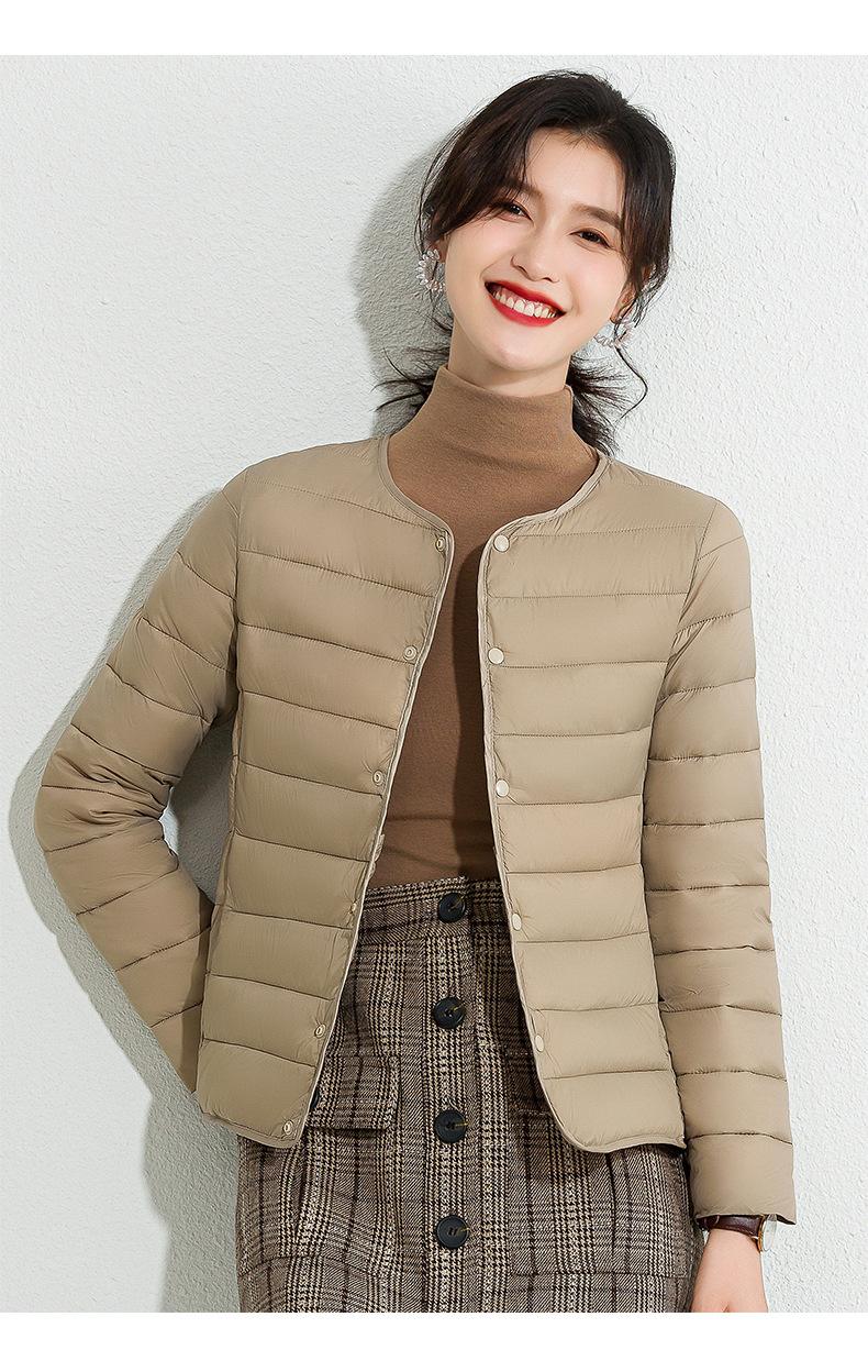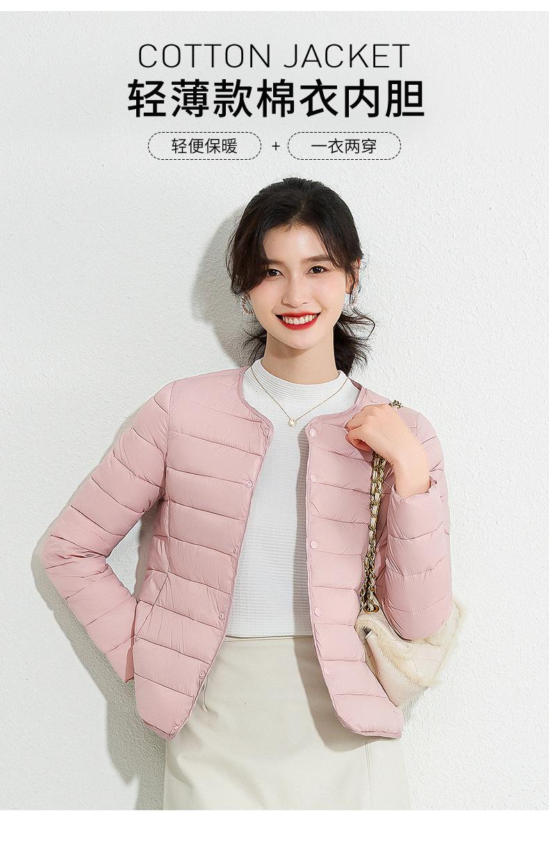 Chaqueta Ligera Corta de Algodón y Plumón para Mujer 2025 para Uso Interior, Abrigo Elegante y Cálido sin Cuello de Algodón de Seda para Otoño e Invierno