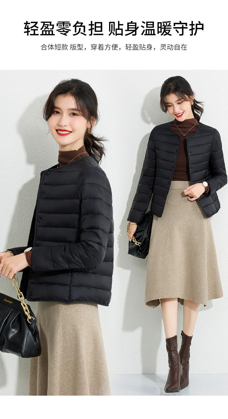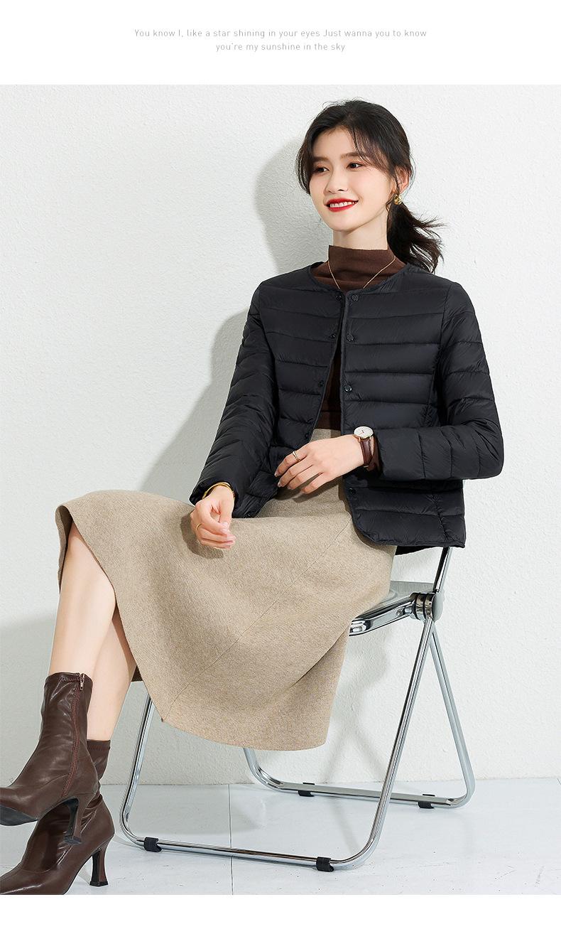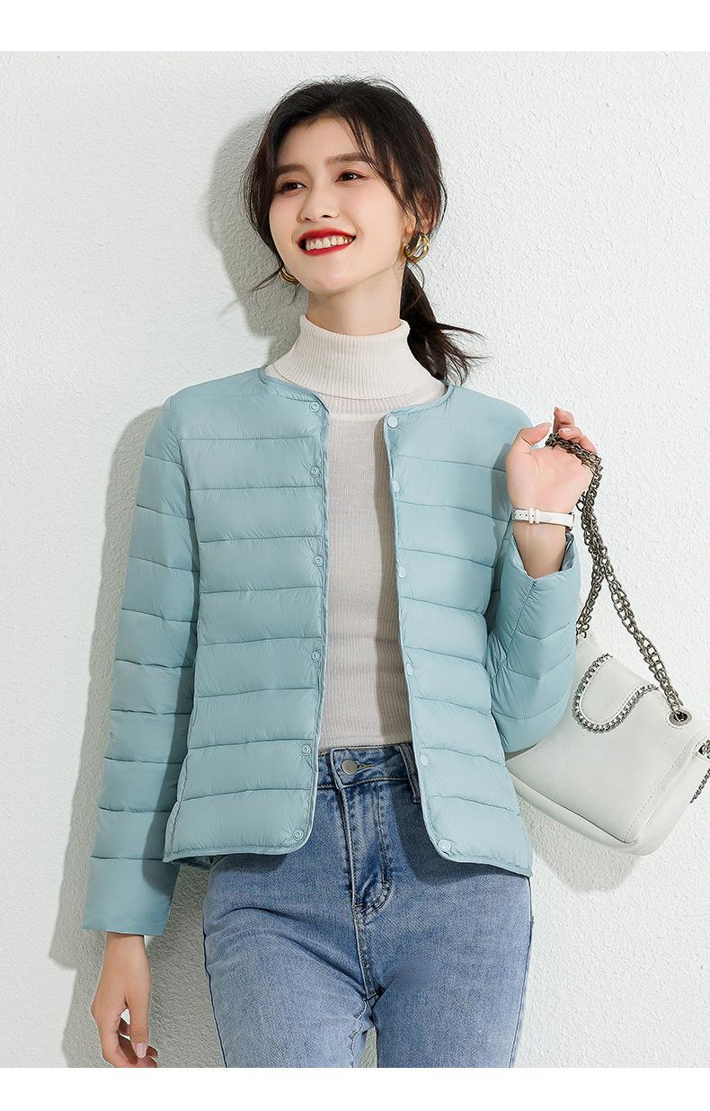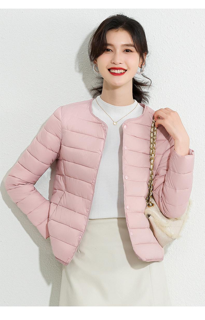 Chaqueta Ligera Corta de Algodón y Plumón para Mujer 2025 para Uso Interior, Abrigo Elegante y Cálido sin Cuello de Algodón de Seda para Otoño e Invierno