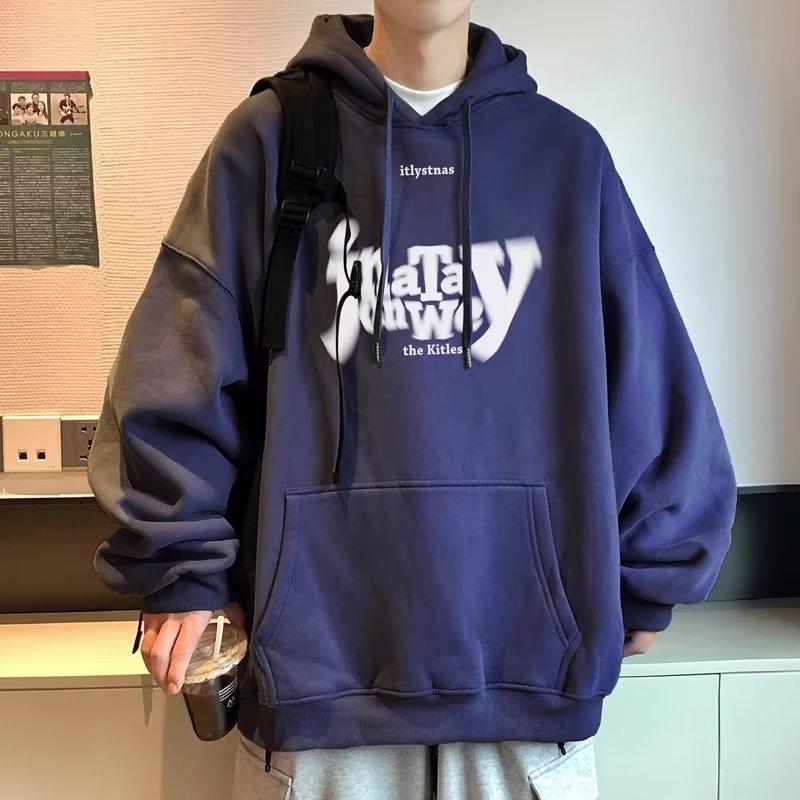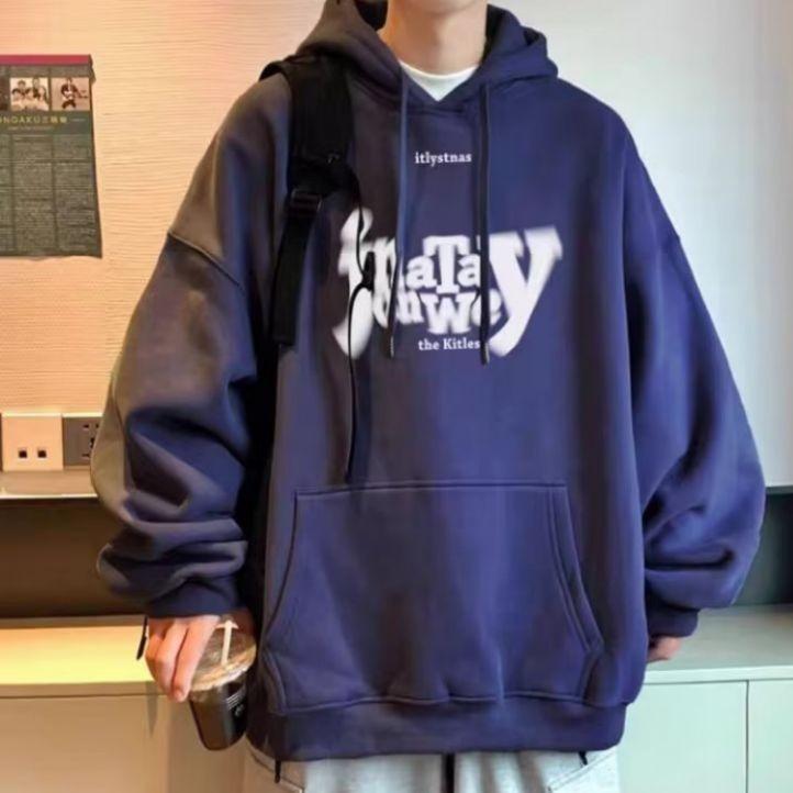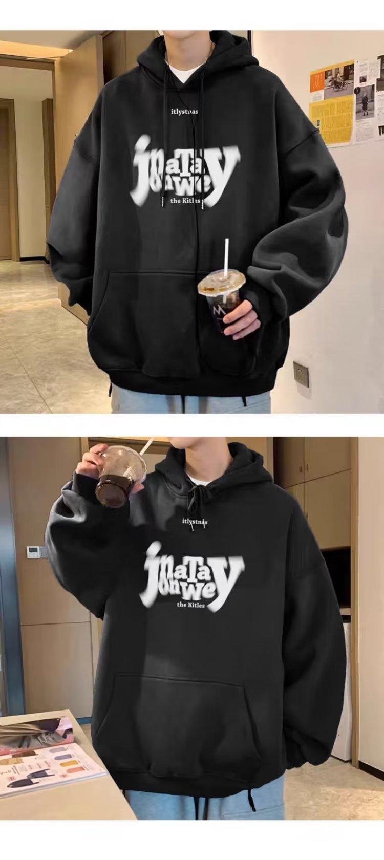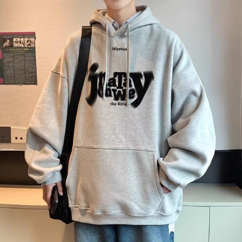 Suéter con capucha y estampado de letras difusas retro de estilo americano para estudiantes, ropa de pareja, chaqueta informal de calle de marca de moda de primavera y otoño para hombres