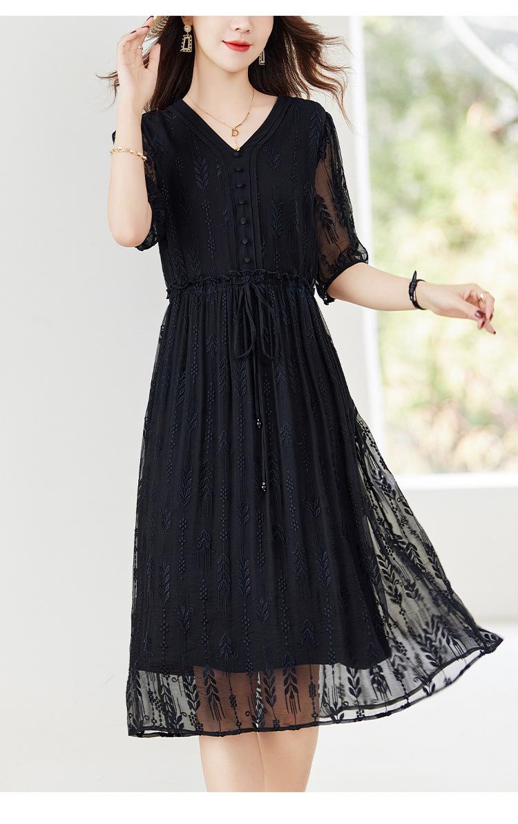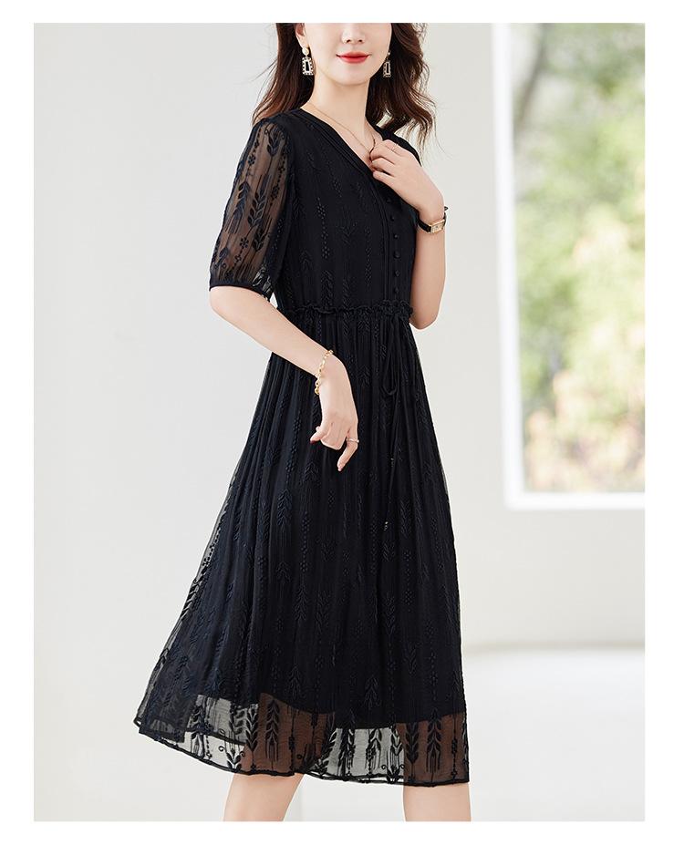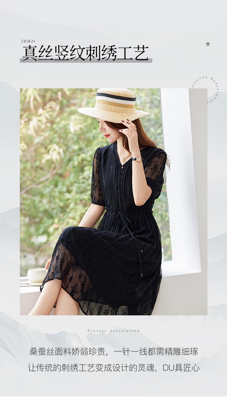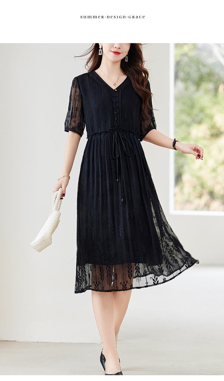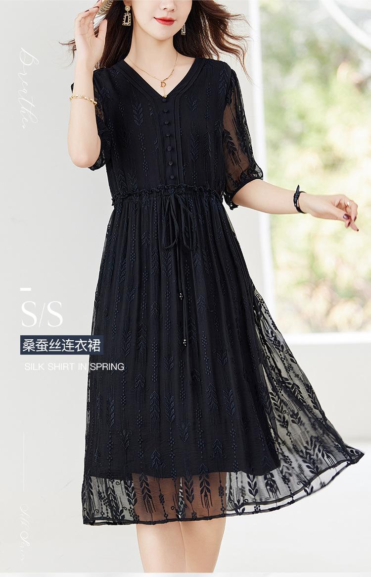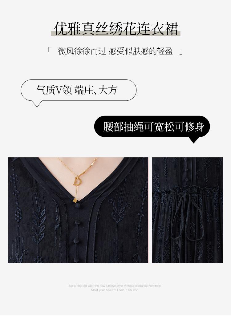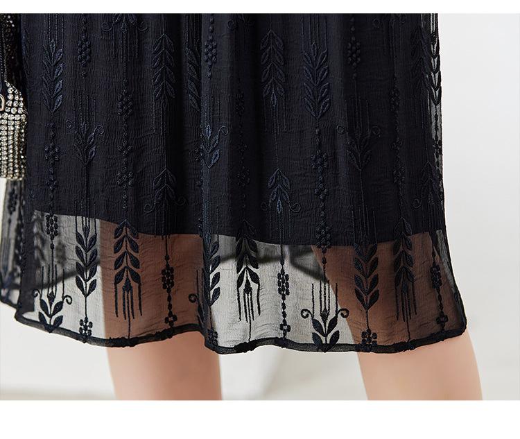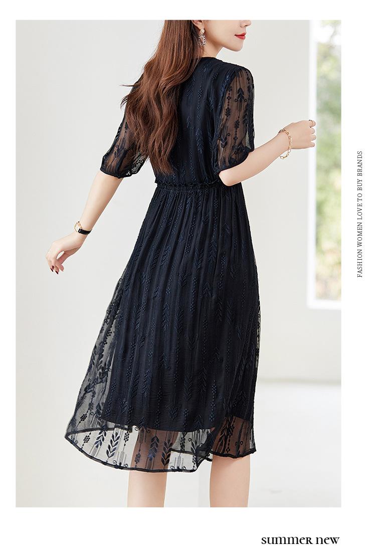 Vestido de Seda de Peso Pesado Original Four Seasons Green para Mujer Encaje Bordado Francés Falda de Seda de Morera para Mujer 82496712