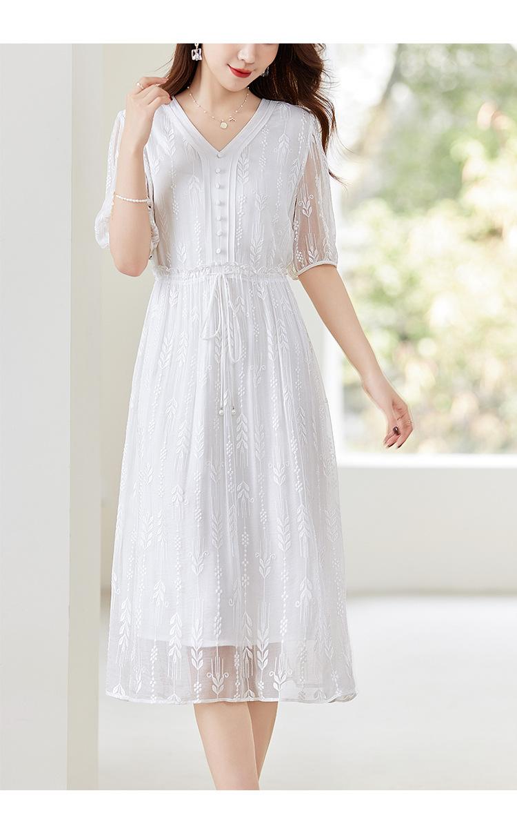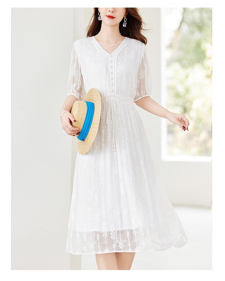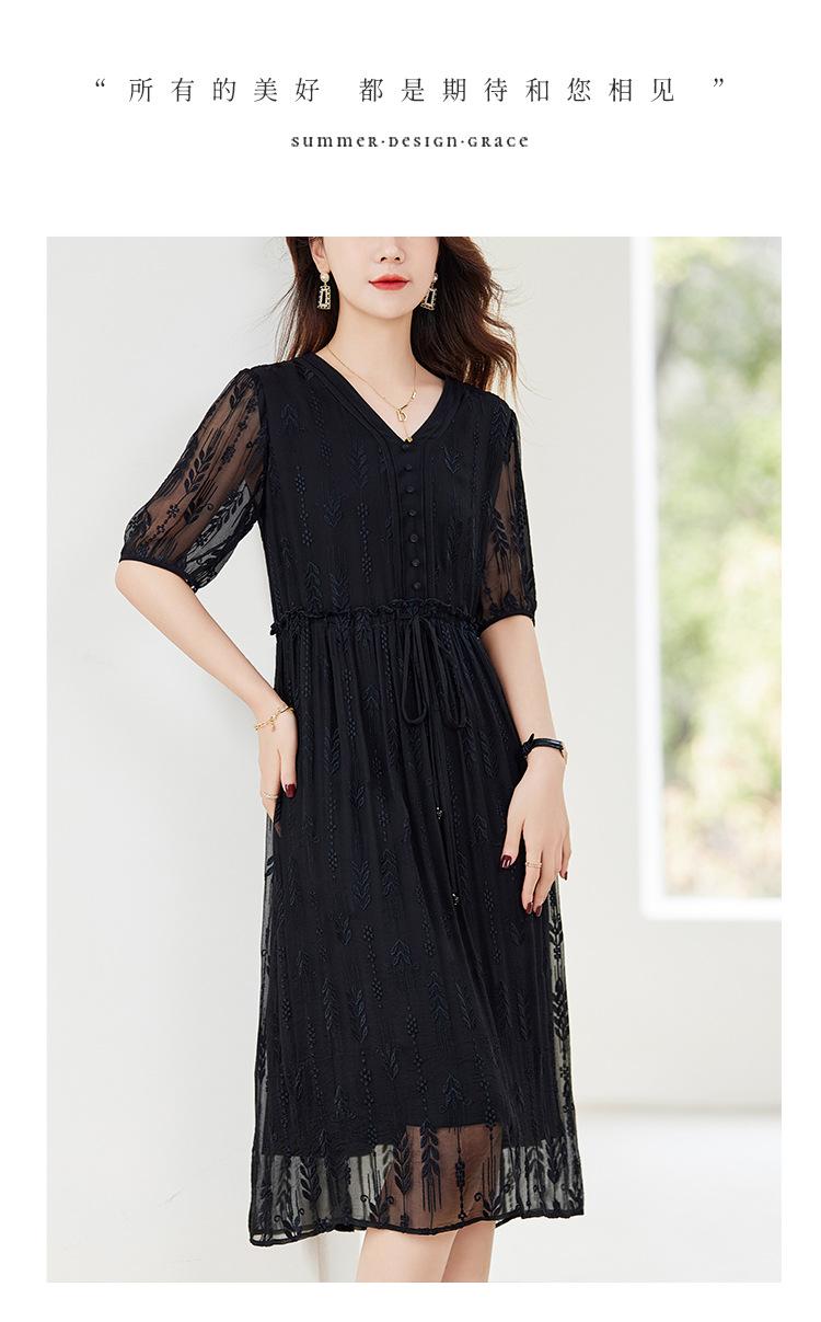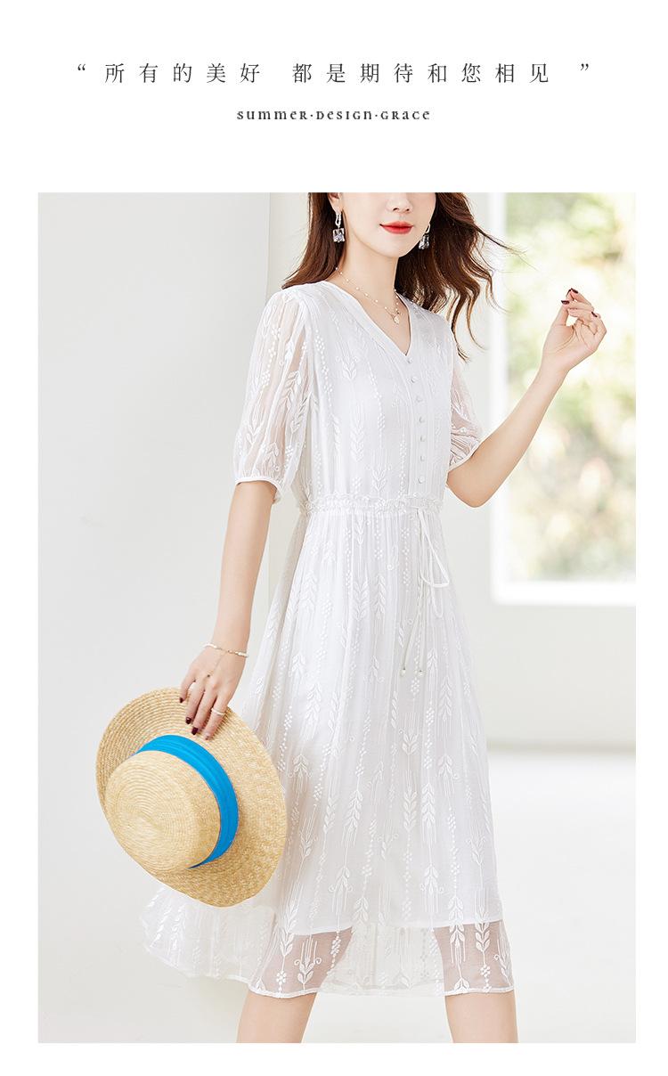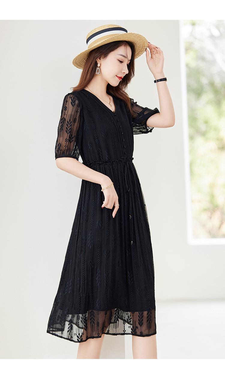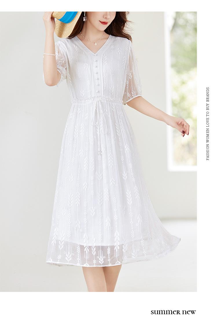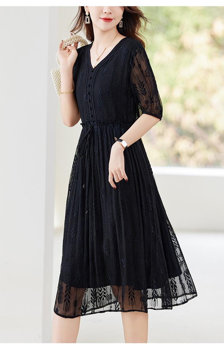 Vestido de Seda de Peso Pesado Original Four Seasons Green para Mujer Encaje Bordado Francés Falda de Seda de Morera para Mujer 82496712