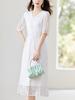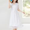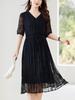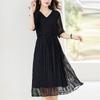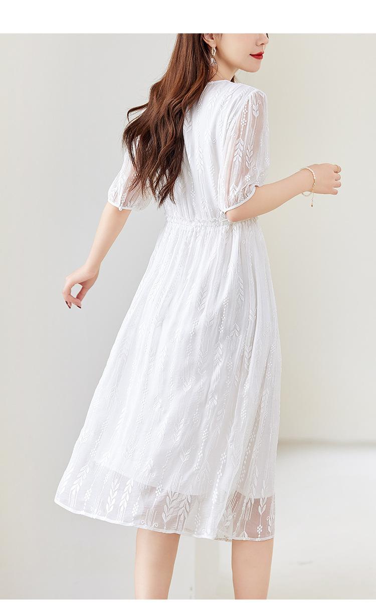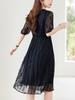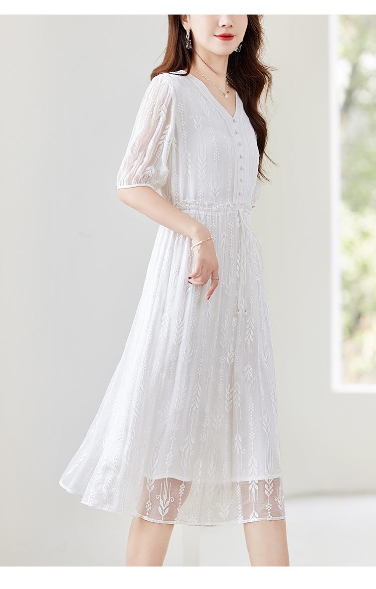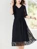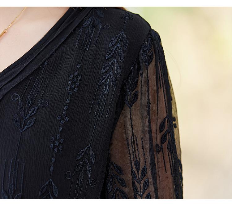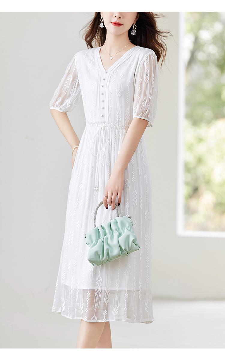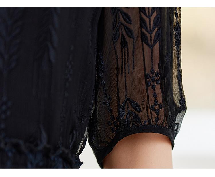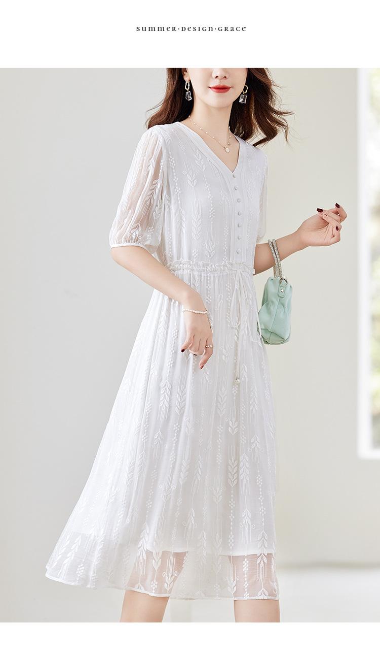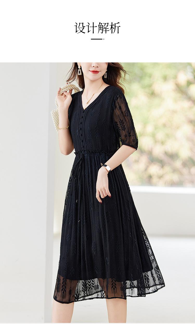 Vestido de Seda de Peso Pesado Original Four Seasons Green para Mujer Encaje Bordado Francés Falda de Seda de Morera para Mujer 82496712