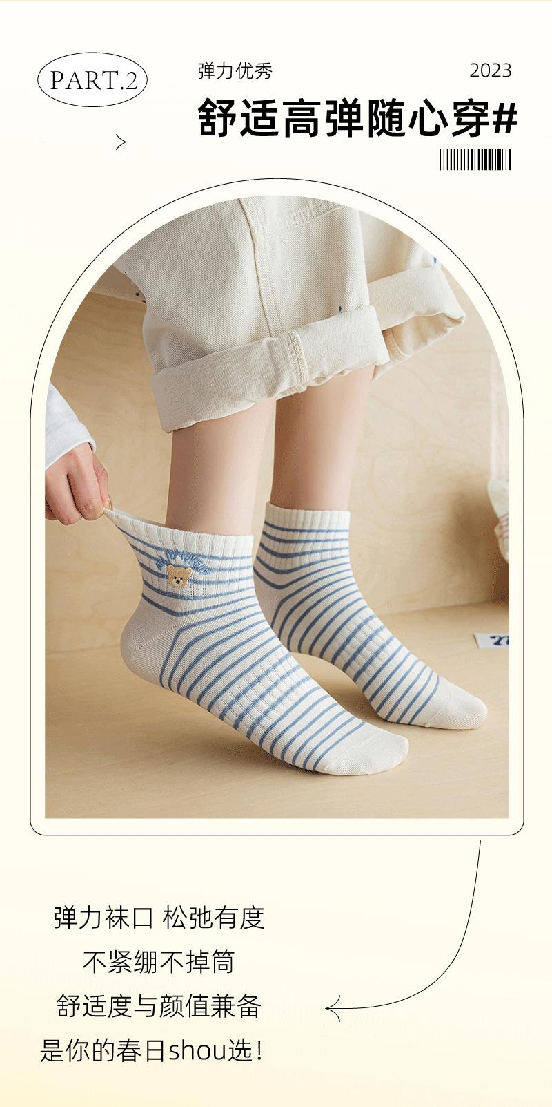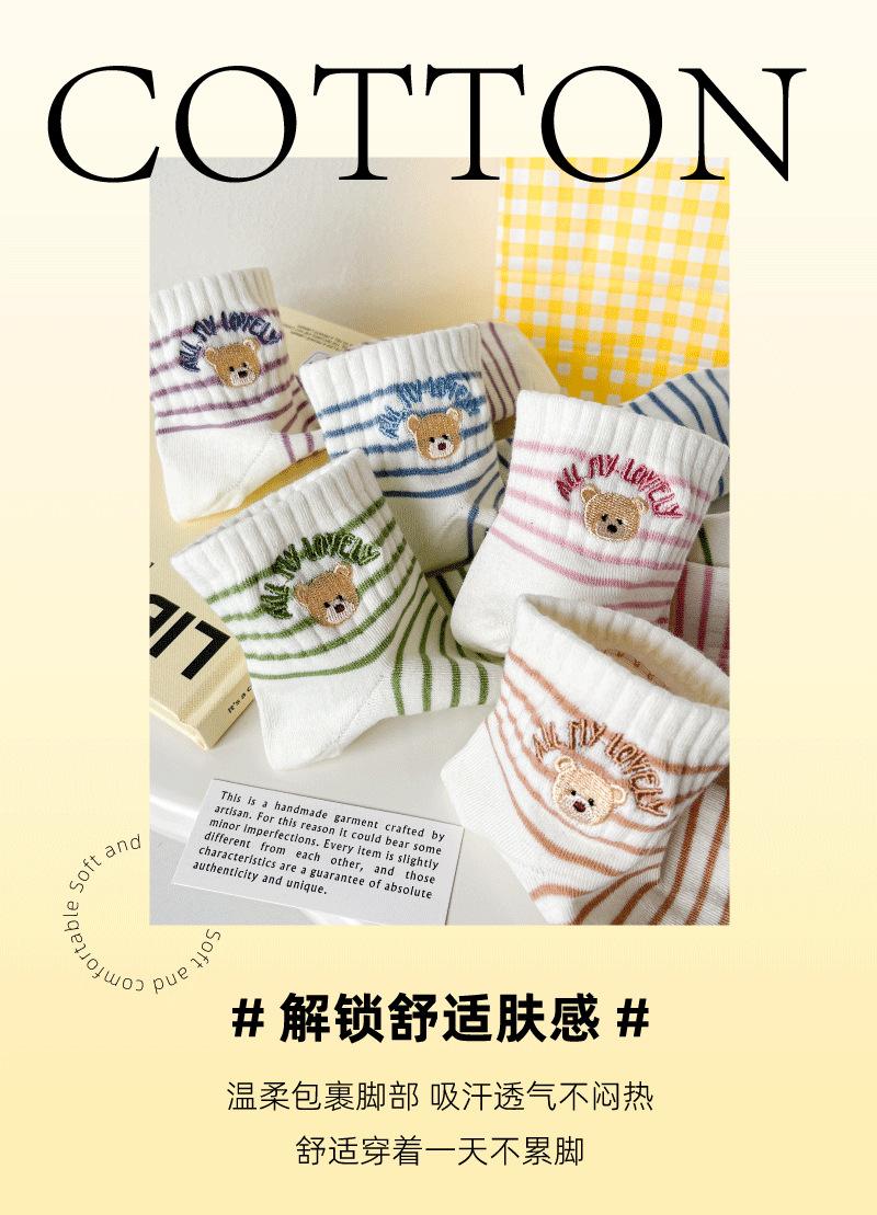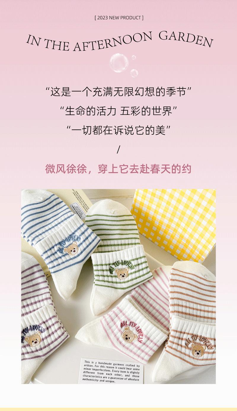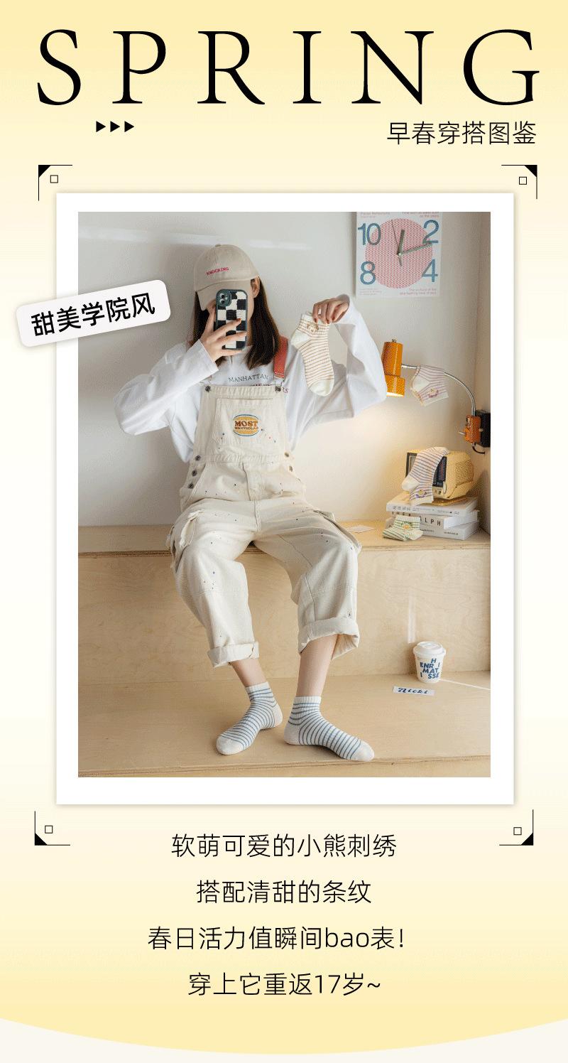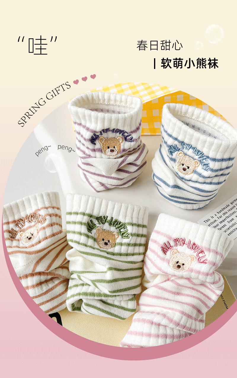 Calcetines de mujer, calcetines de primavera y verano con rayas de oso, estilo preppy, bordados, modernos calcetines japoneses finos deportivos hasta media pantorrilla, otoño