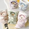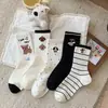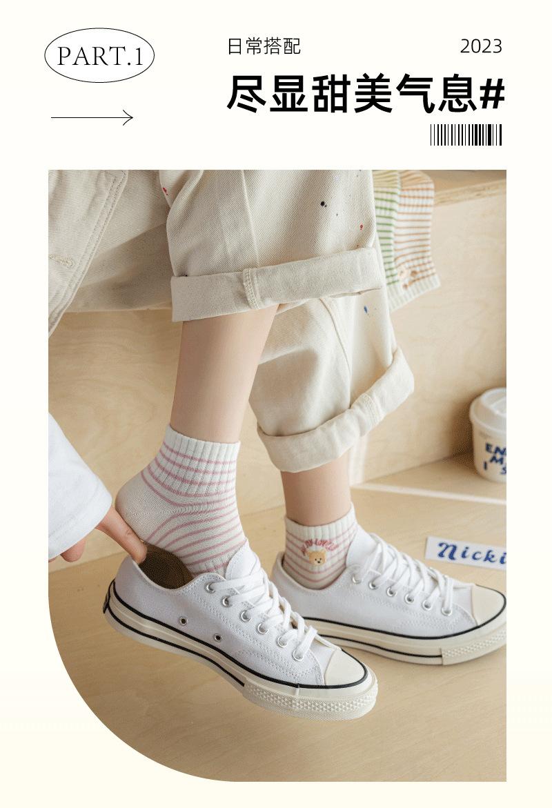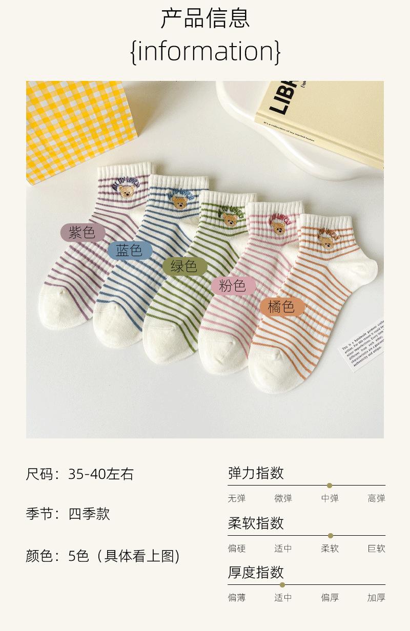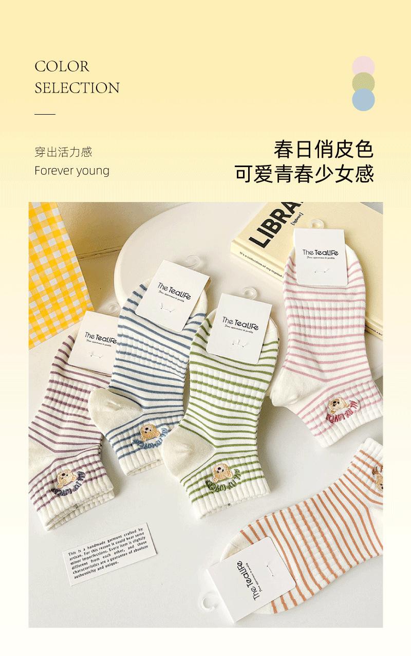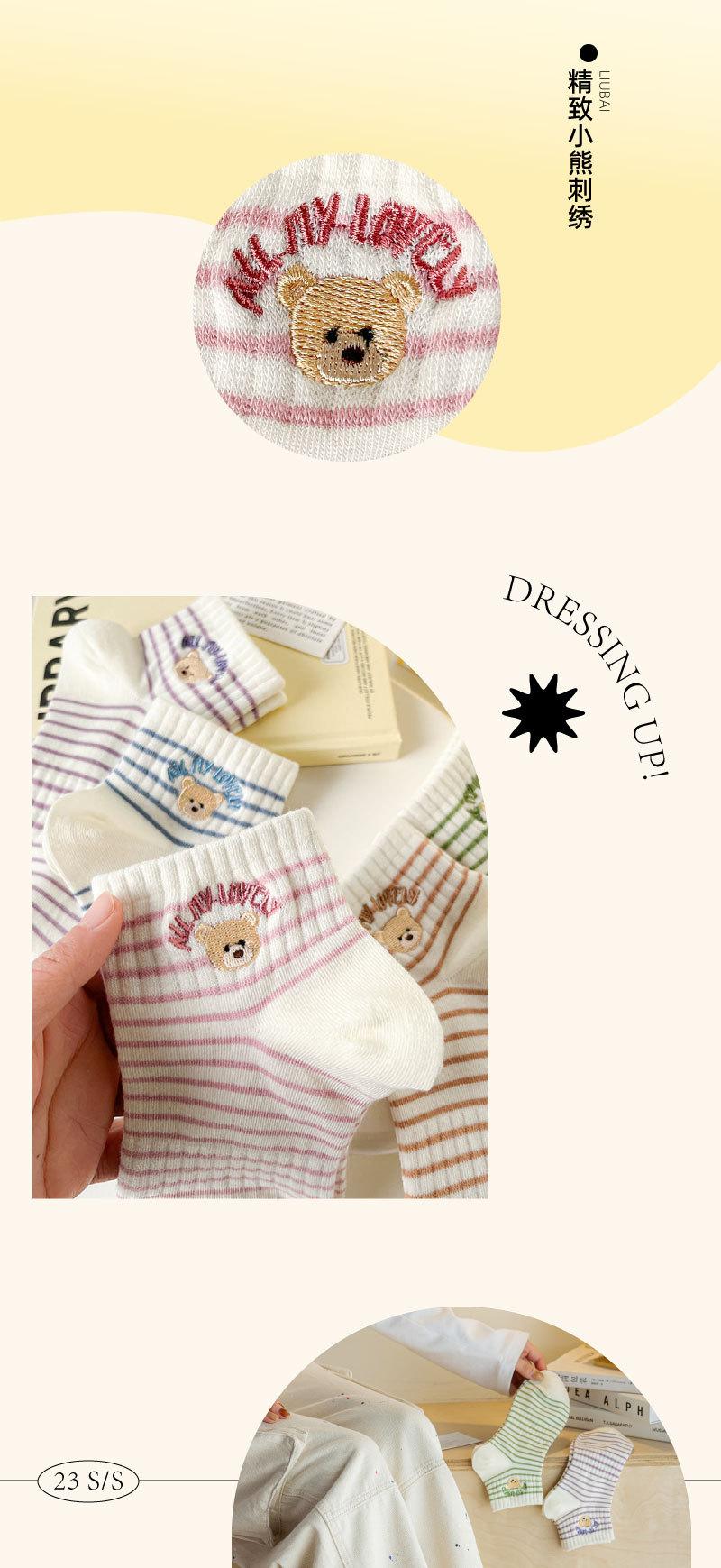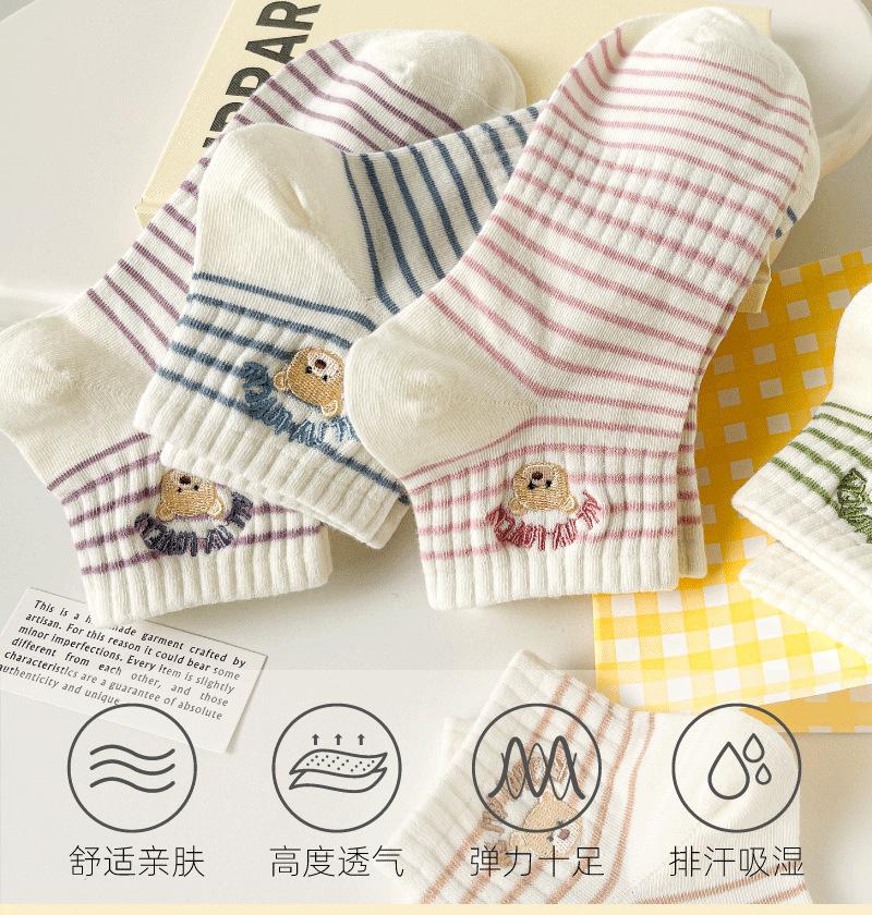 Calcetines de mujer, calcetines de primavera y verano con rayas de oso, estilo preppy, bordados, modernos calcetines japoneses finos deportivos hasta media pantorrilla, otoño