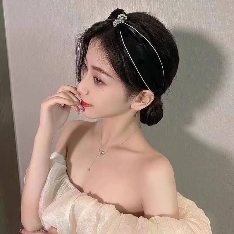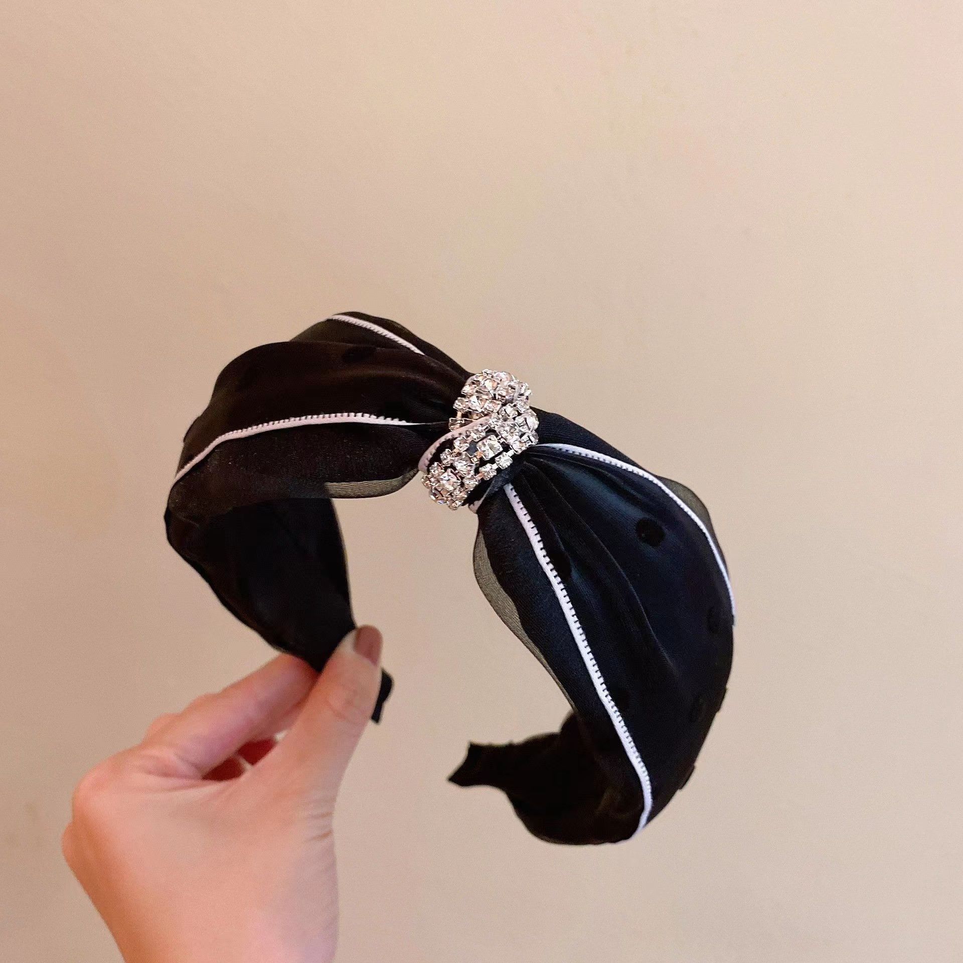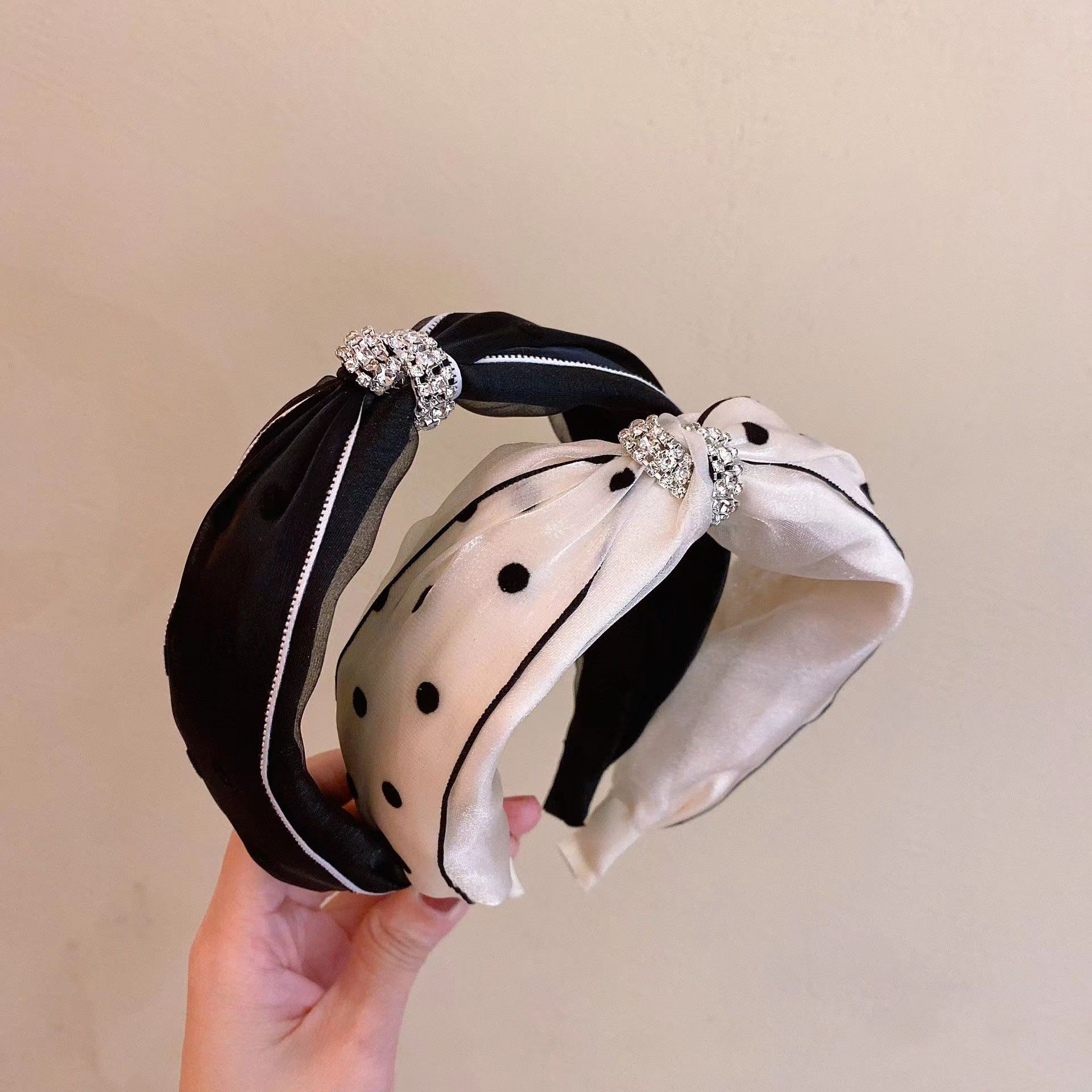 Diadema de Lazo de Pedrería Versátil de Moda Diadema Anudada Ancha de Lunares Elegante Accesorio para el Cabello Simple Estilo Coreano y Japonés