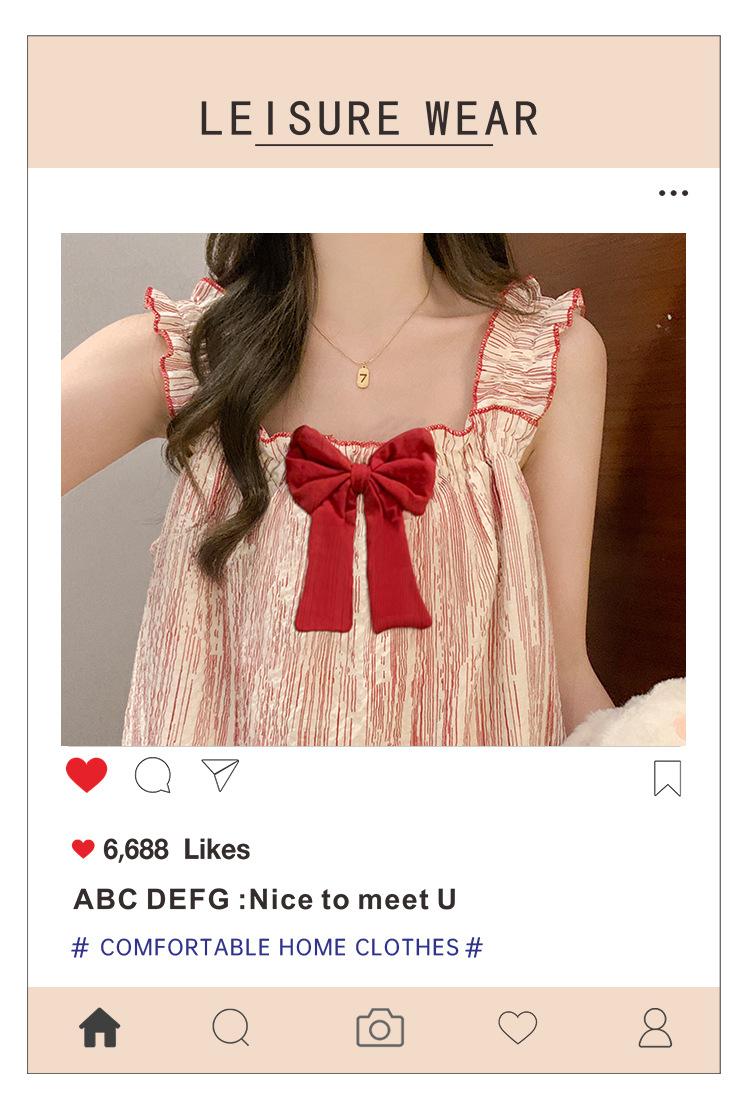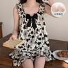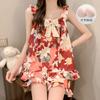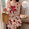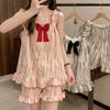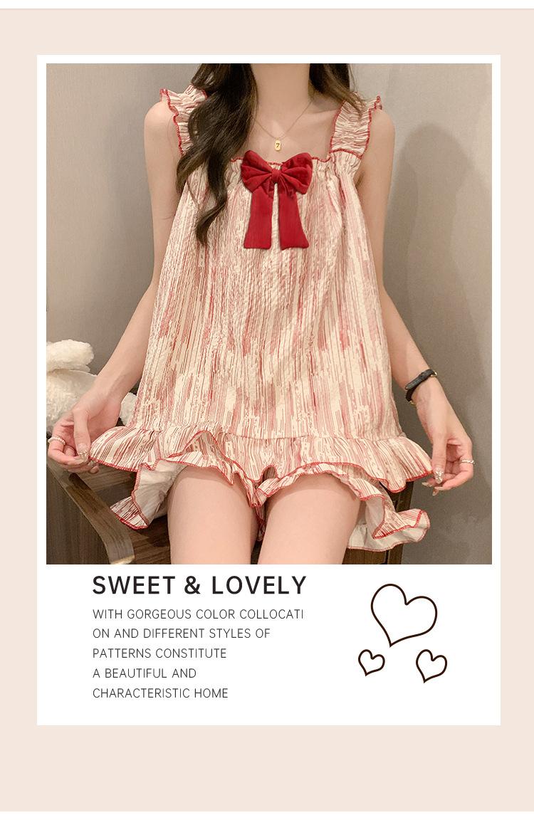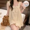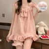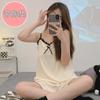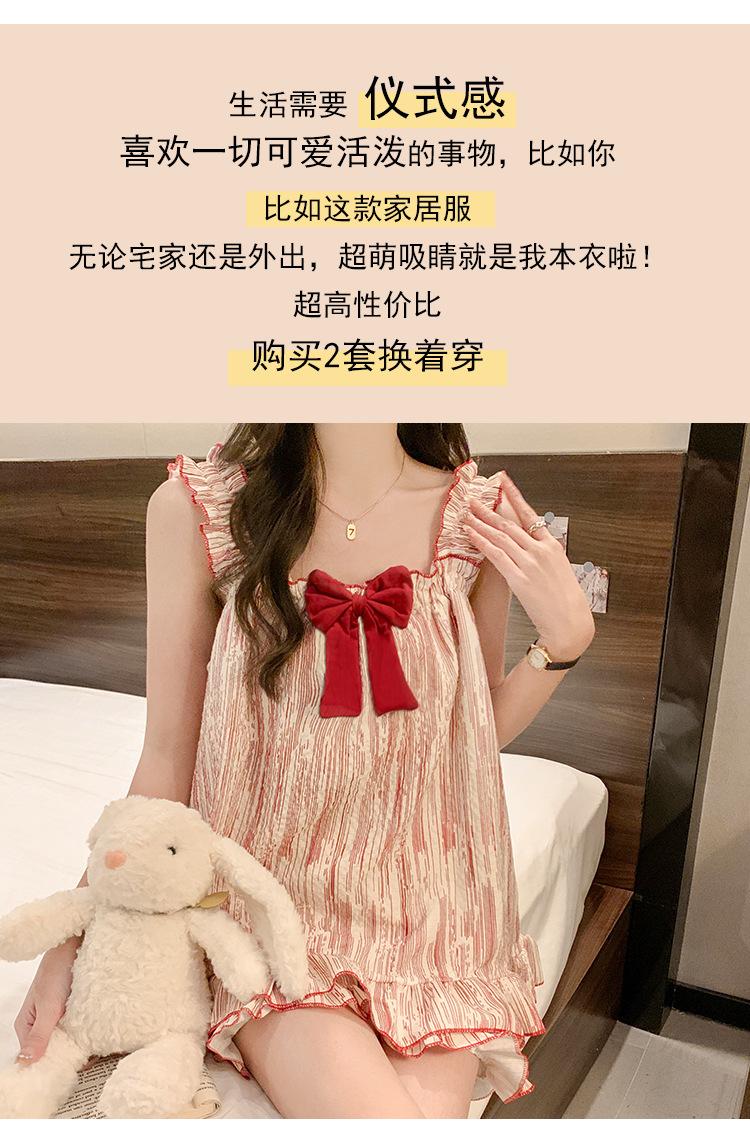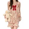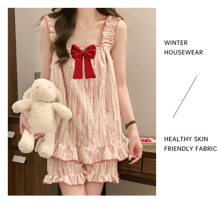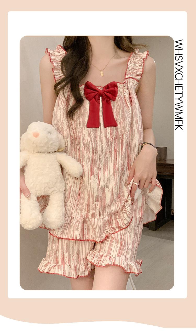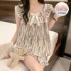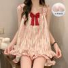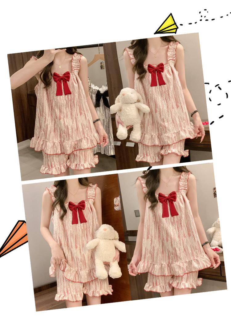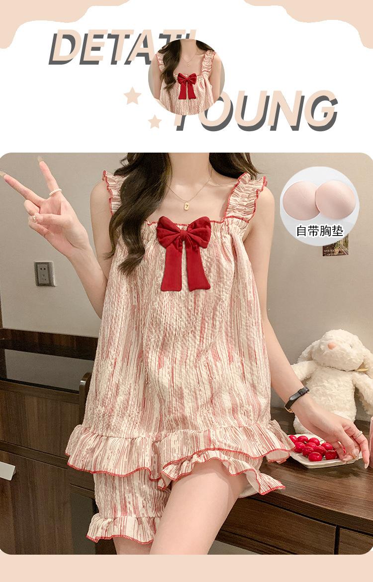 Pijama de verano transfronterizo con almohadilla para el pecho para mujer, nuevo pantalón corto de algodón arrugado, ropa de casa para estudiantes, bonito y dulce.