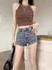 Pantalones cortos vaqueros retro americanos para mujer, verano 2024, nuevos, finos, de cintura alta, elásticos, adelgazantes, súper cortos, para chicas atractivas.
