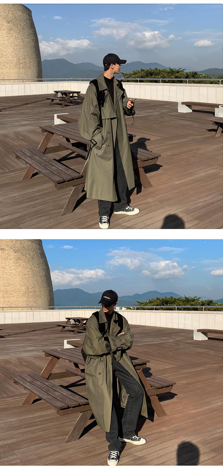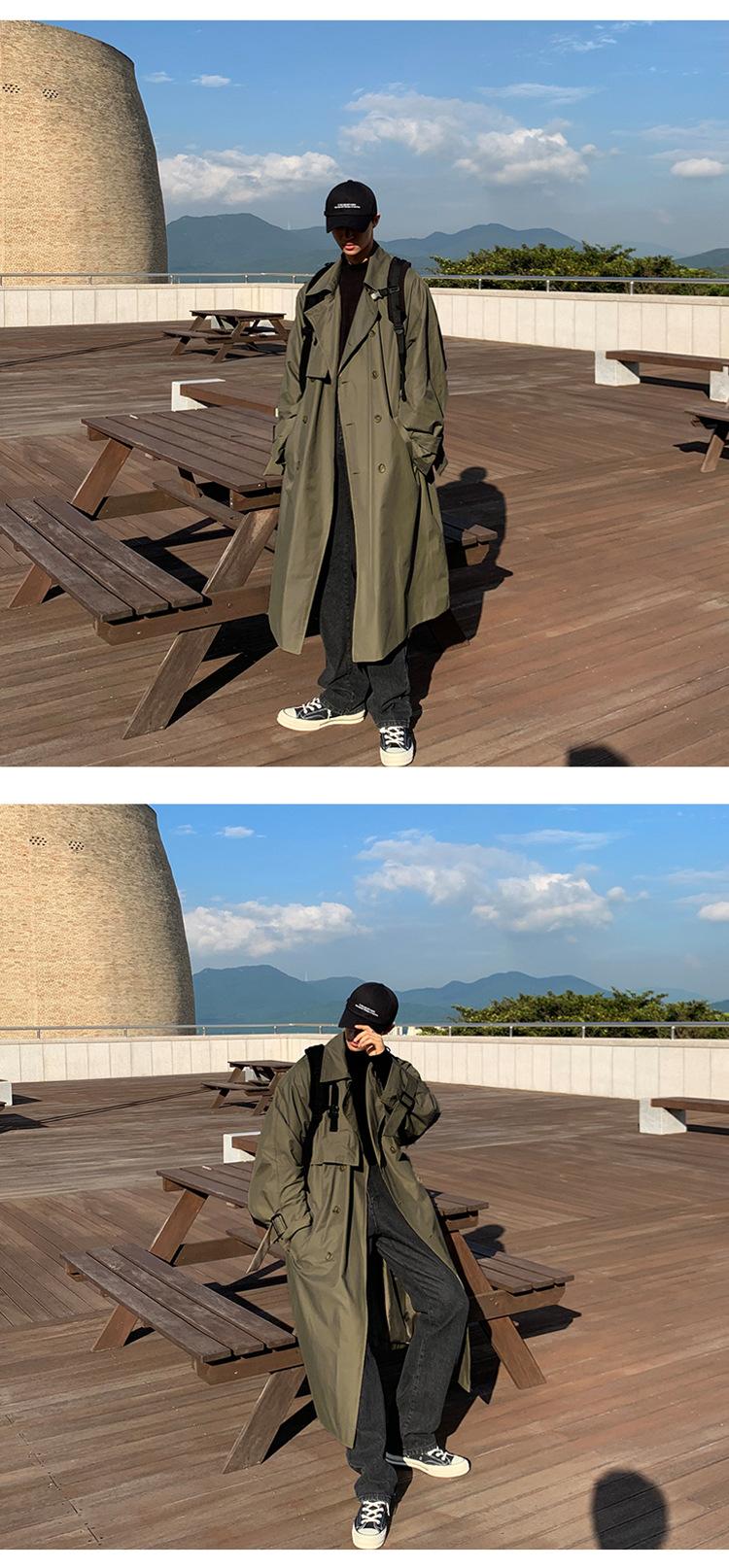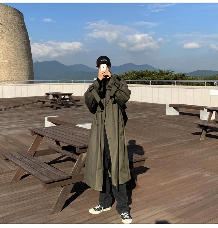 Abrigo trench de largo medio para otoño e invierno 2023, estilo coreano, guapo, por encima de la rodilla, verde militar, abrigo estilo británico, moderno MX911
