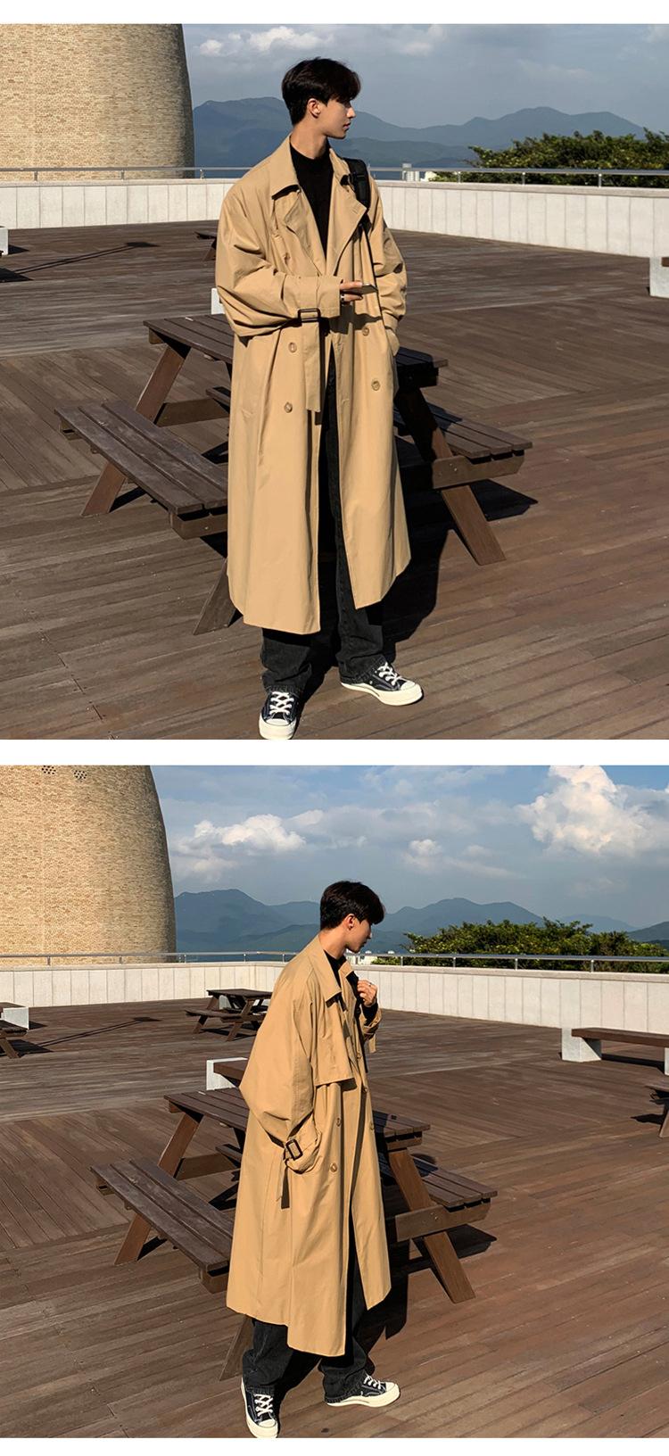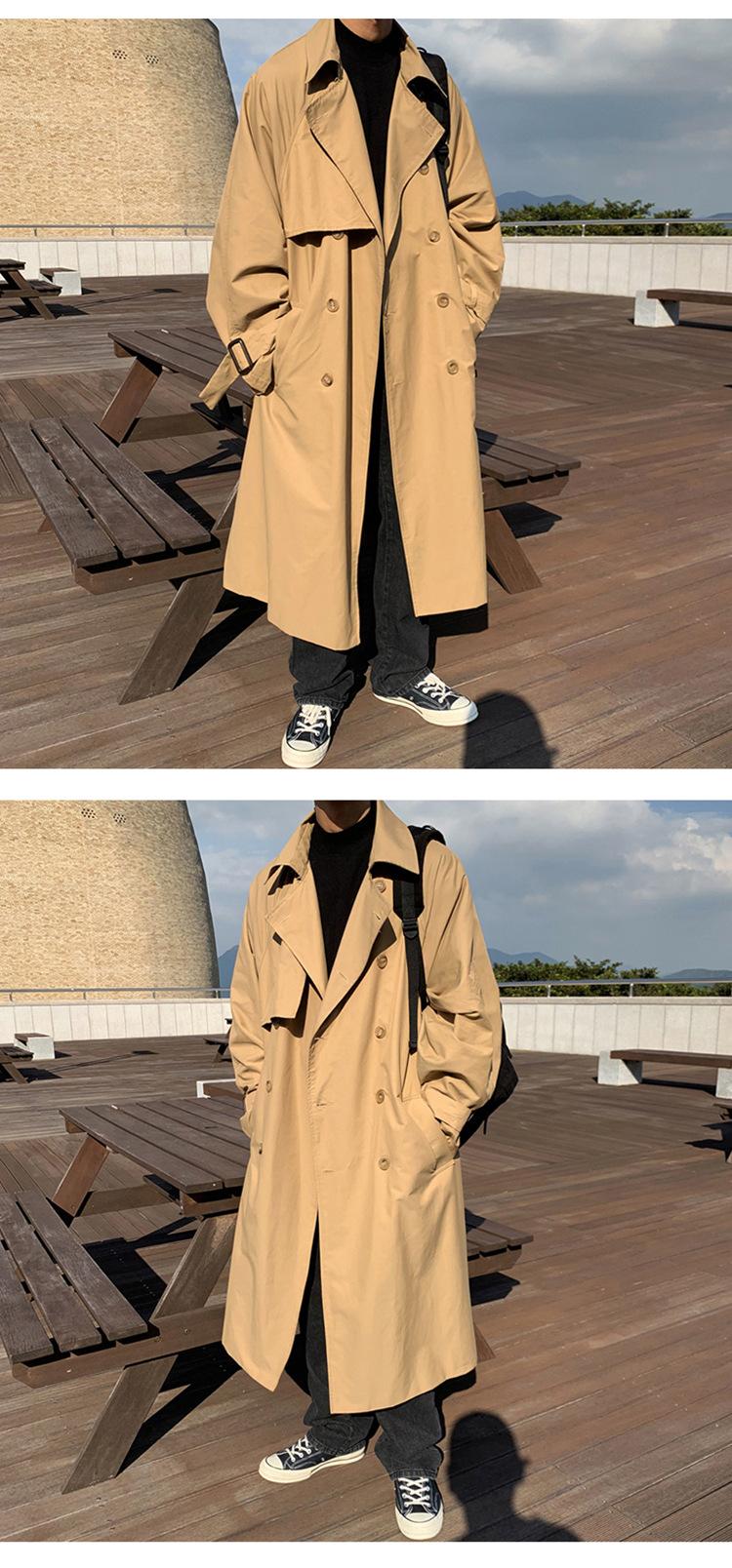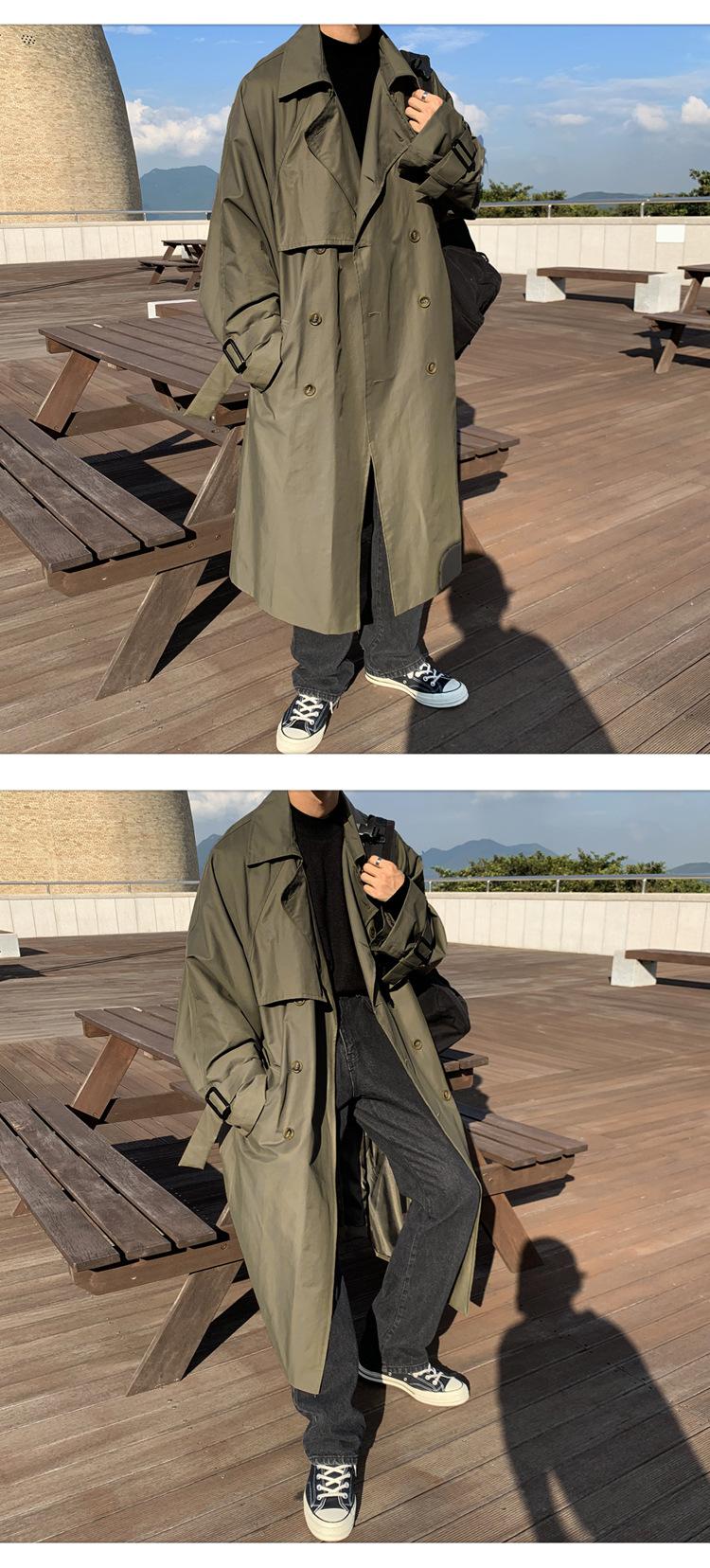 Abrigo trench de largo medio para otoño e invierno 2023, estilo coreano, guapo, por encima de la rodilla, verde militar, abrigo estilo británico, moderno MX911