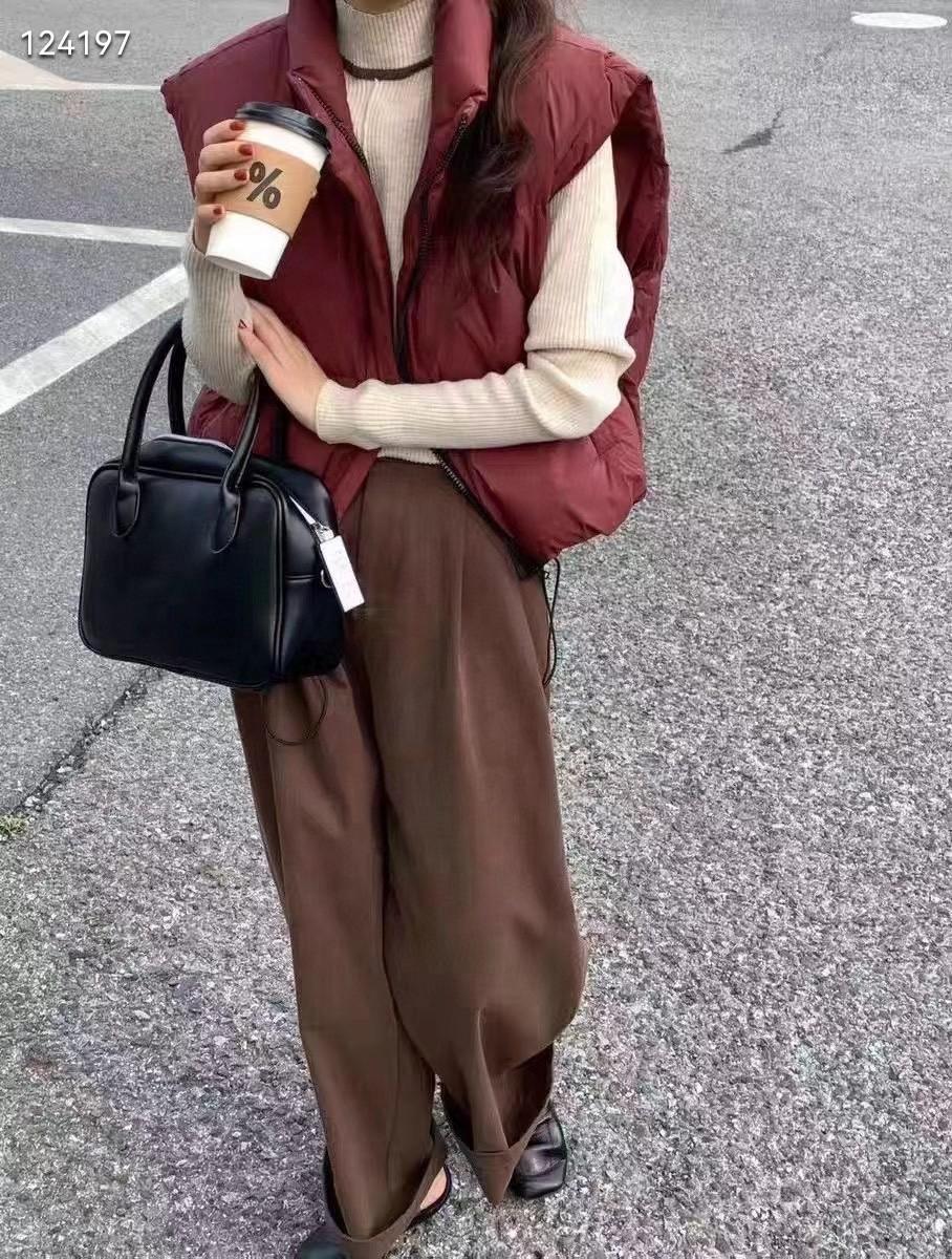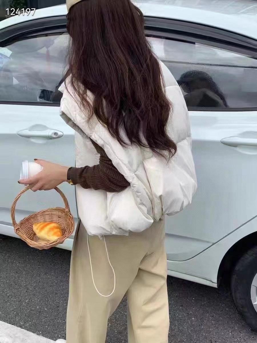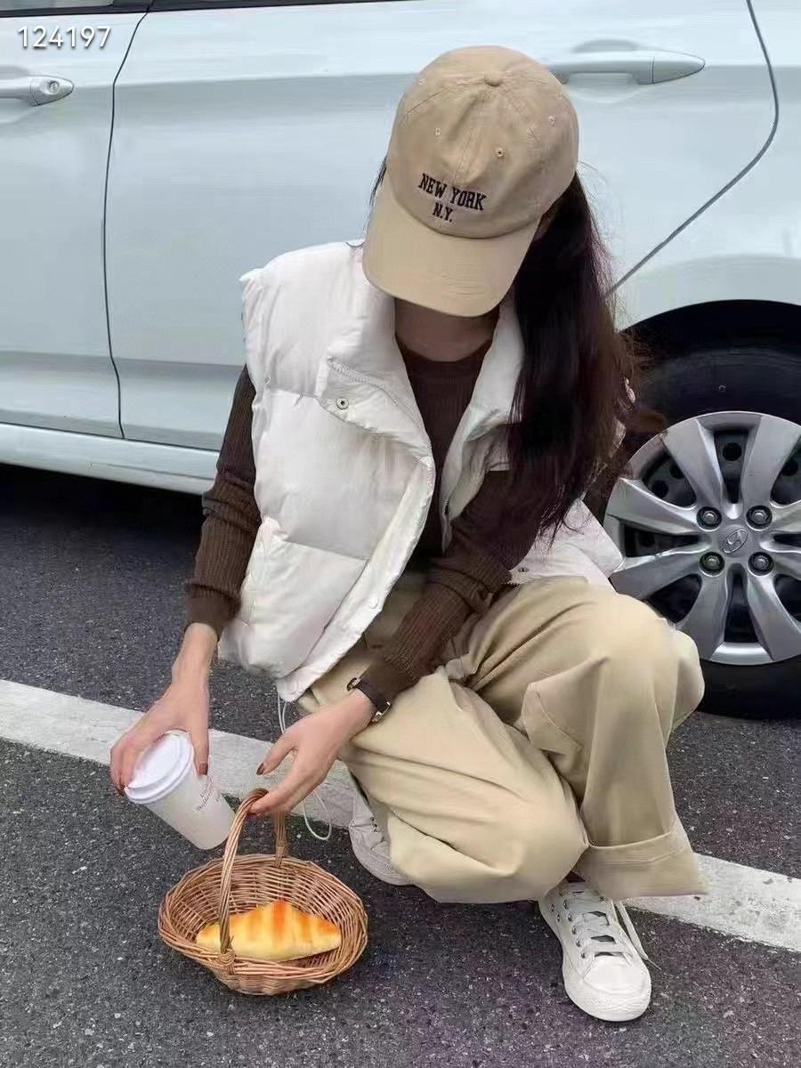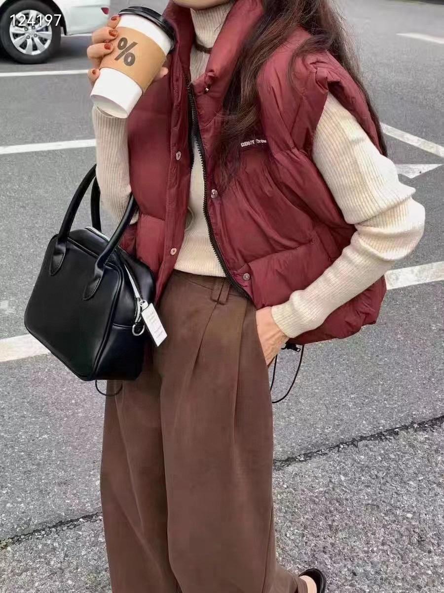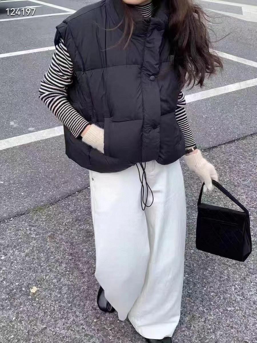 Original Coreano 2025 Otoño e Invierno Nuevo Chaleco Acolchado con Cuello Mao con Letras para Mujer, Corto, Holgado, Casual, Exterior