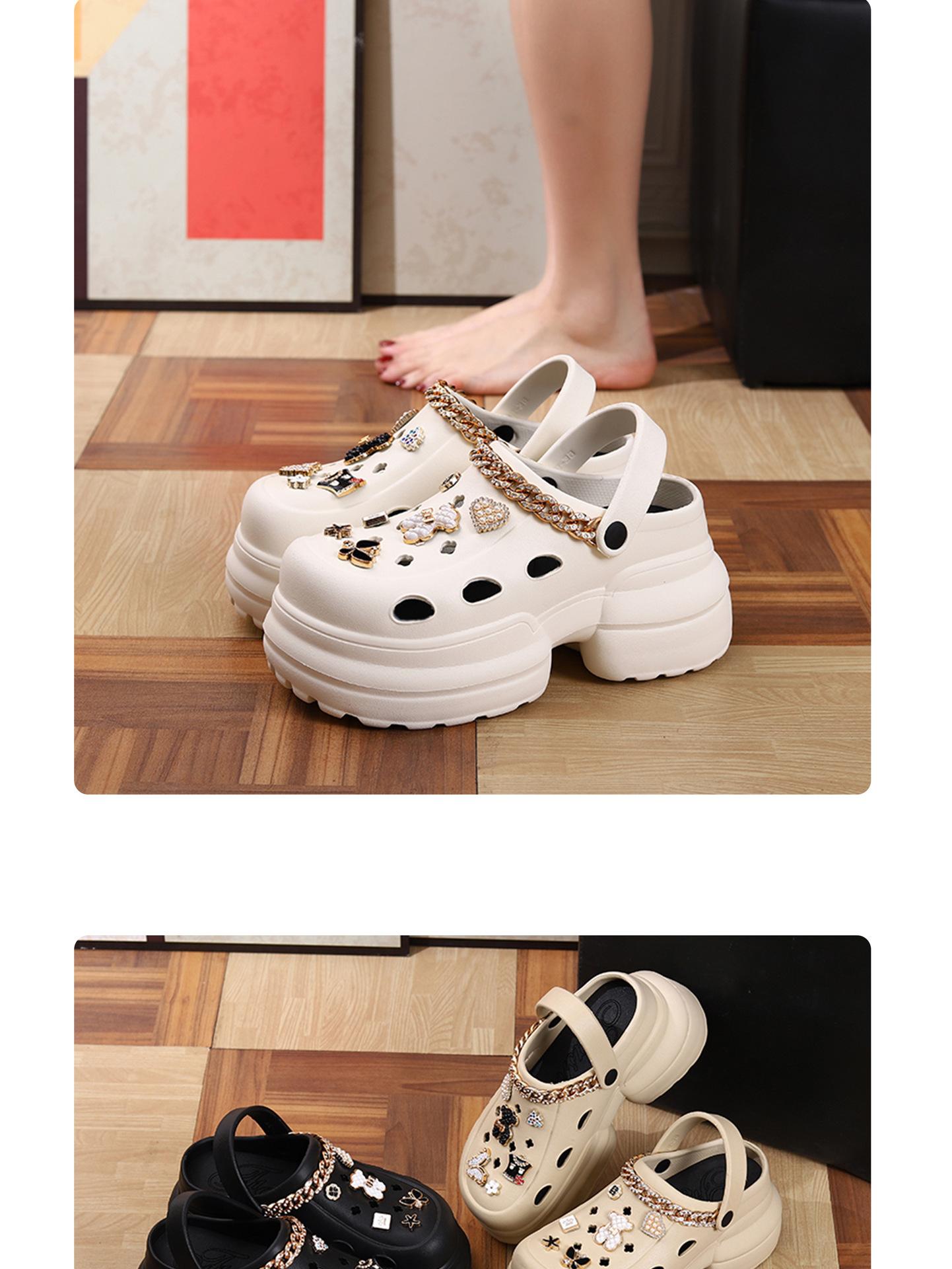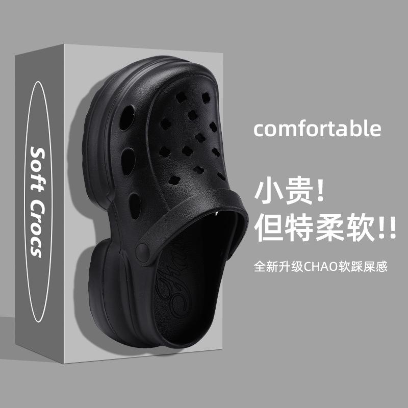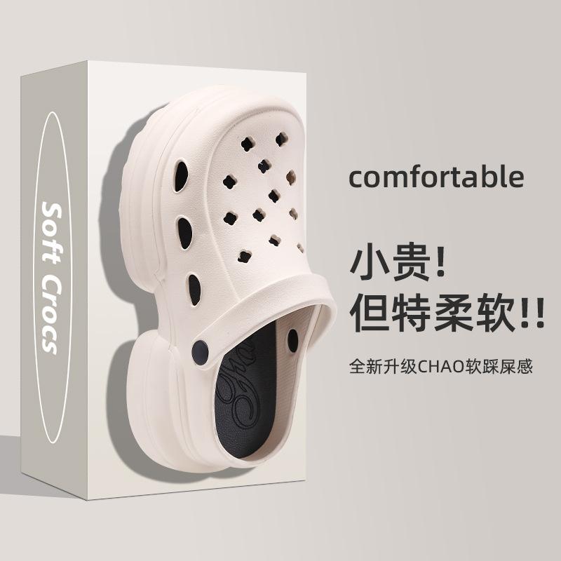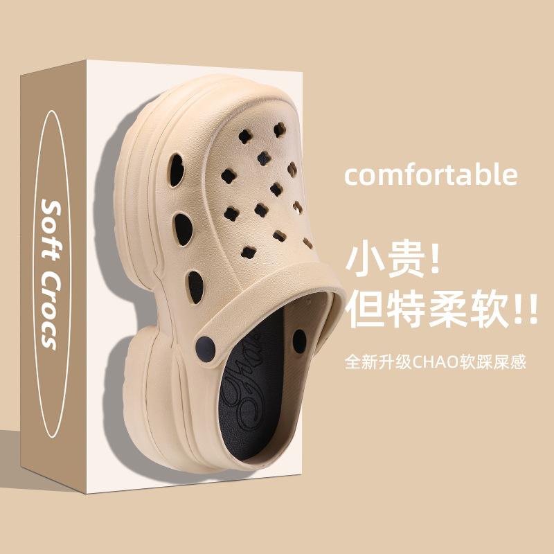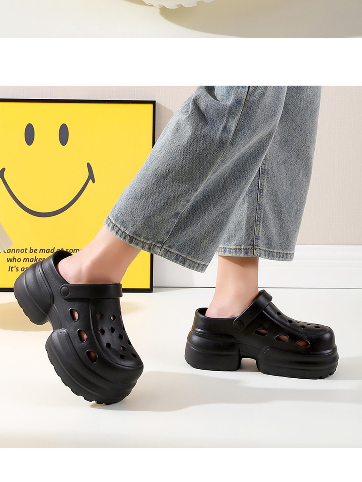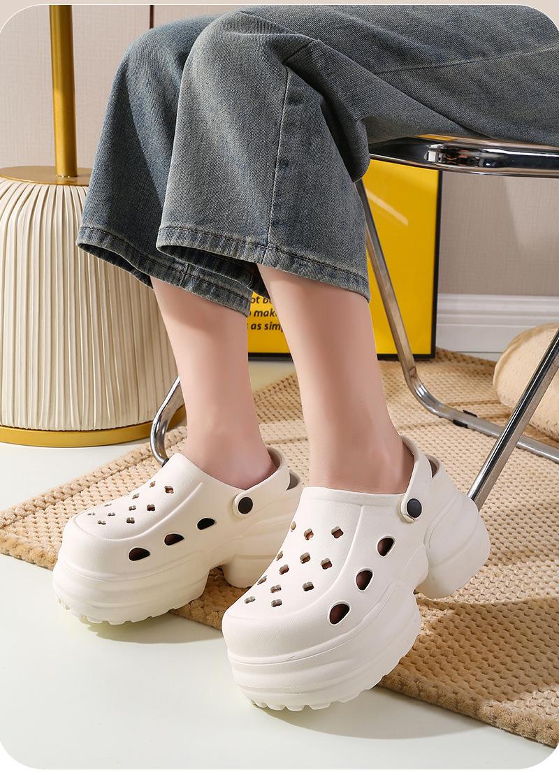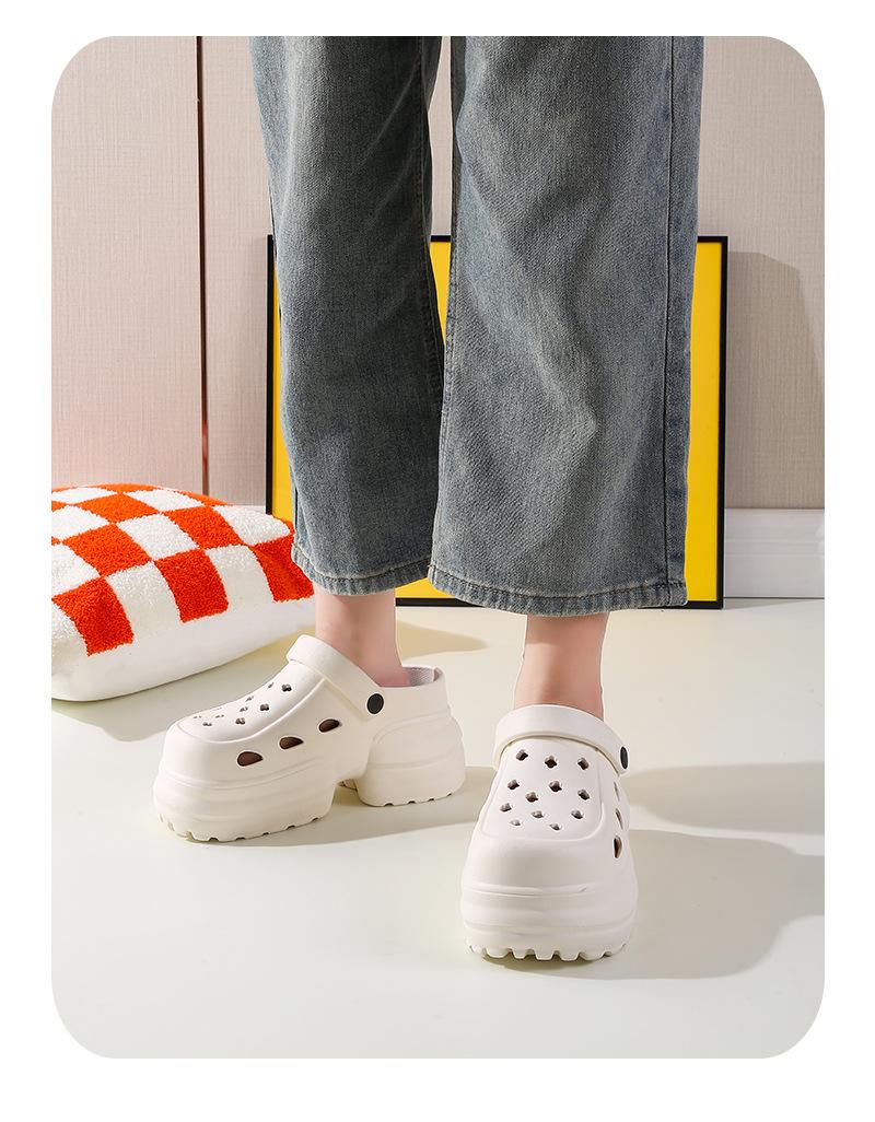 2024 Nueva Moda Ropa Exterior Suela Gruesa Zapatos Cueva Sandalias y Pantuflas de Verano para Playa con Tacón Alto y Punta Cerrada para Mujer Antideslizantes y que Aumentan la Altura