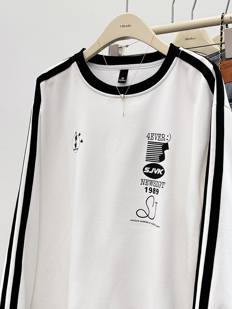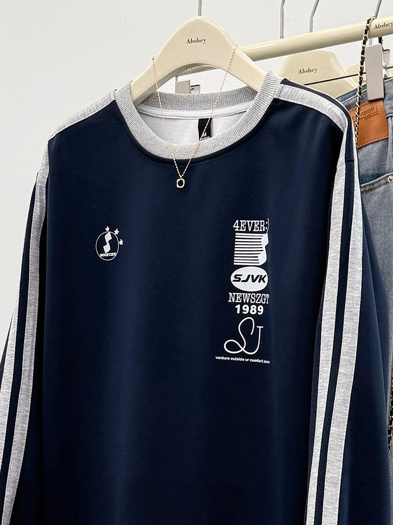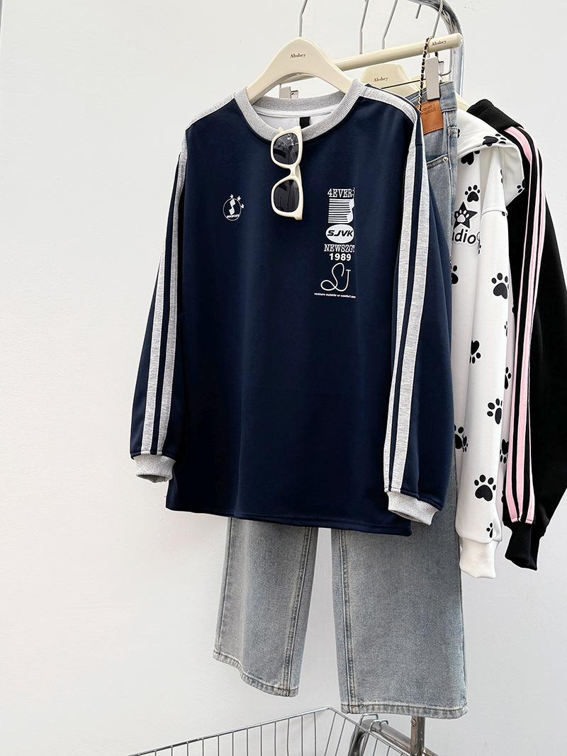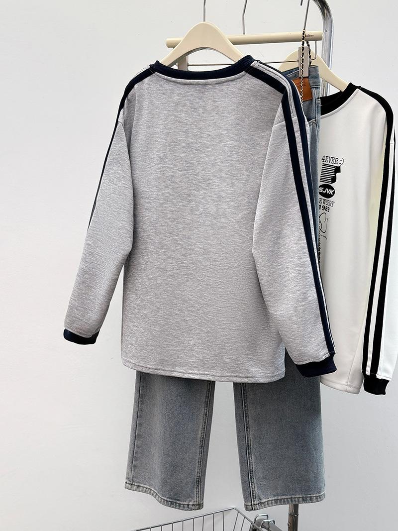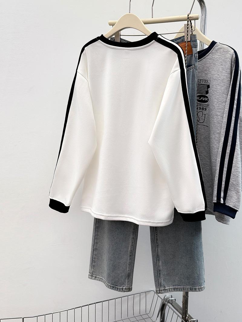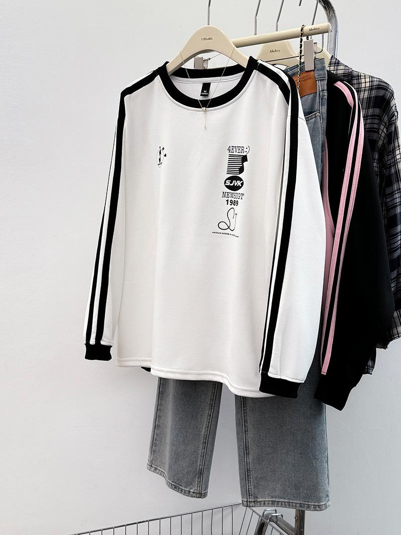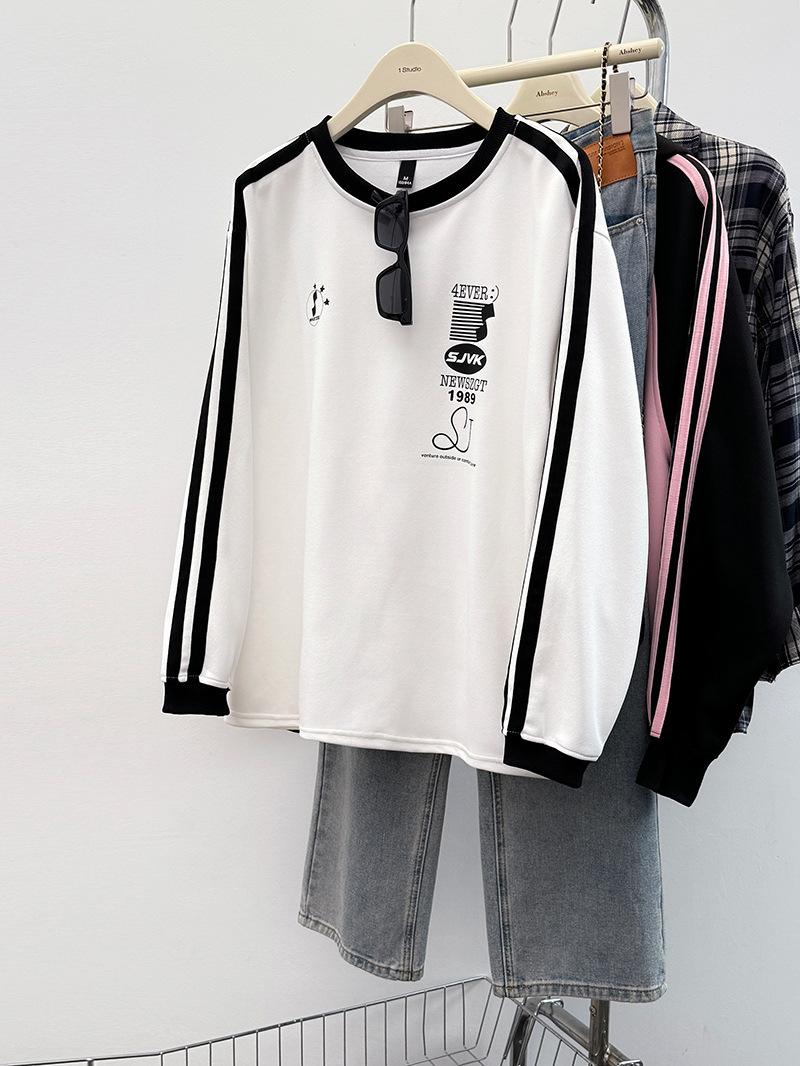 Sudadera de color contrastante para hombre y mujer, para primavera y otoño 2024, fina, de largo medio, holgada, con cuello redondo a rayas, estilo coreano.