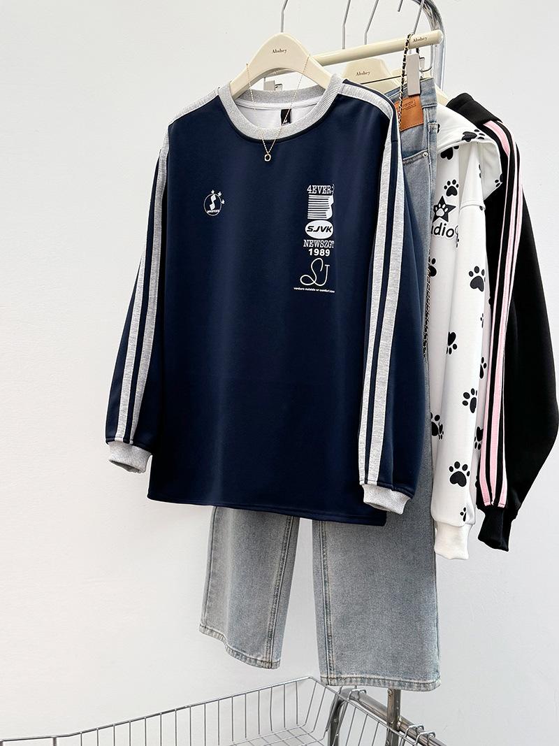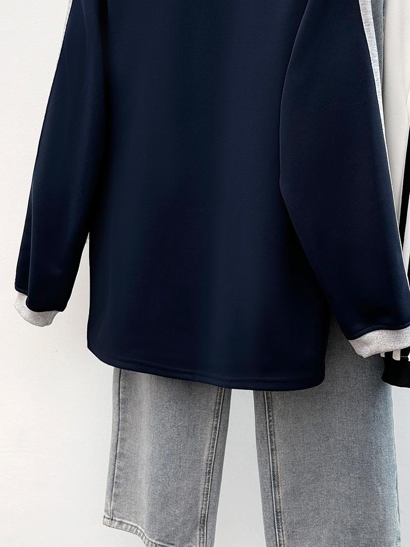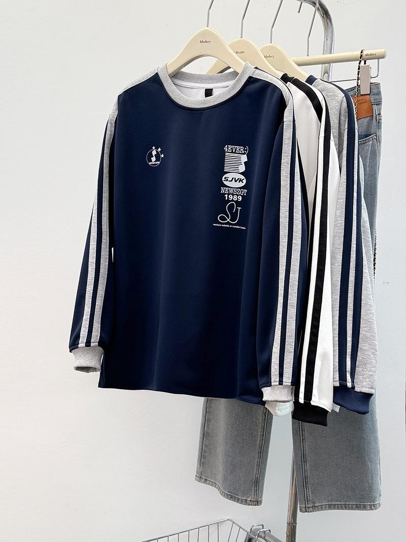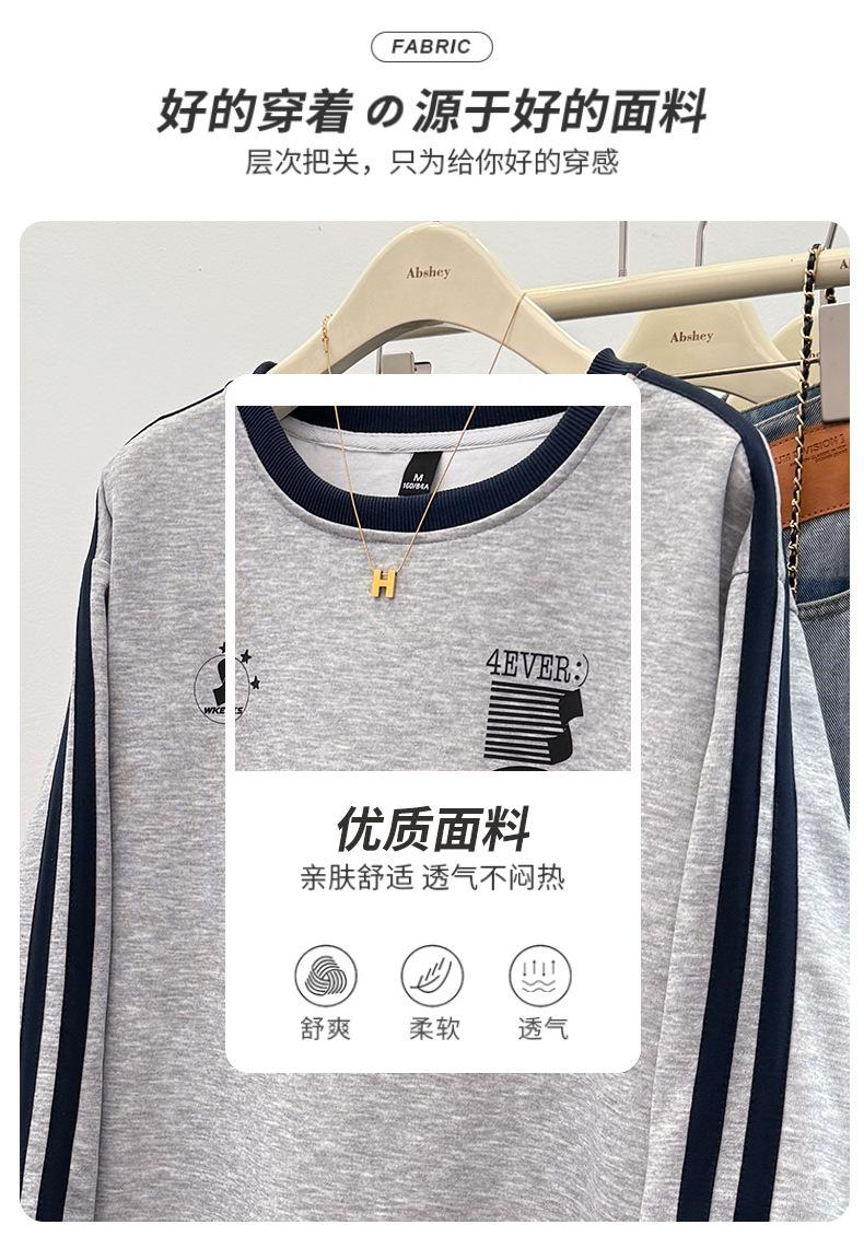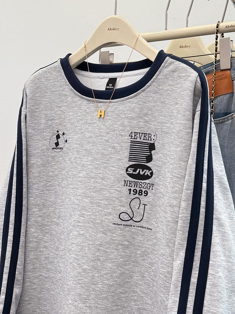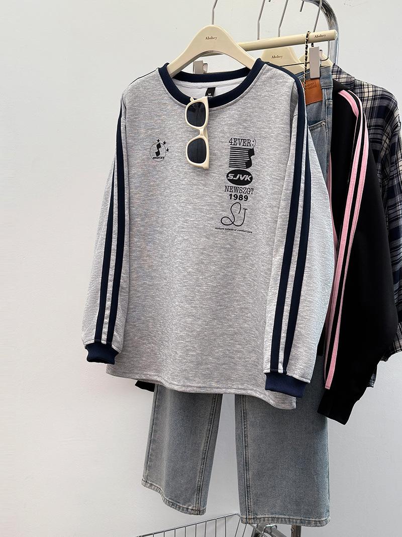 Sudadera de color contrastante para hombre y mujer, para primavera y otoño 2024, fina, de largo medio, holgada, con cuello redondo a rayas, estilo coreano.