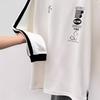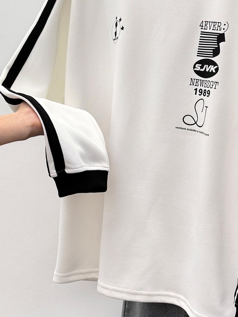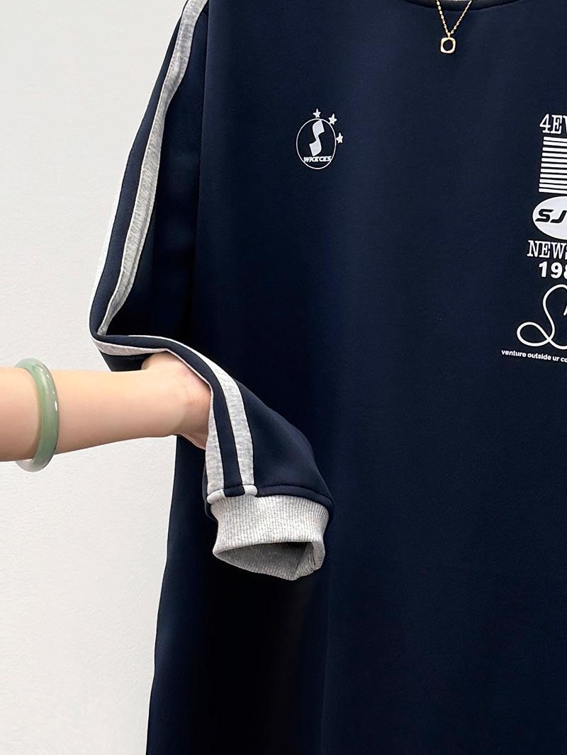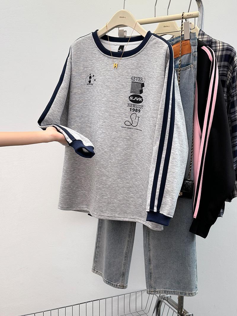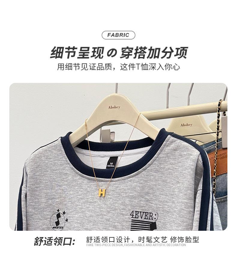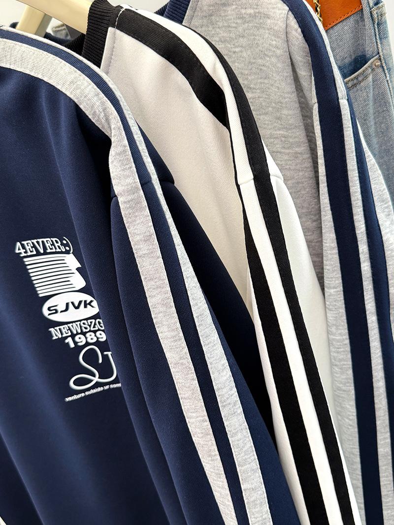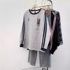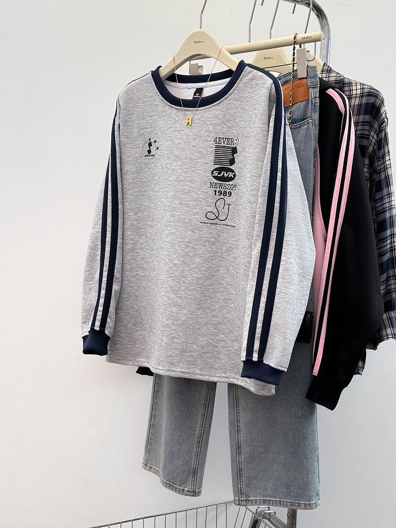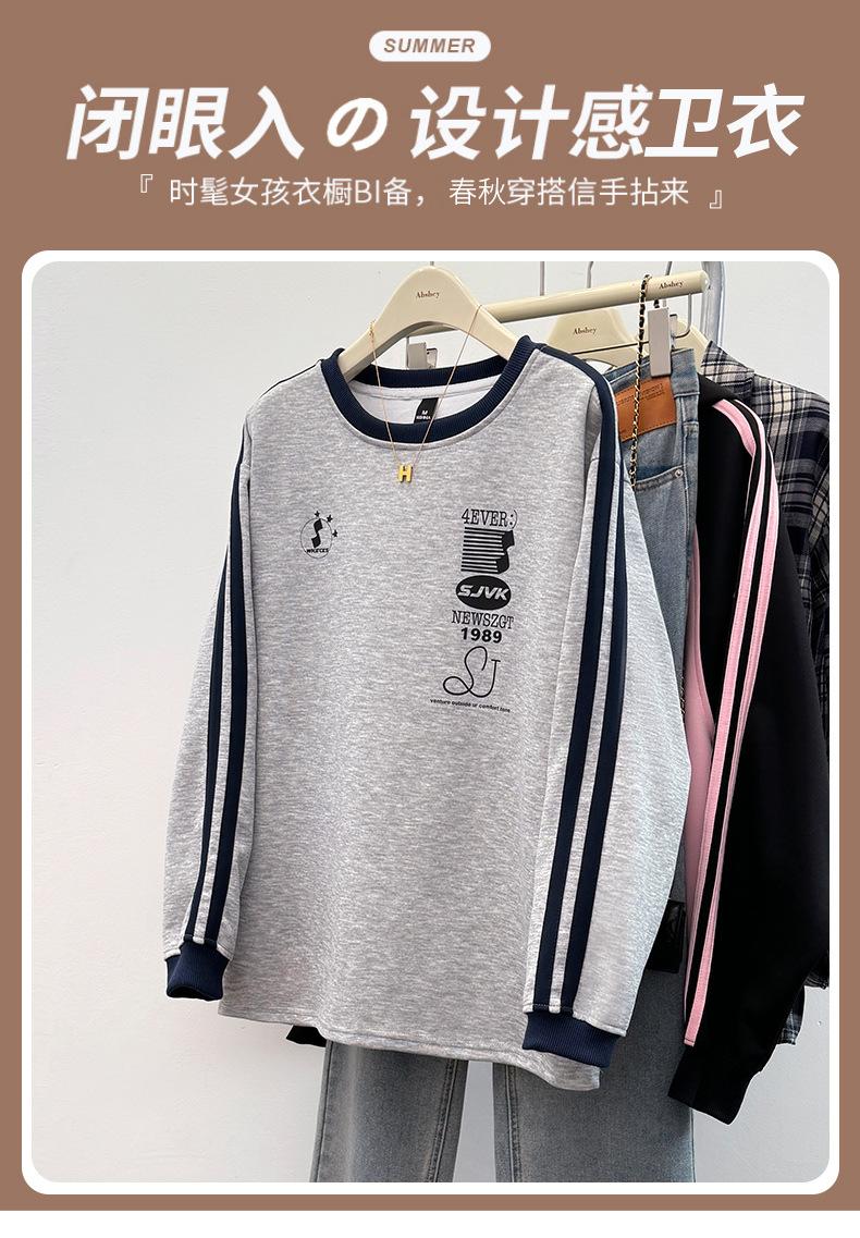 Sudadera de color contrastante para hombre y mujer, para primavera y otoño 2024, fina, de largo medio, holgada, con cuello redondo a rayas, estilo coreano.