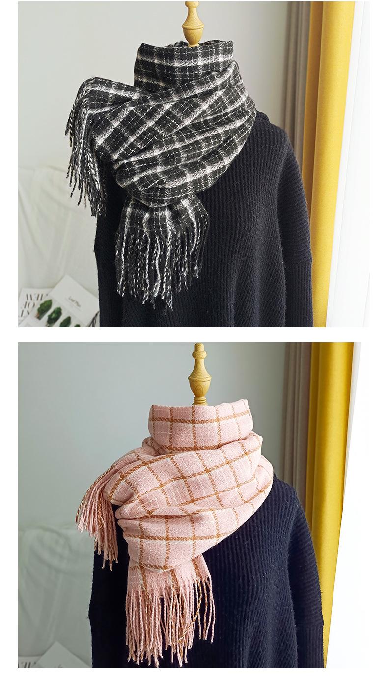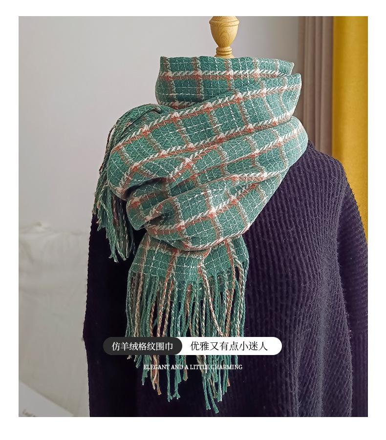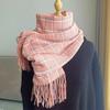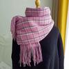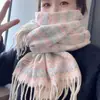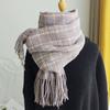 Bufanda a cuadros para mujer, otoño e invierno 2024, estilo coreano, cachemira, borlas, chal para estudiantes, resistente al frío y cálido para el cuello.