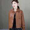 Chaqueta de cuero para mujer, moda de otoño, chaqueta de cuero PU coreana con botones ajustados, venta al por mayor en vivo