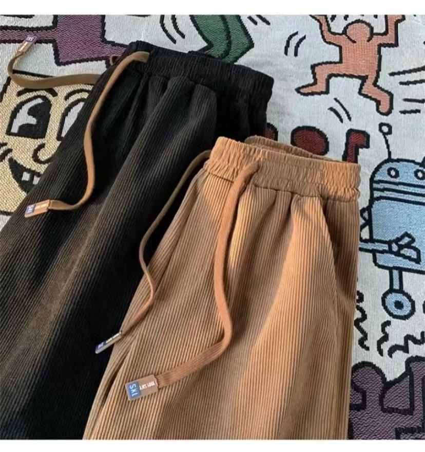 Pantalones Deportivos de Moda de Marca Textura Melocotón Seda de Hielo para Hombre Verano Delgados Rectos Pierna Ancha High Street Drapeados Casuales