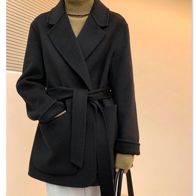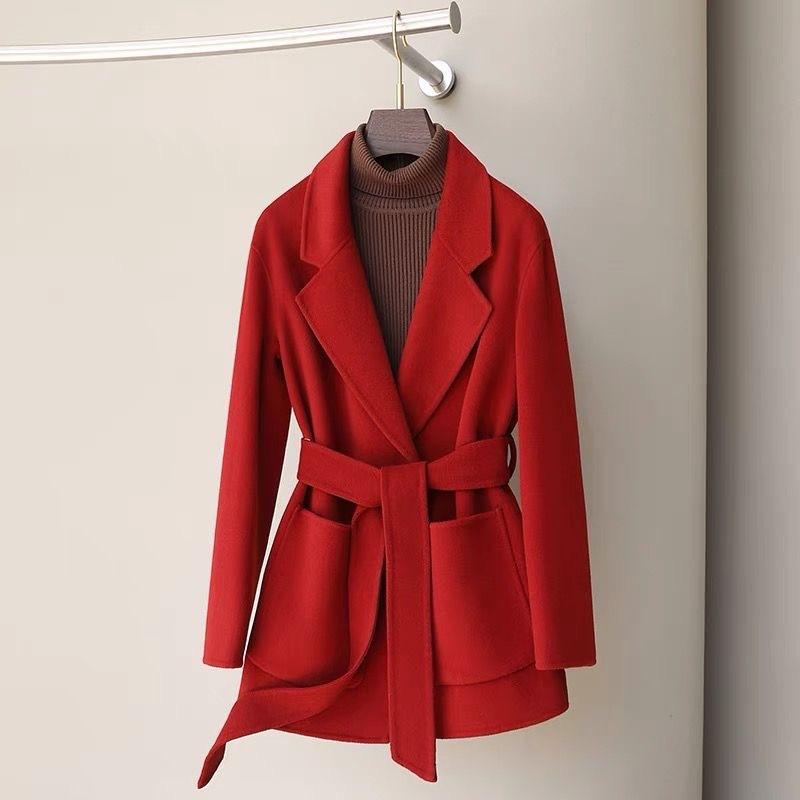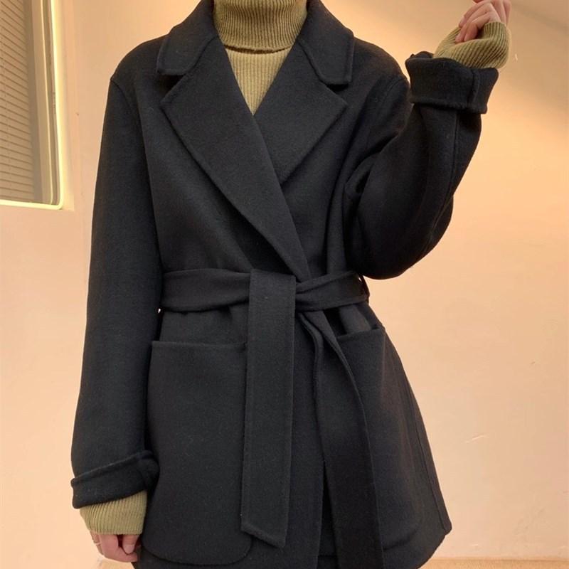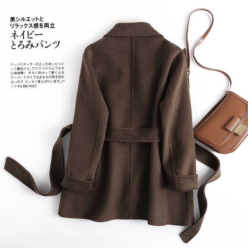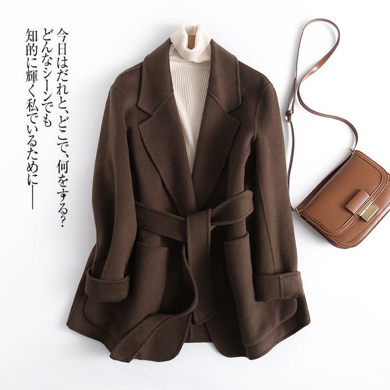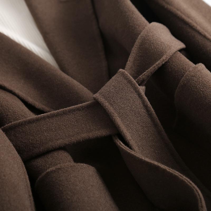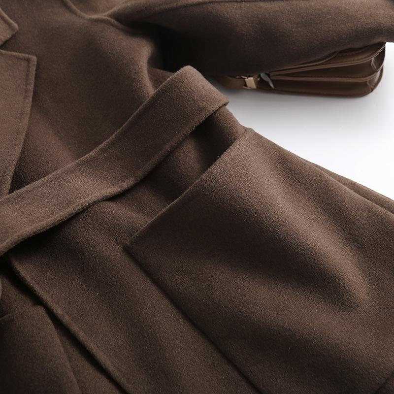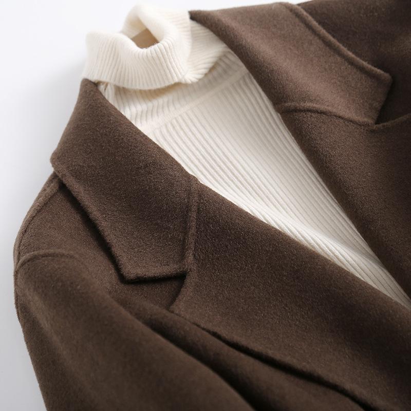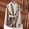 Otoño e Invierno 2025 Nueva Ropa Exterior de Lana de Doble Cara para Mujer Bata Clásica Corta para Mujer Ropa Exterior de Lana de Longitud Media para Mujer