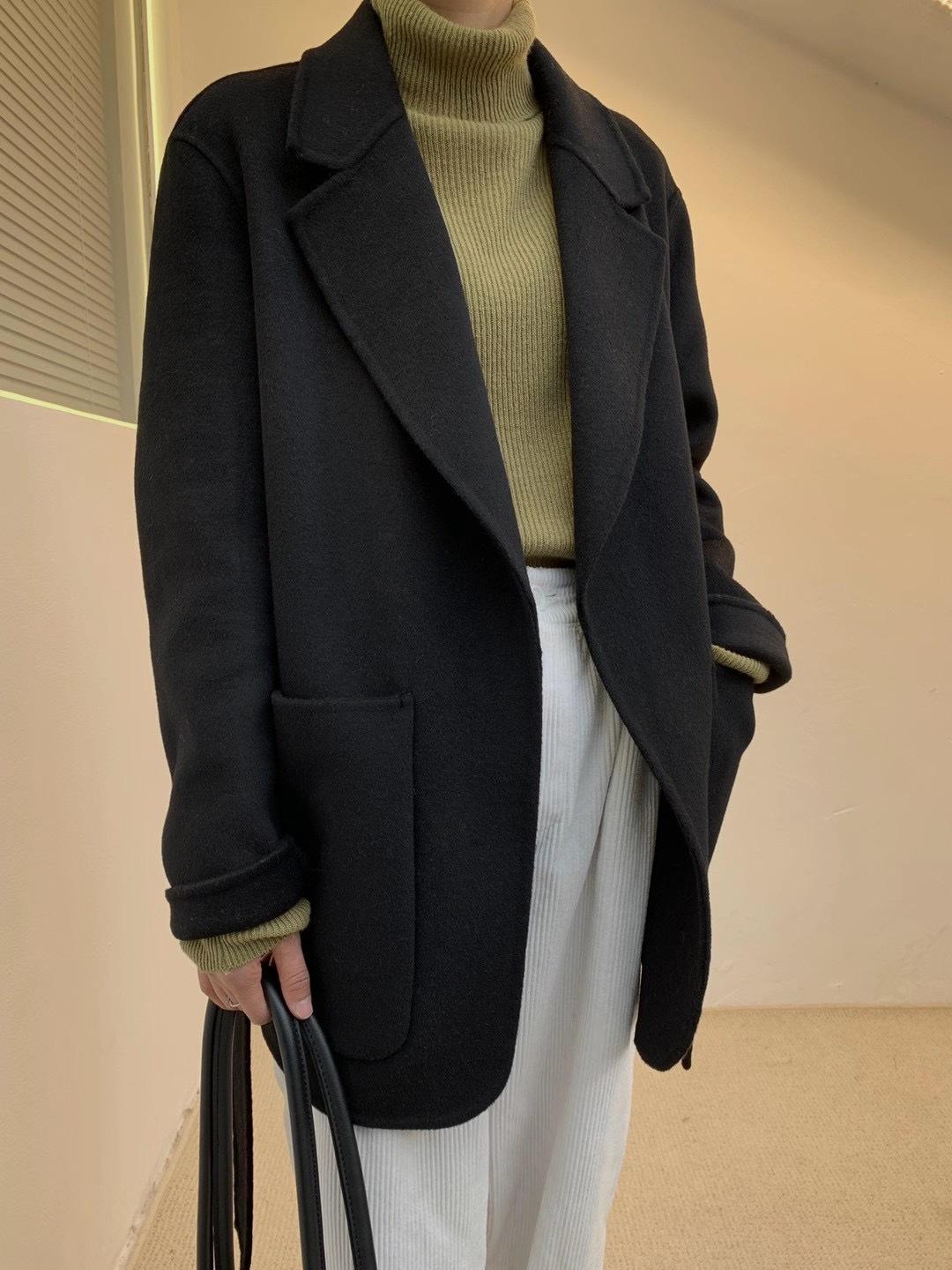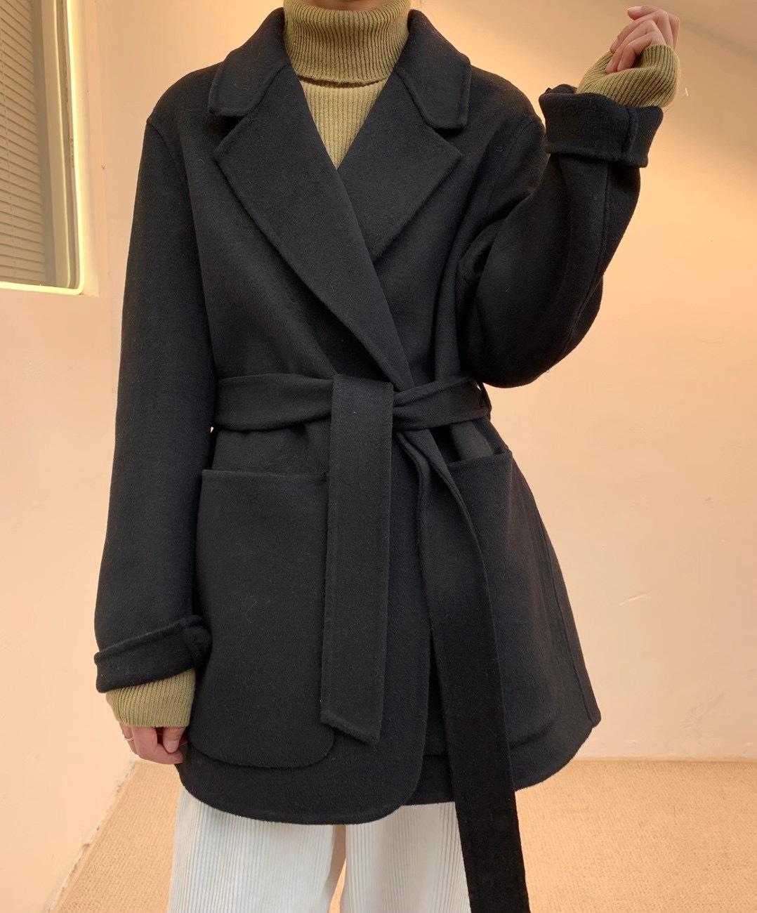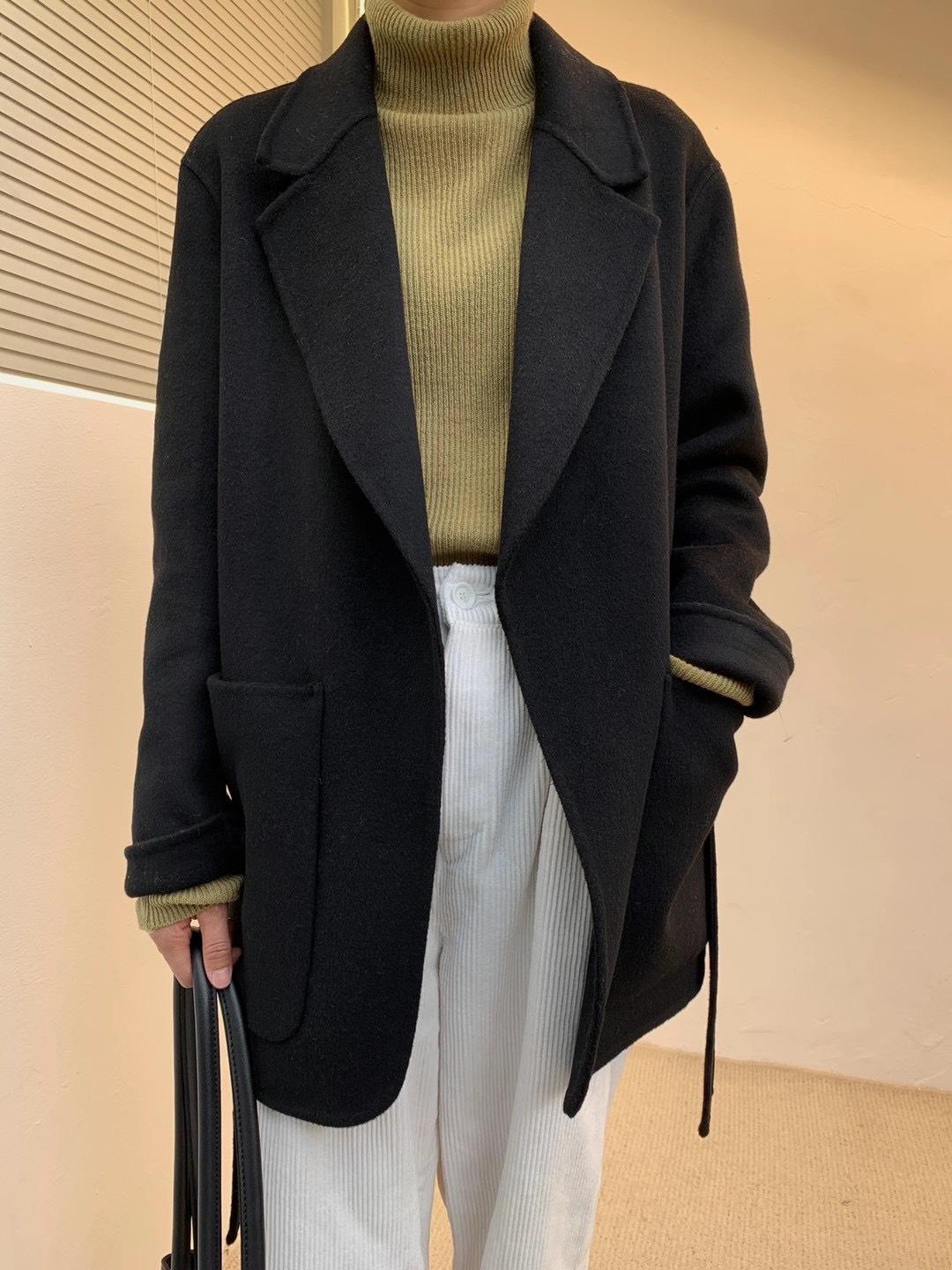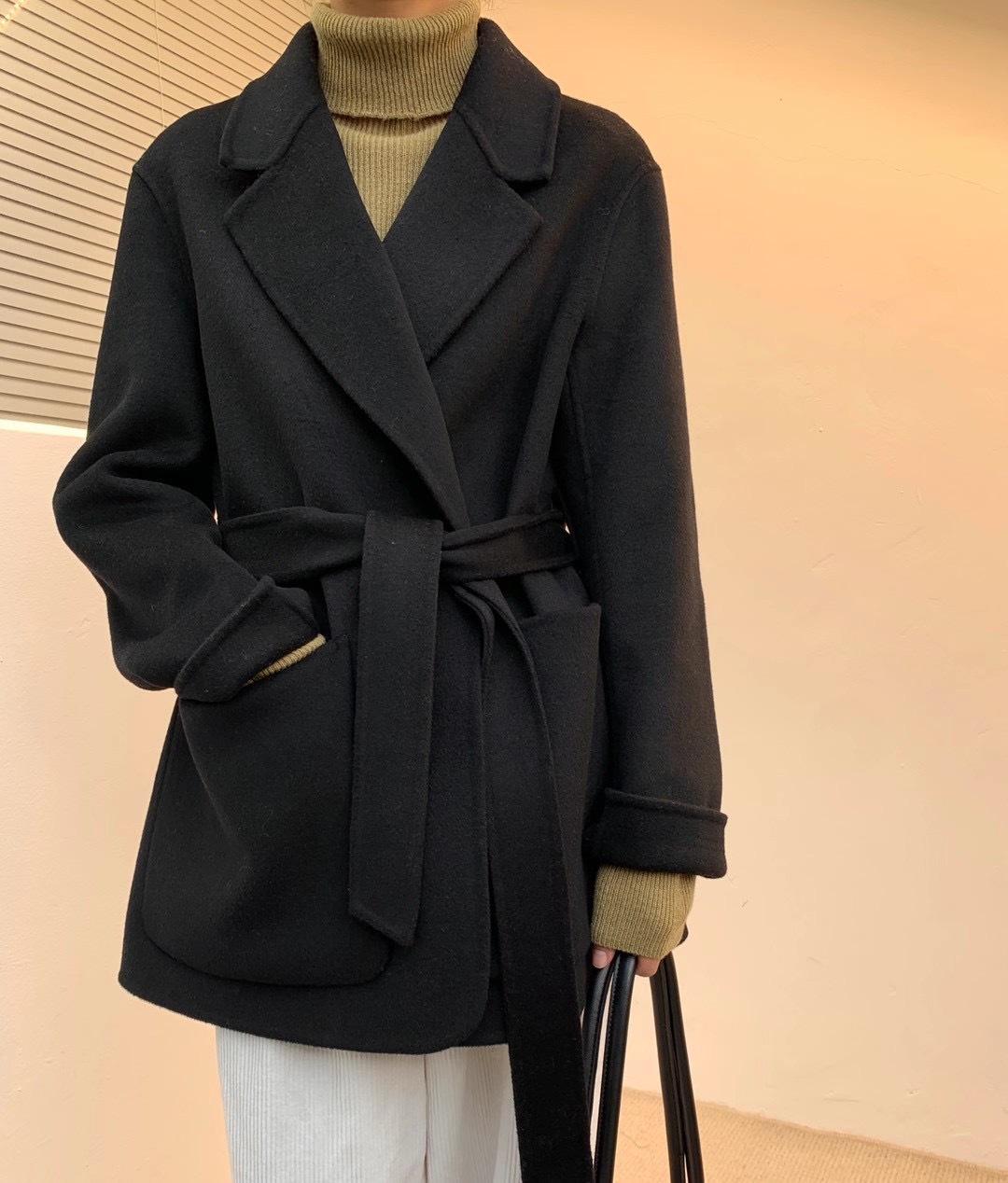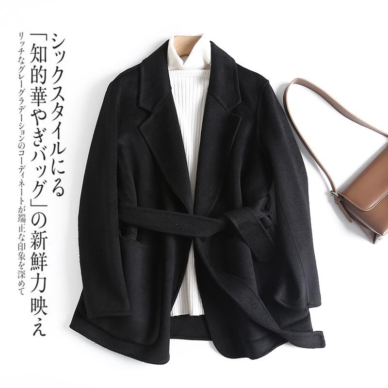 Otoño e Invierno 2025 Nueva Ropa Exterior de Lana de Doble Cara para Mujer Bata Clásica Corta para Mujer Ropa Exterior de Lana de Longitud Media para Mujer