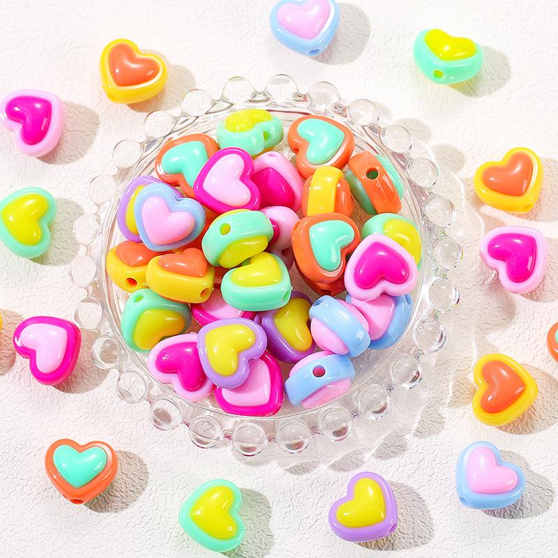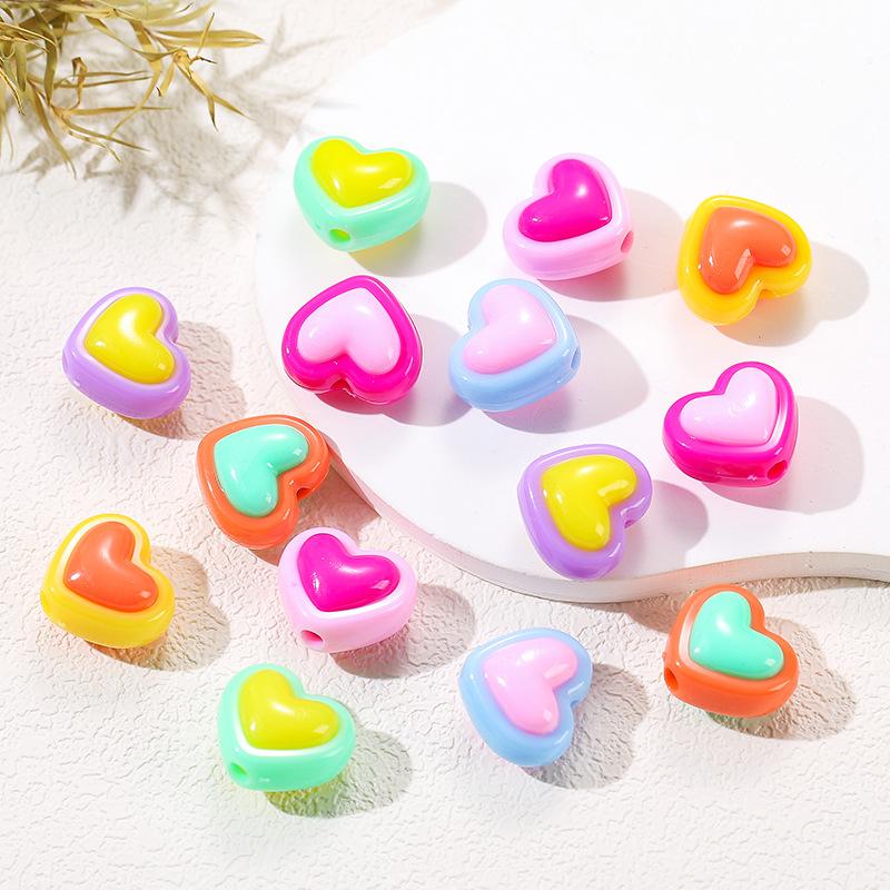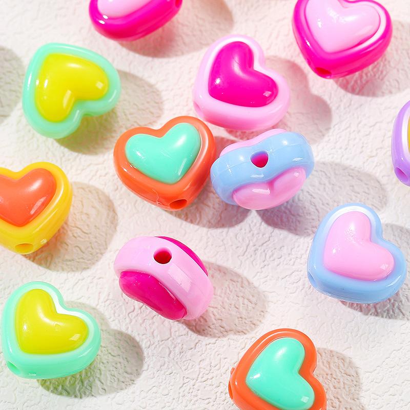 Cuentas acrílicas de amor de color real, collar de cuentas artesanales, accesorios de joyería, cuentas de color caramelo, cuentas de melocotón de doble color