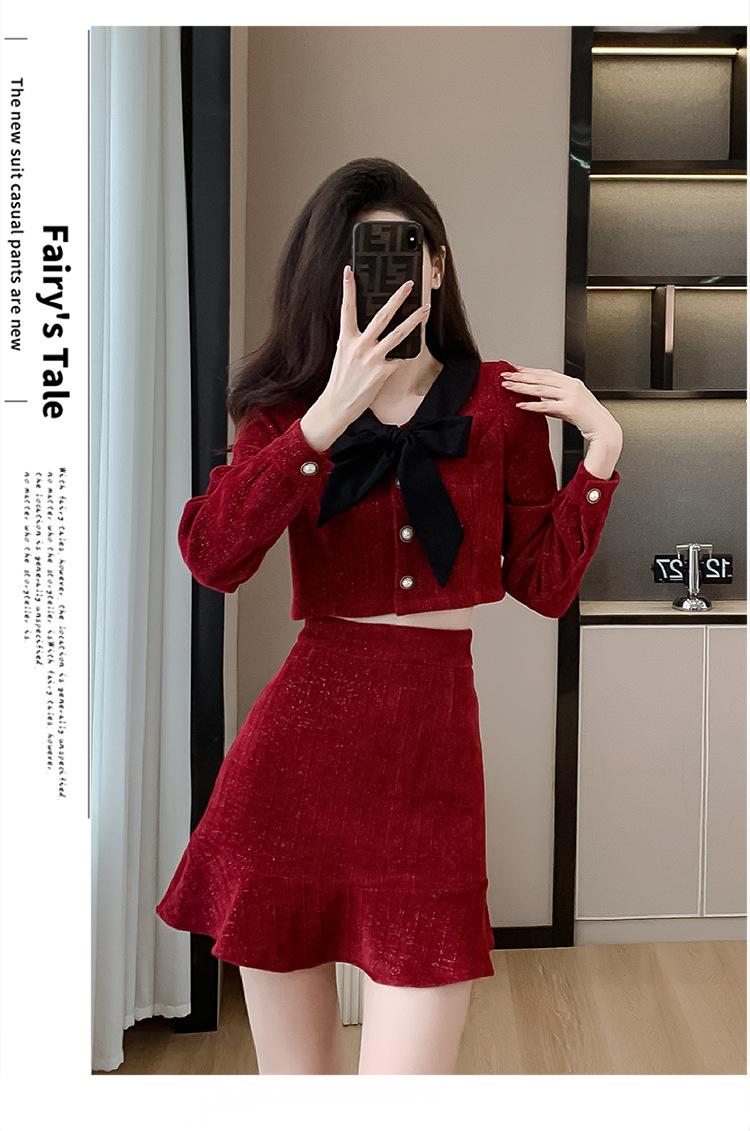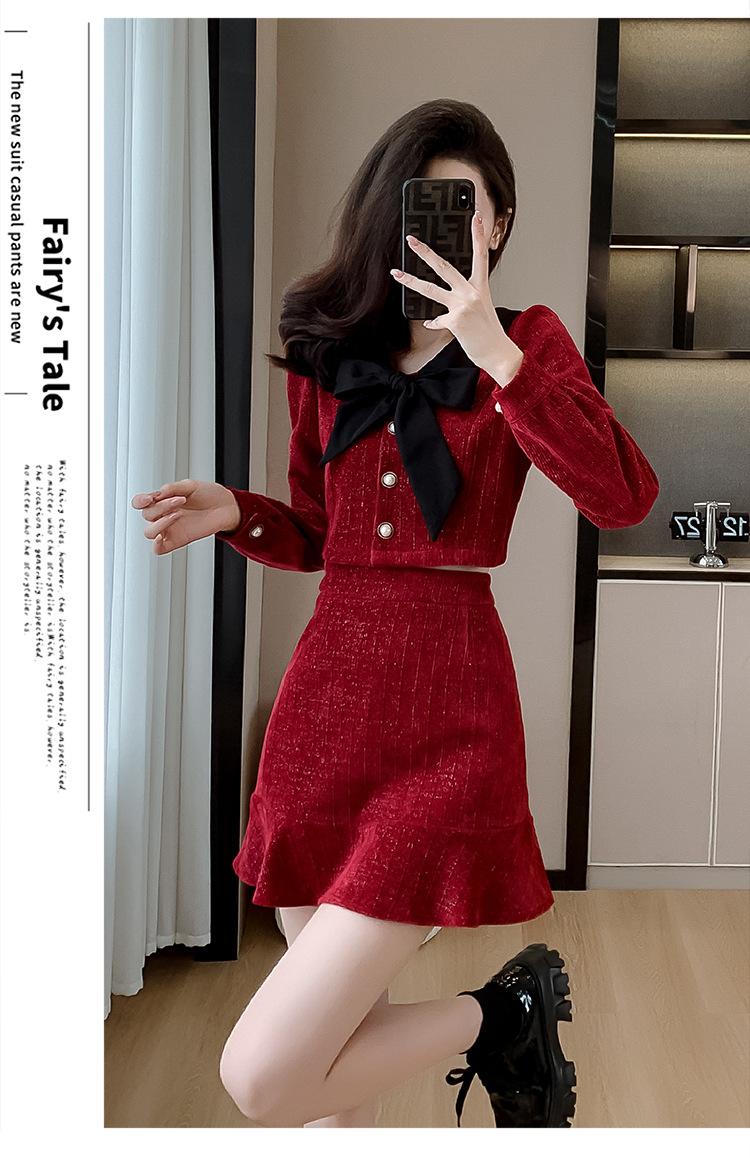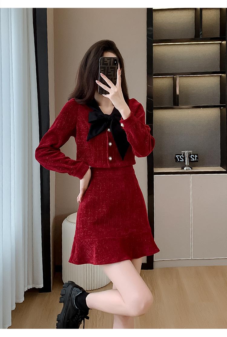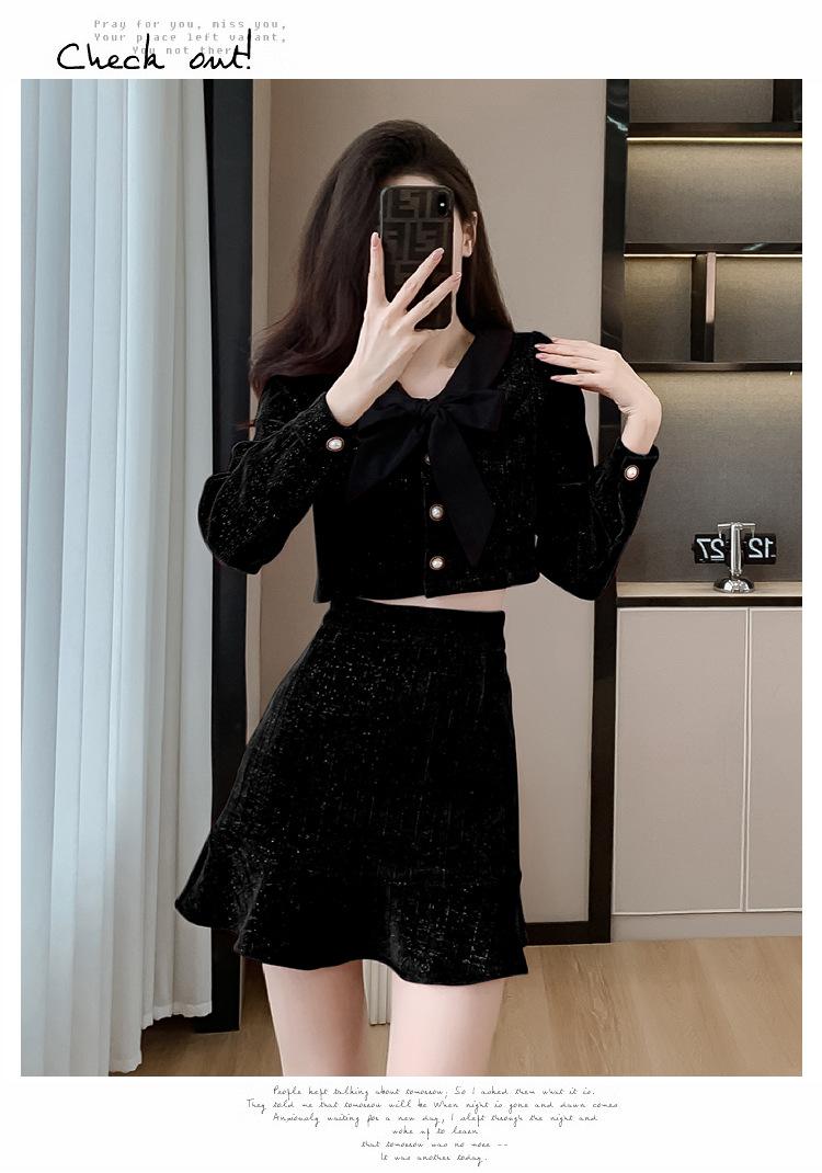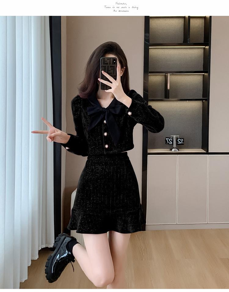 Traje de Moda Estilo Francés 2025 Otoño e Invierno Nuevo Top Elegante Dama de Honor Servicio en Casa Falda Conjunto de Dos Piezas