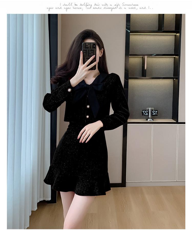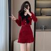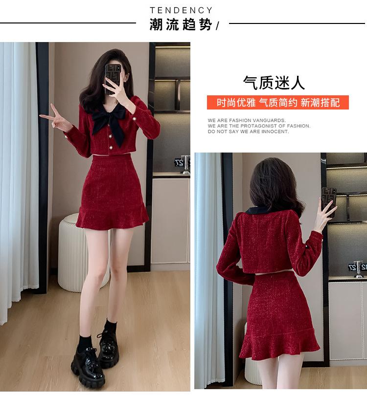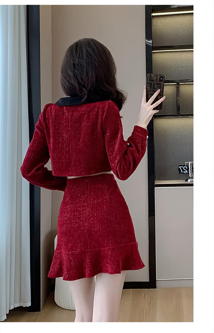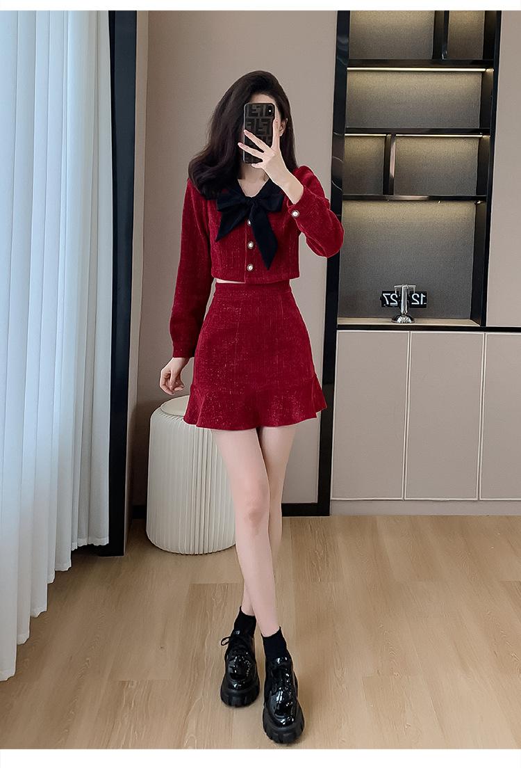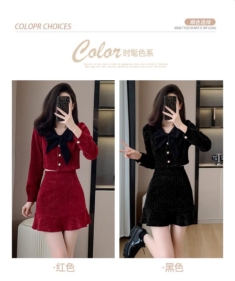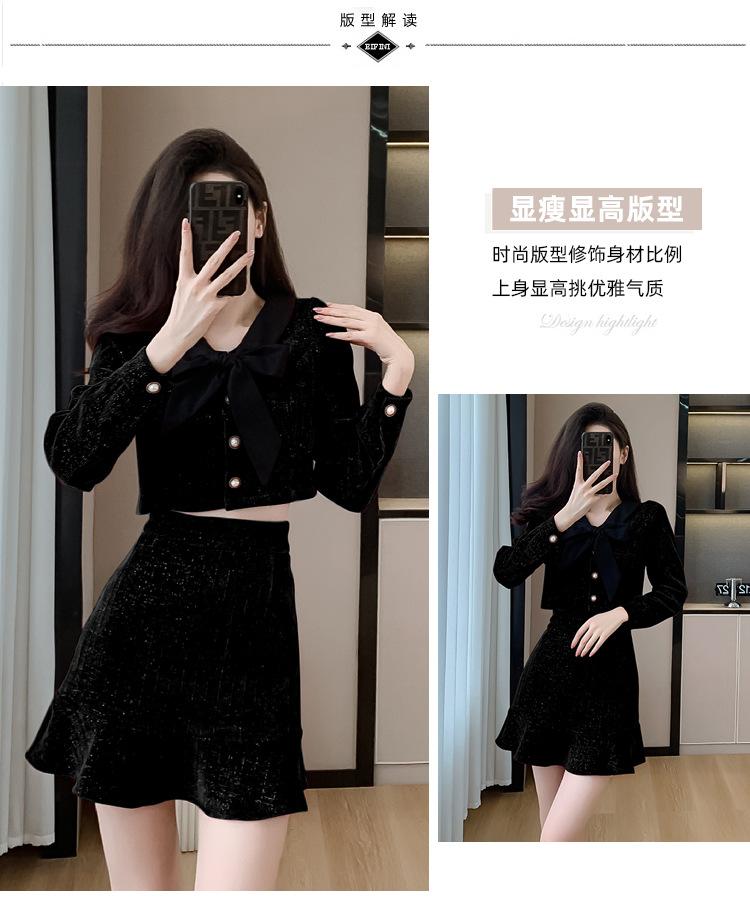 Traje de Moda Estilo Francés 2025 Otoño e Invierno Nuevo Top Elegante Dama de Honor Servicio en Casa Falda Conjunto de Dos Piezas